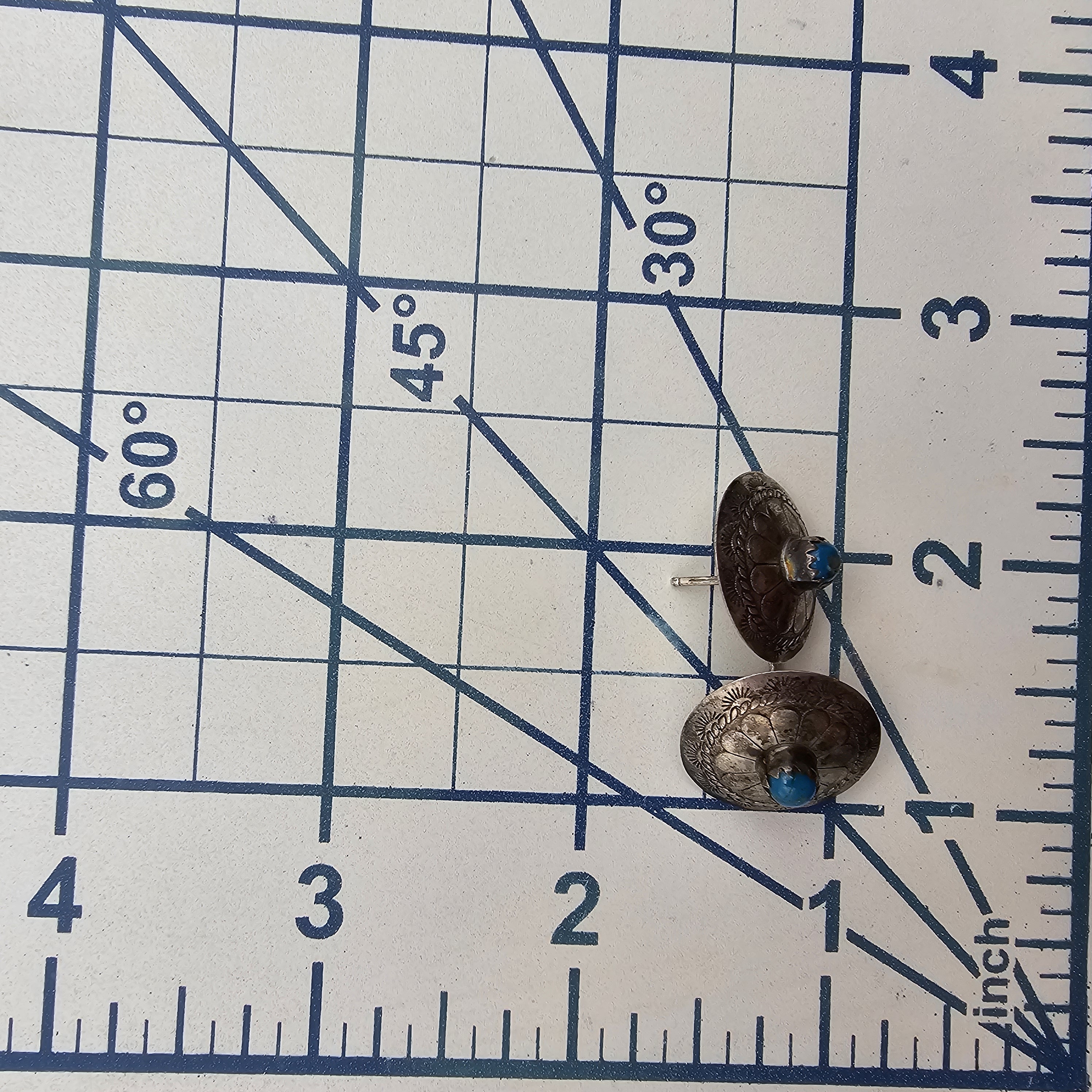 Vintage Navajo Turquoise Sterling Concho Stud Earrings 3g