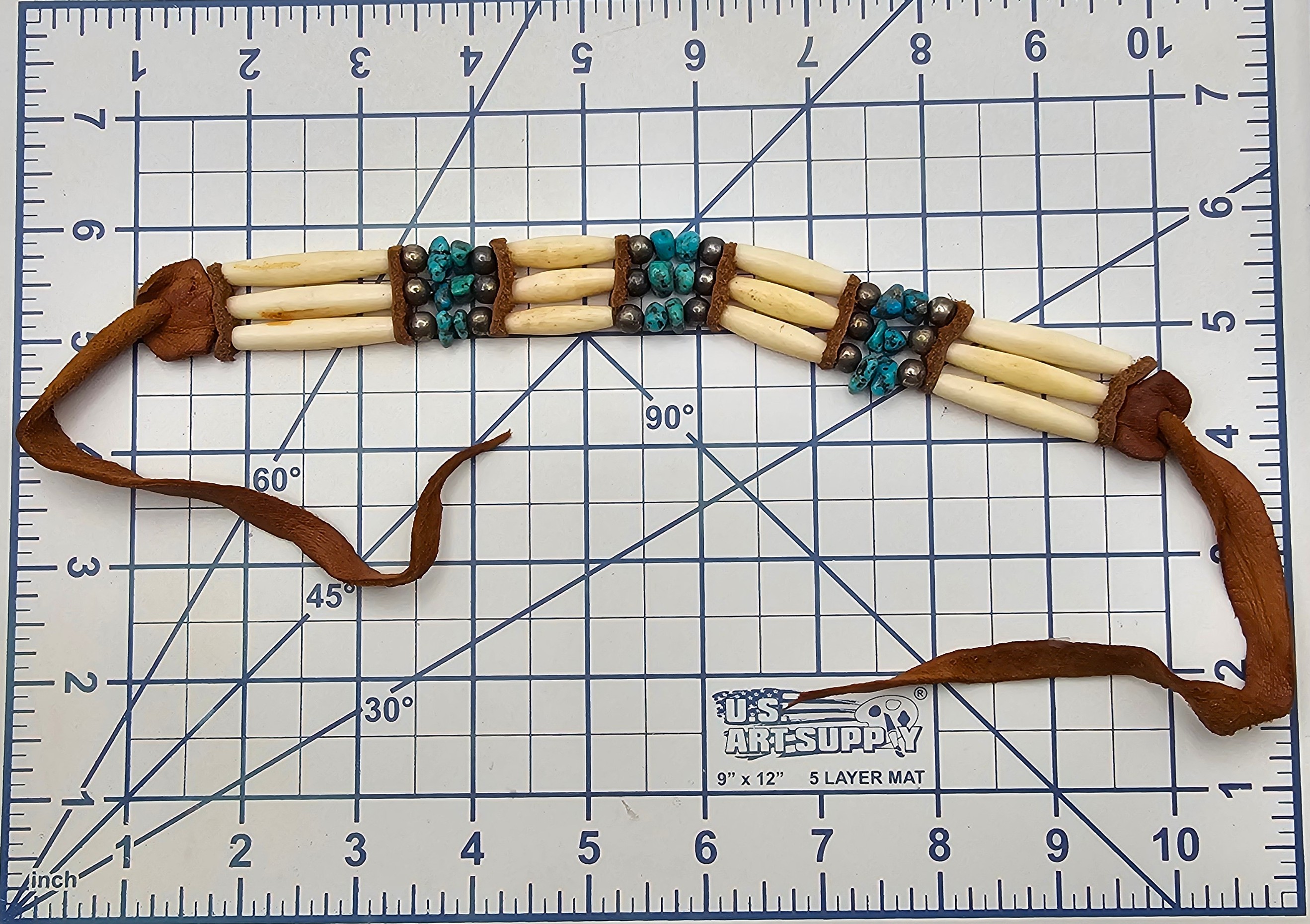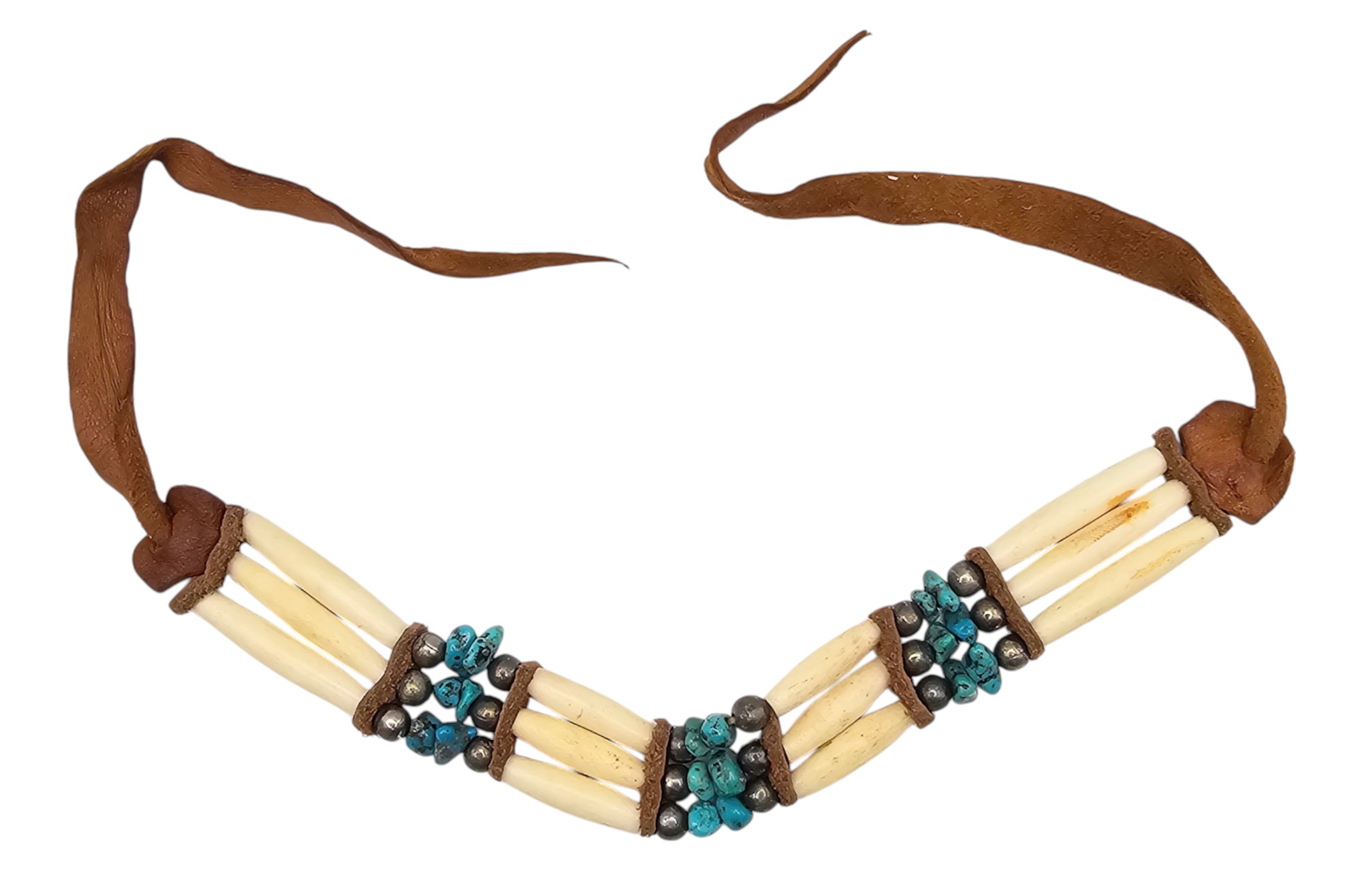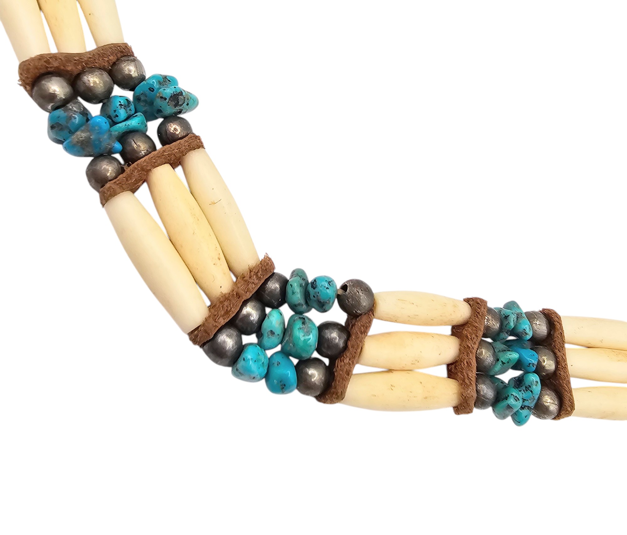Vintage Navajo Bone Turquoise Sterling Leather Choker 39.5g