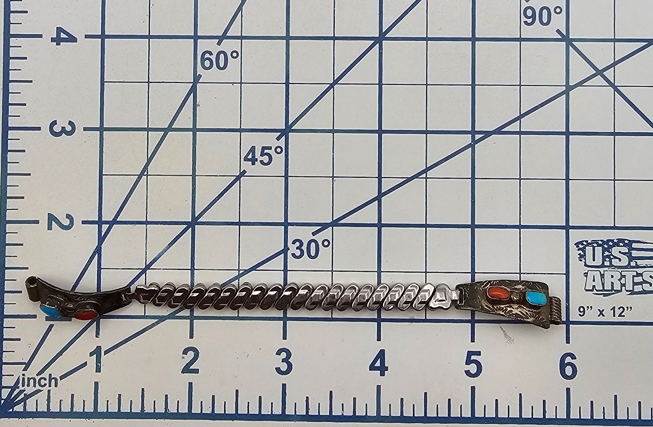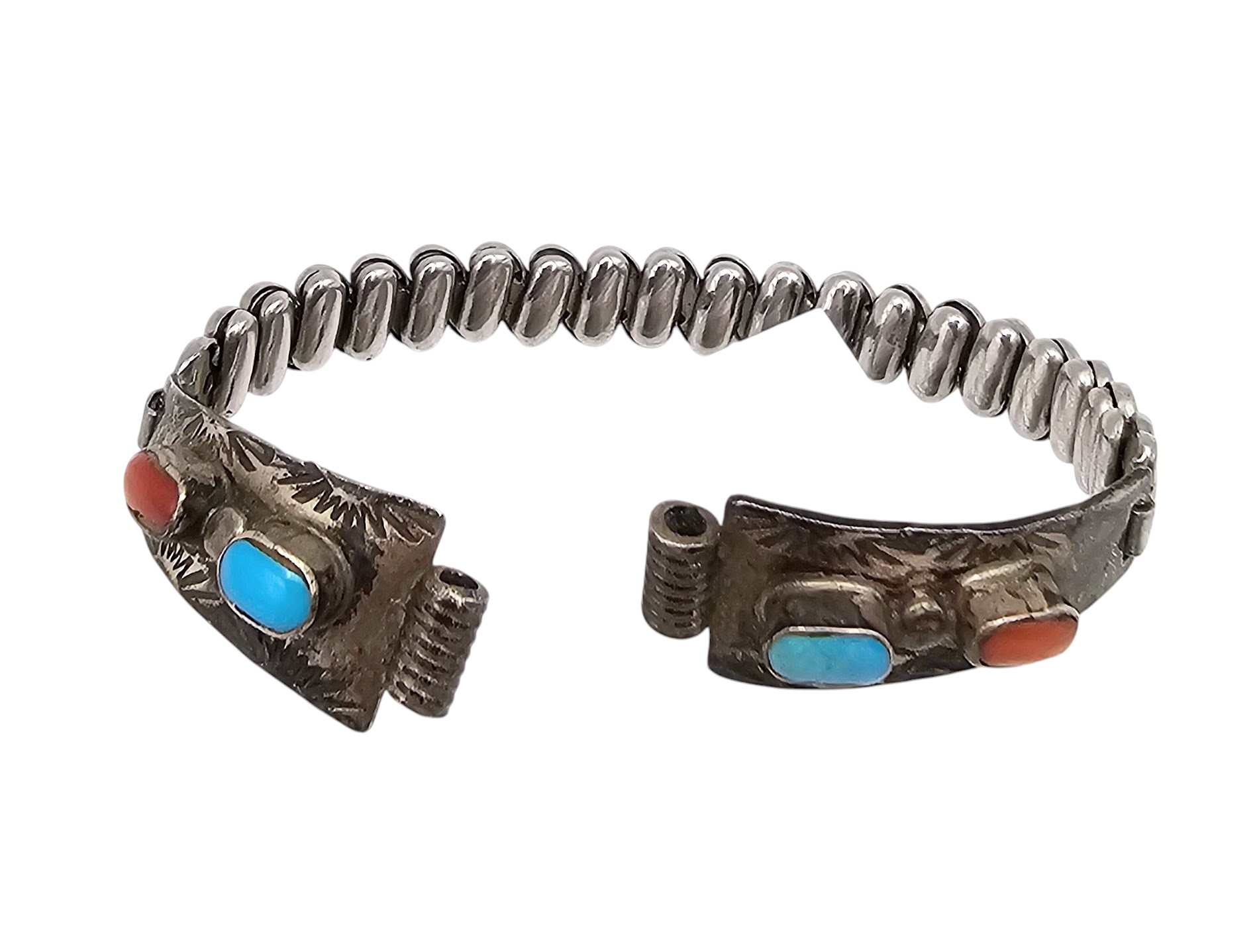 Signed Native American Coral Turquoise Sterling Watch Nibs on Band 11g