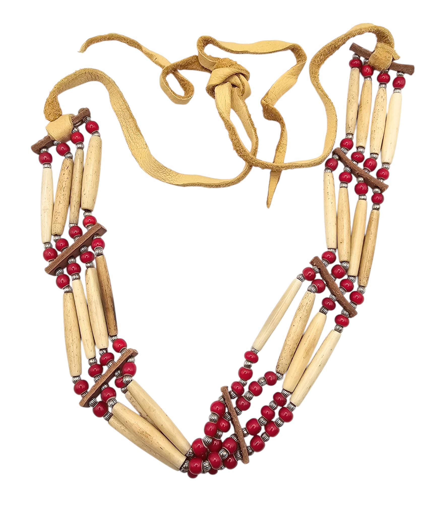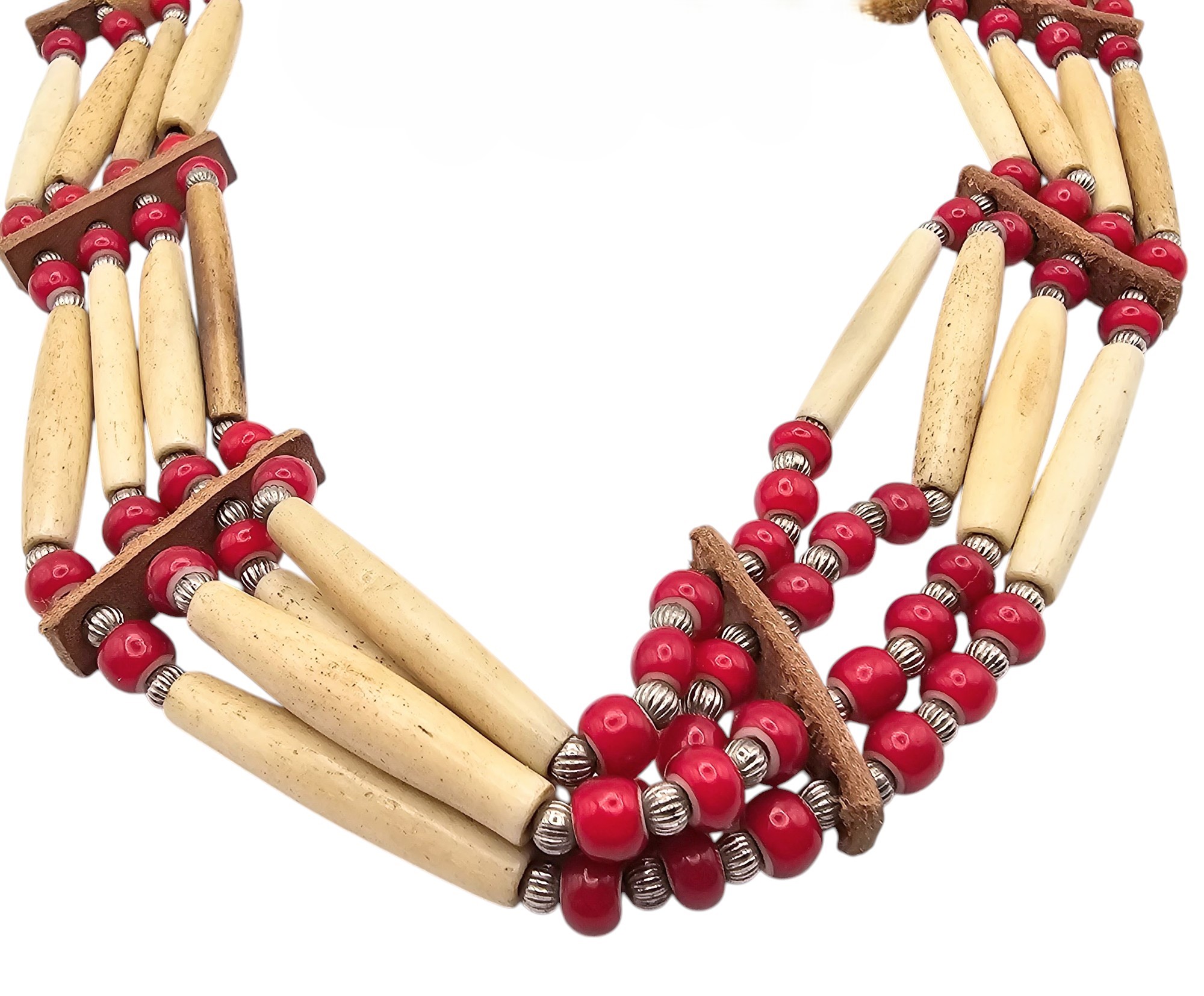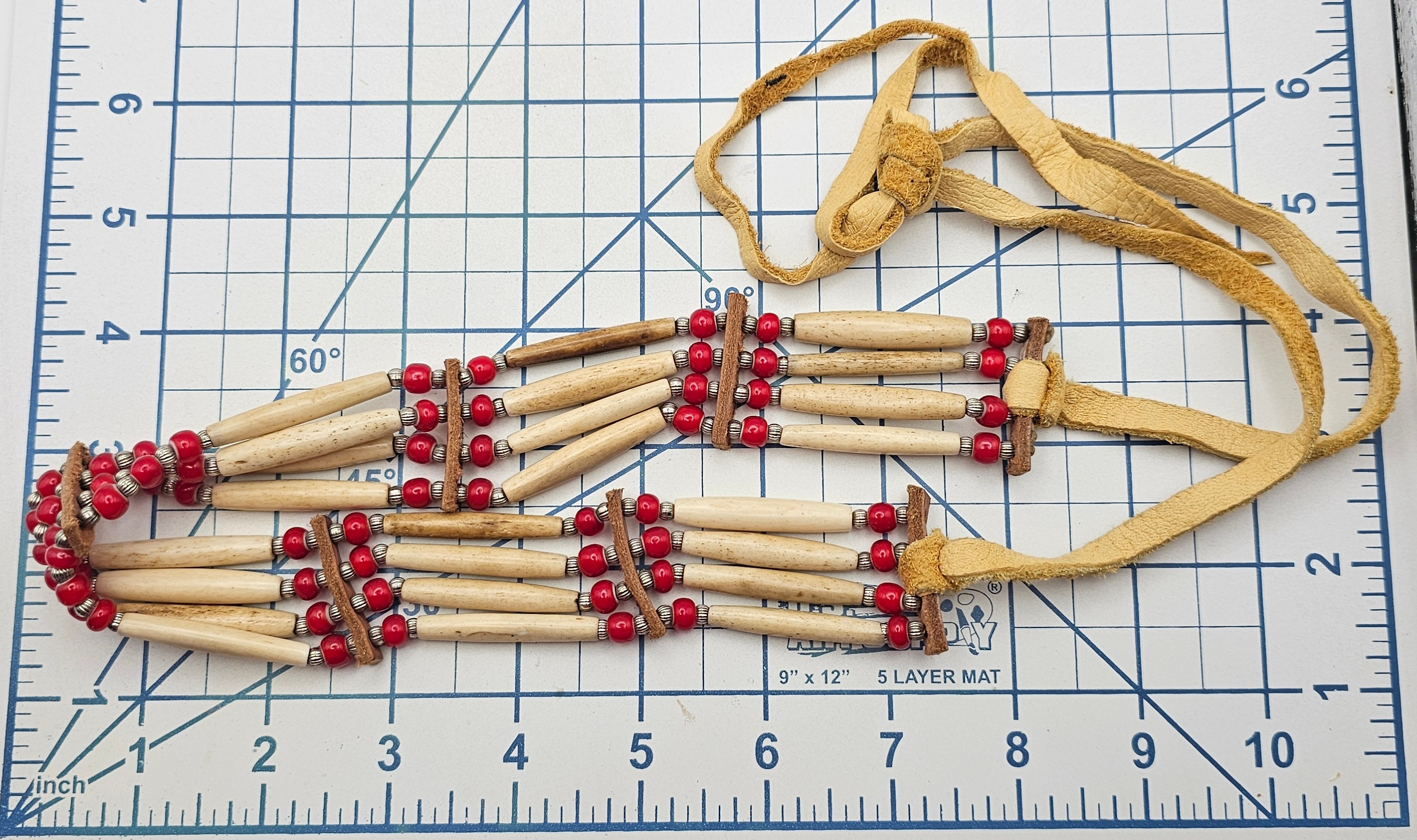 Navajo Bone Red Bead Leather Necklace 80.5g