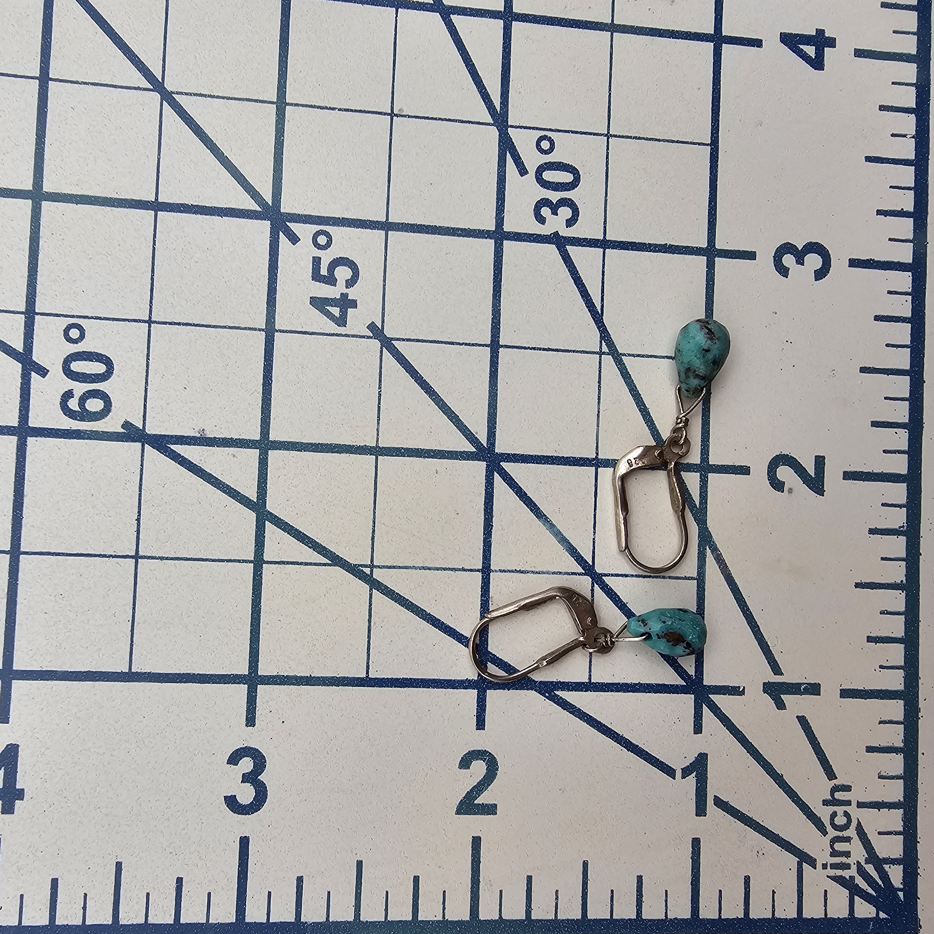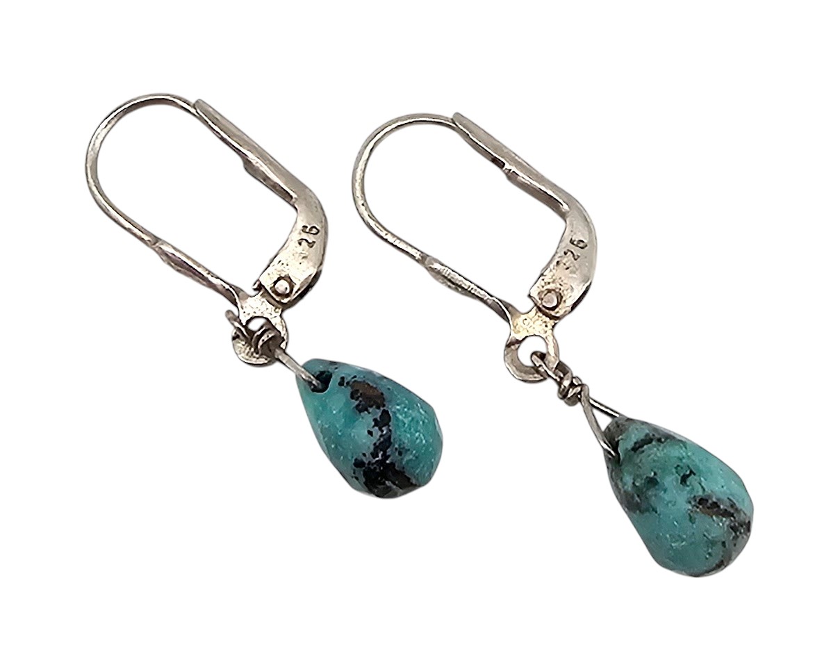 Native American Teardrop Turquoise Sterling Leverback Earrings 2g