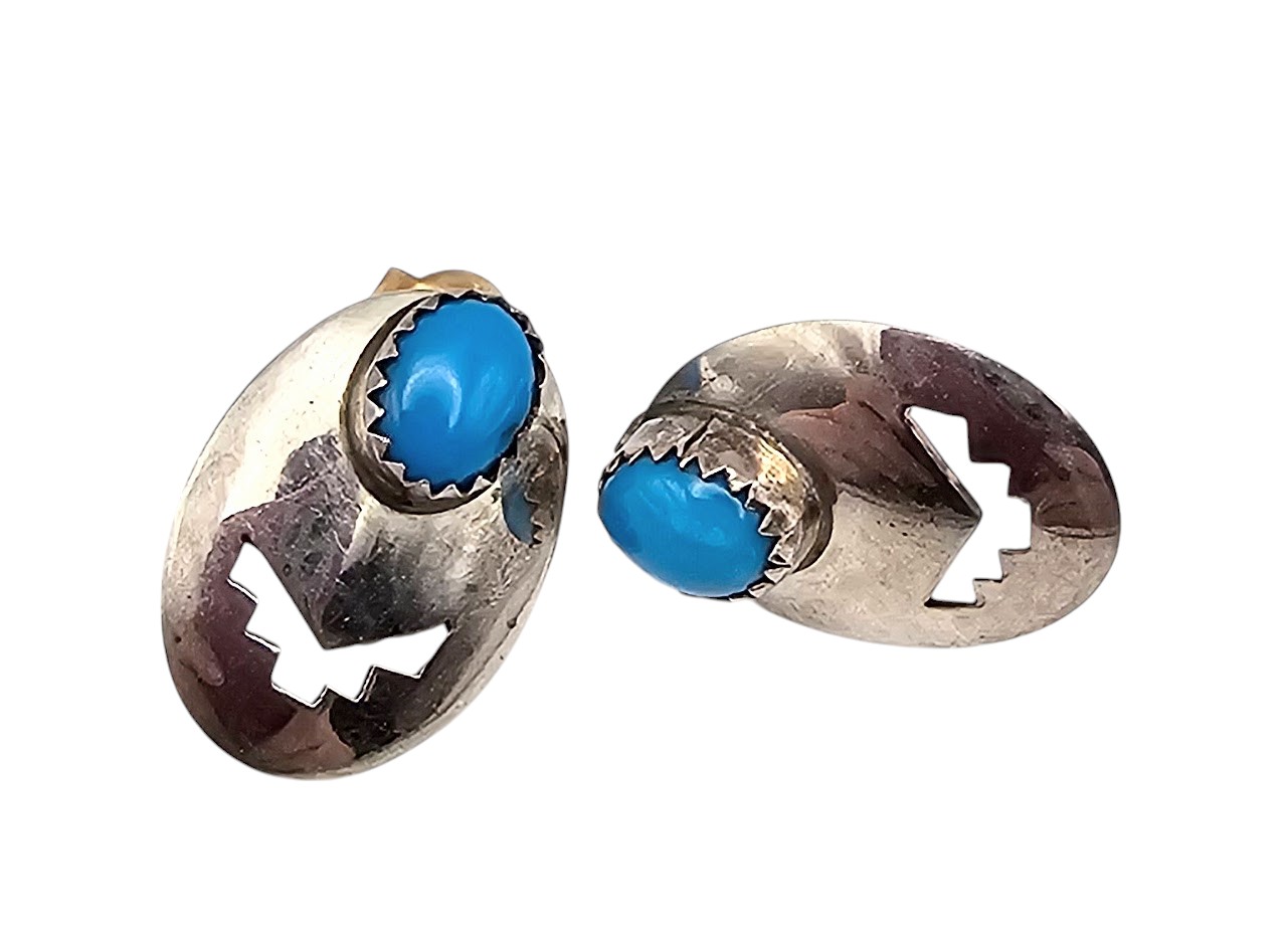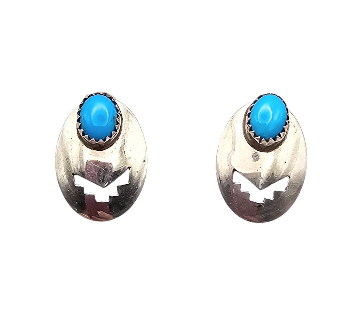 Navajo Turquoise Sterling Stamped Earrings 3g