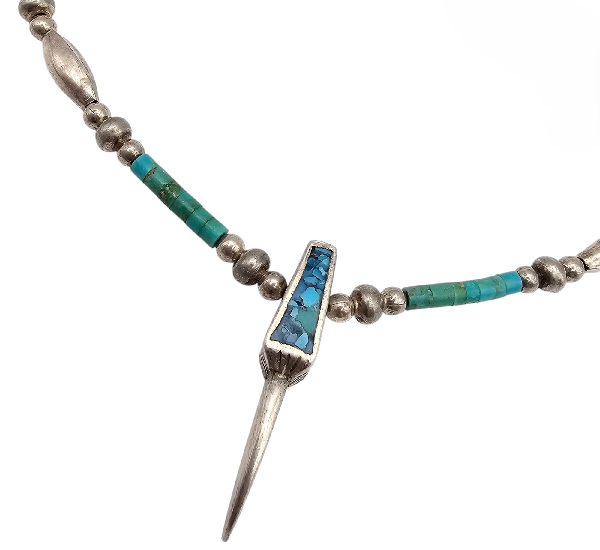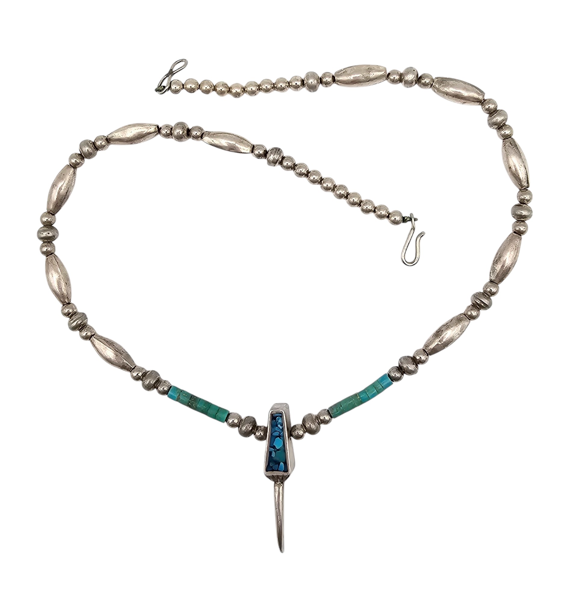 Vintage Navajo Turquoise Sterling Claw Inlay Necklace 16.5g