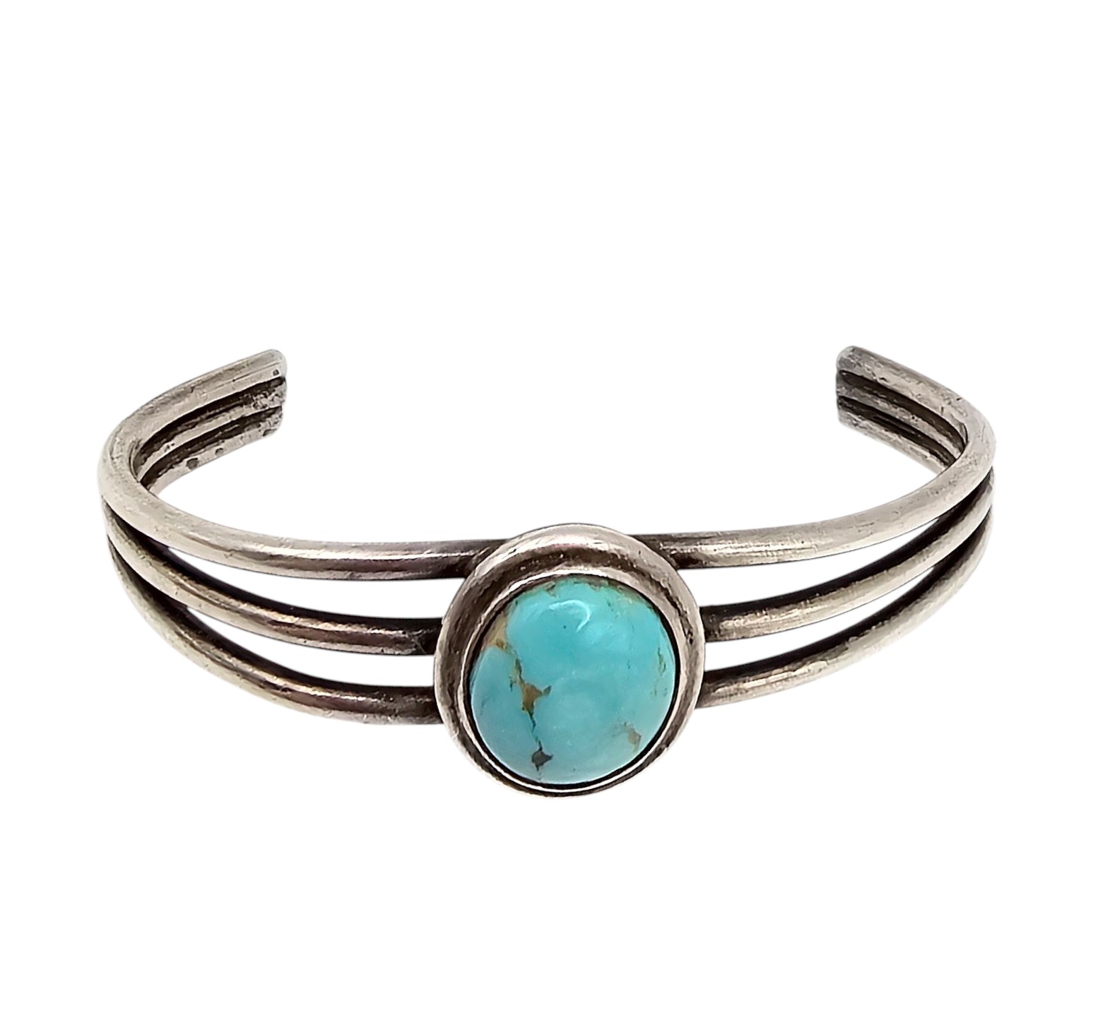 Southwestern Turquoise Sterling Silver Open Band Cuff Bracelet 13.8 G