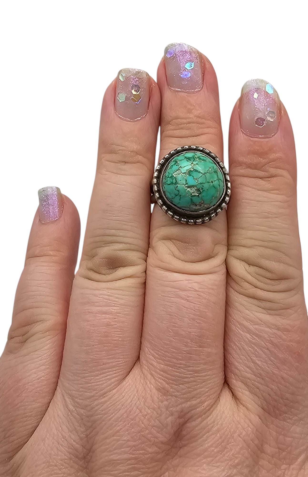 Vintage Native Turquoise Sterling Silver Ring Size 6.5 7.9 G