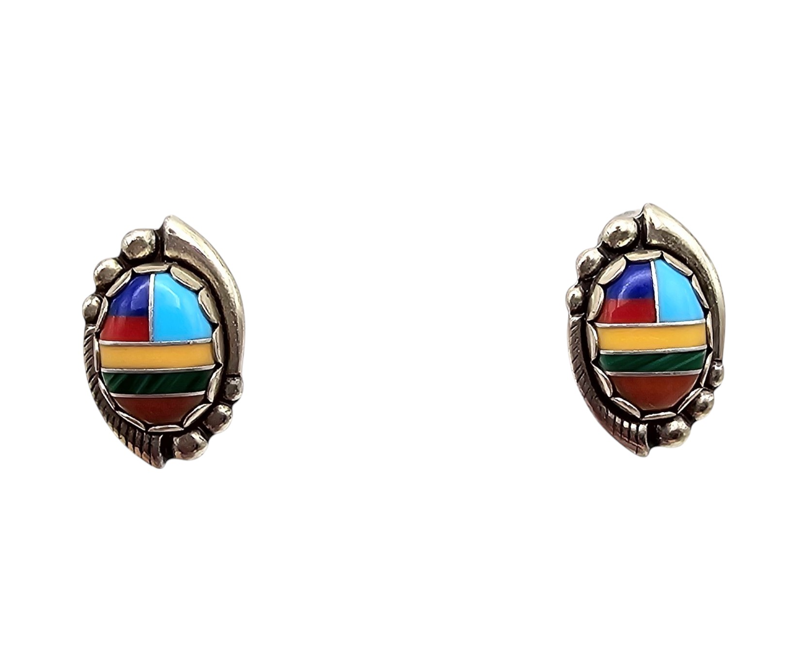 Wheeler Manufacturing Co Malachite Turquoise Coral Lapis Sterling Silver Inlay Earrings 2.7 G