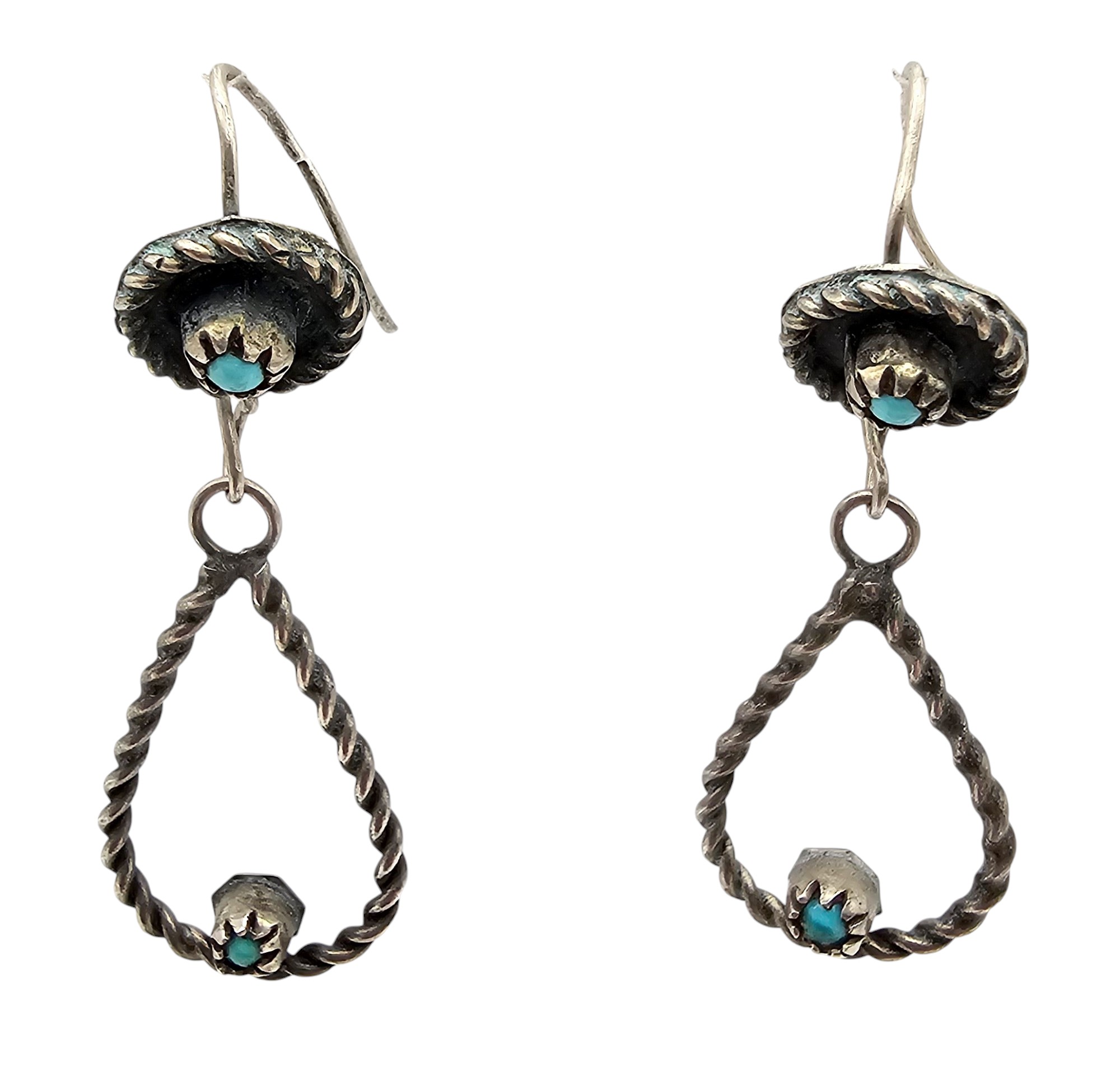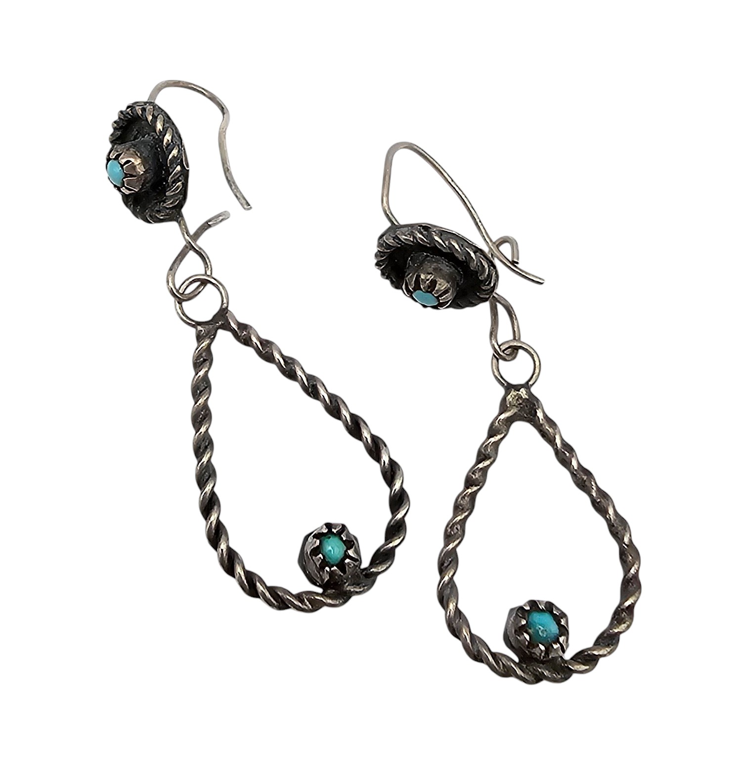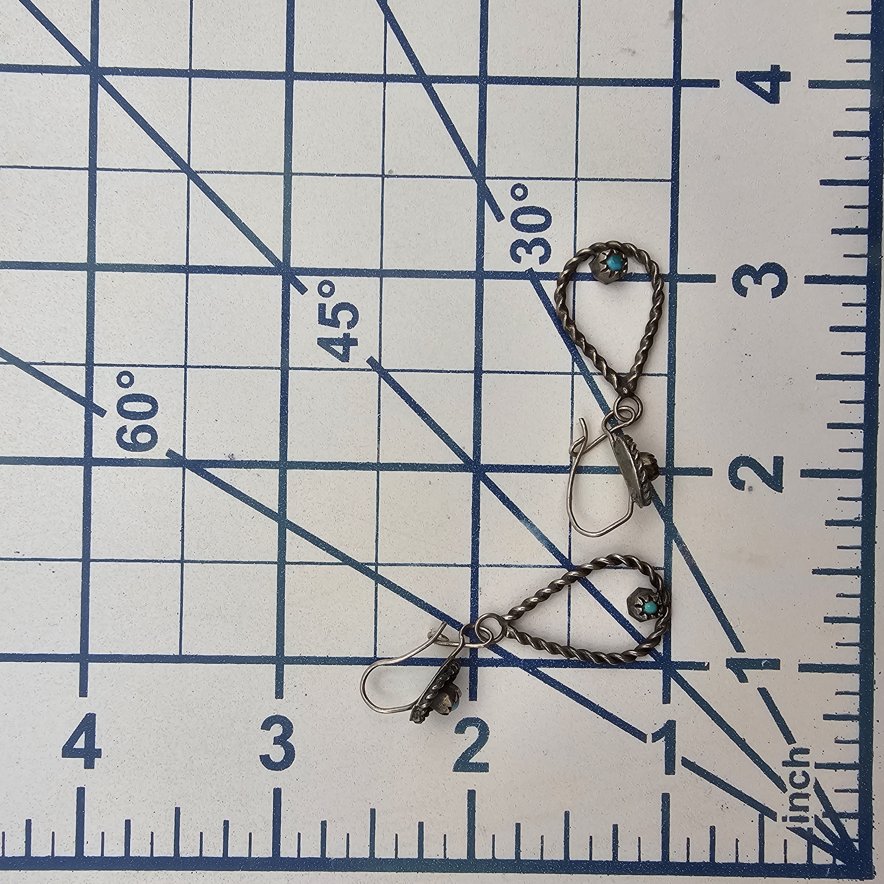Southwestern Turquoise Sterling Silver Drop Dangle Earrings 3.3 G