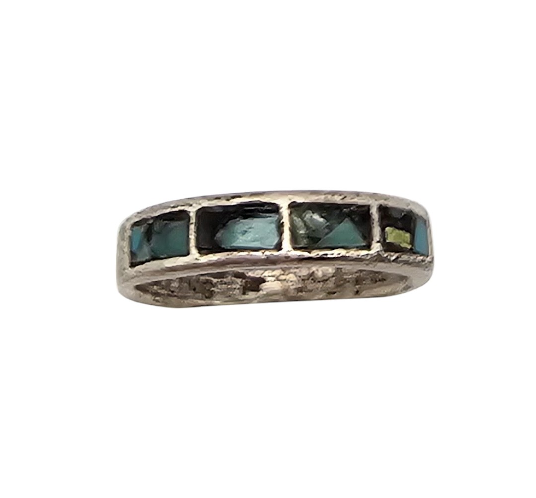 Southwestern Crushed Turquoise Sterling Silver Ring Size 6.5 3.2 G as is