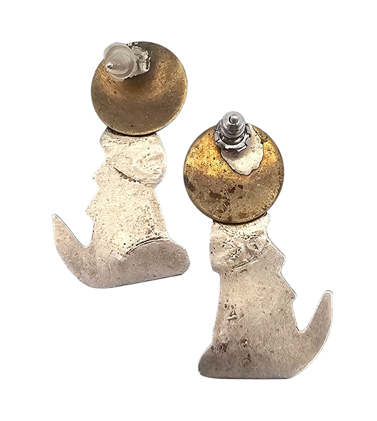 Southwestern Sterling Silver Copper Coyote Howling at the Moon Earrings
