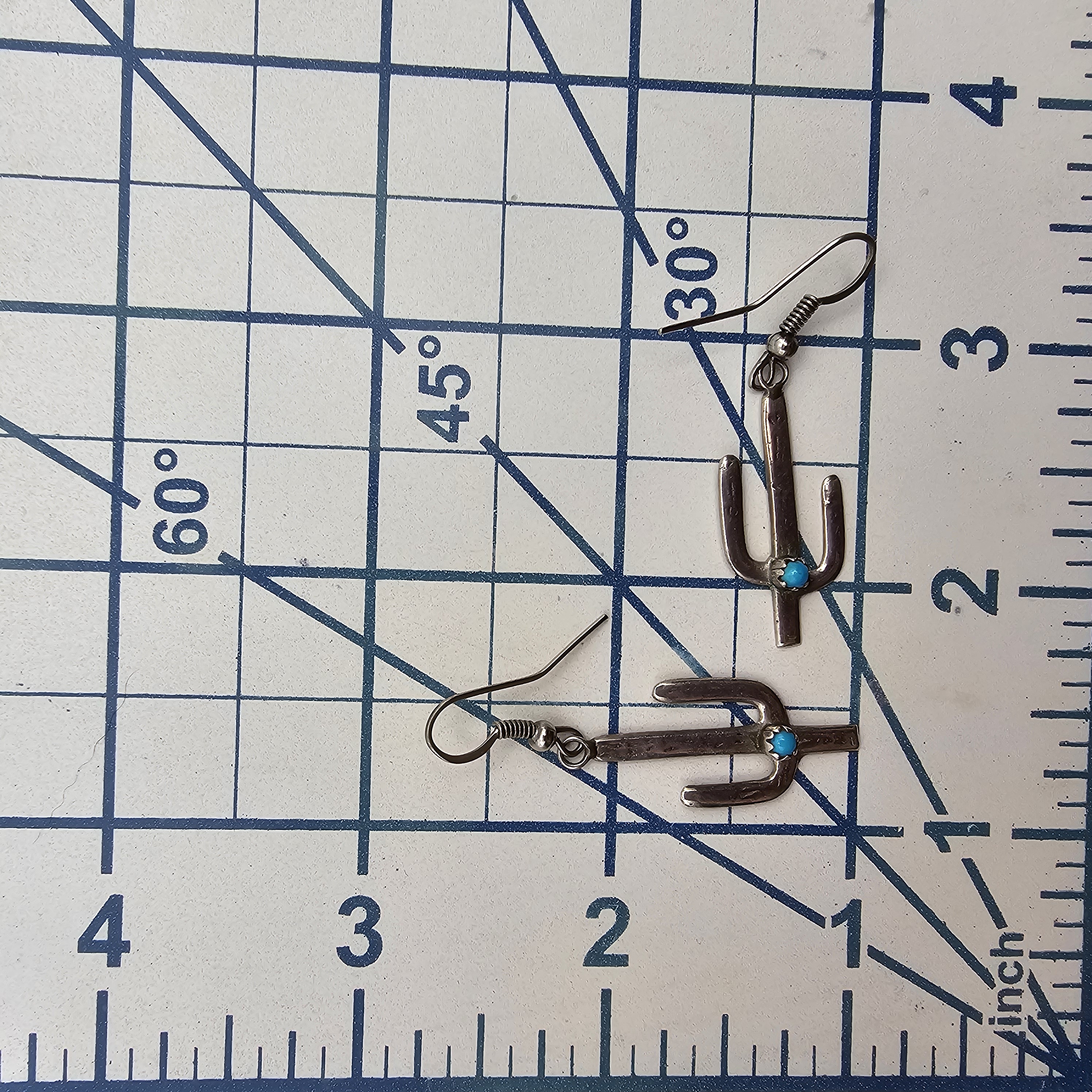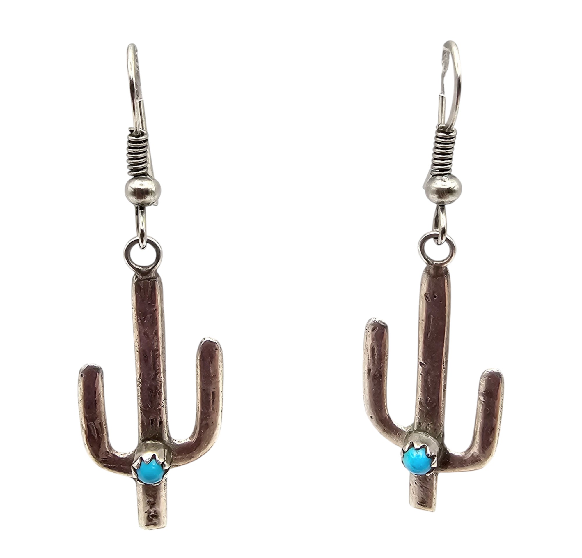 Southwestern Turquoise Sterling Silver Snake Eye Cactus Drop Dangle Earrings 2.6 G