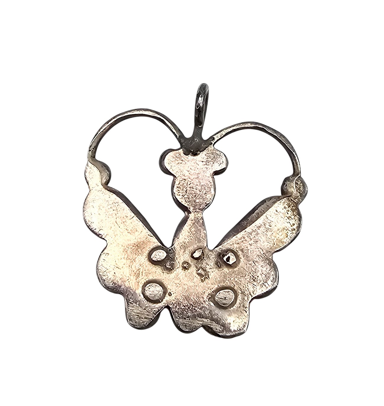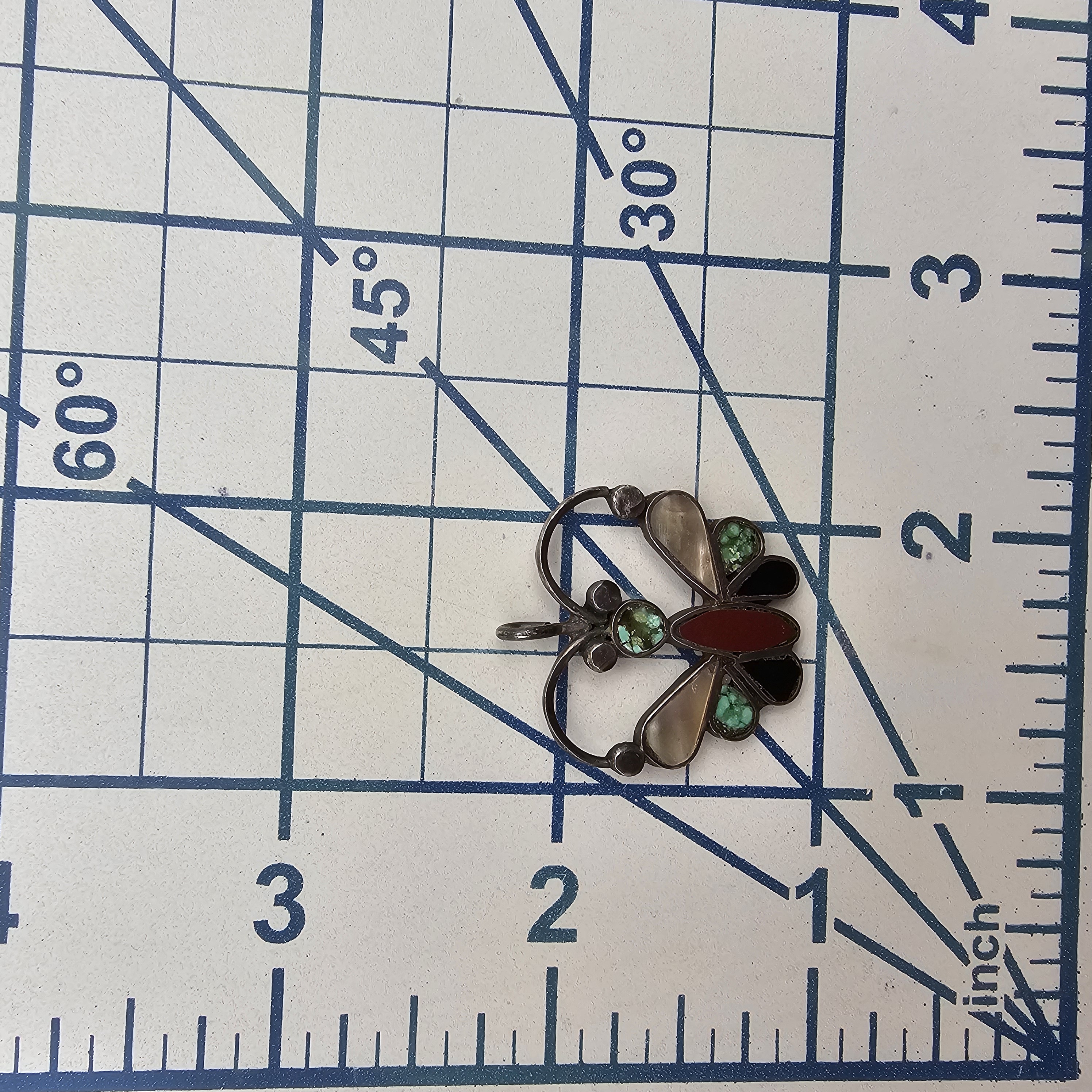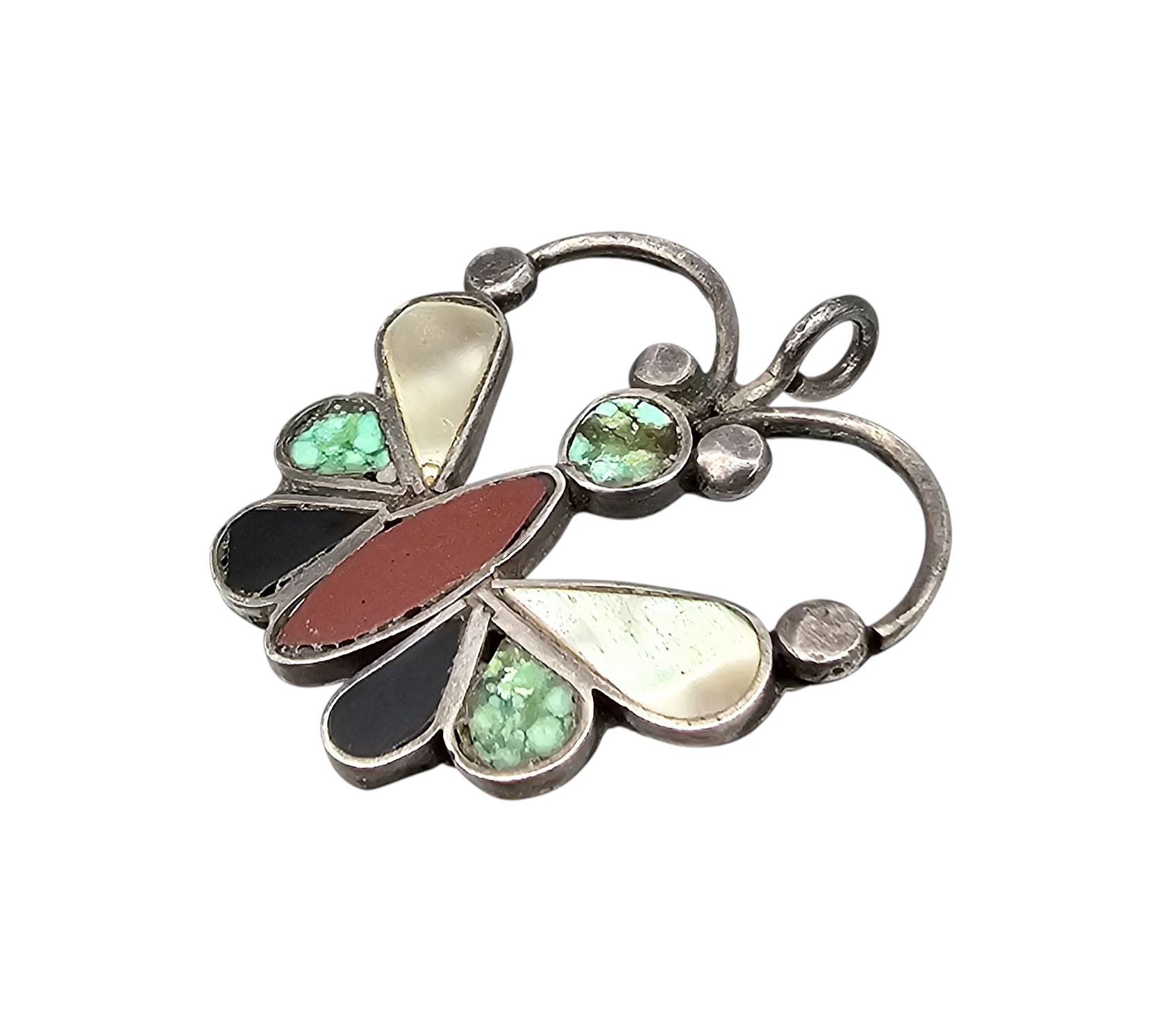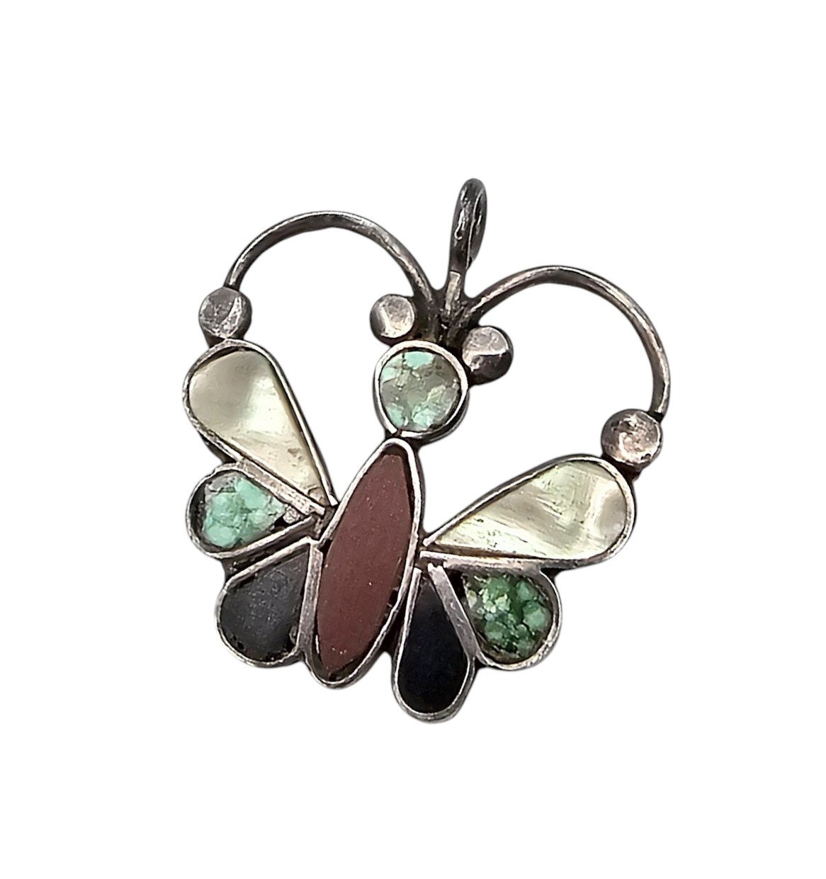 Vintage Southwestern Coral Turquoise Mother Of Pearl Sterling Silver Butterfly Pendant