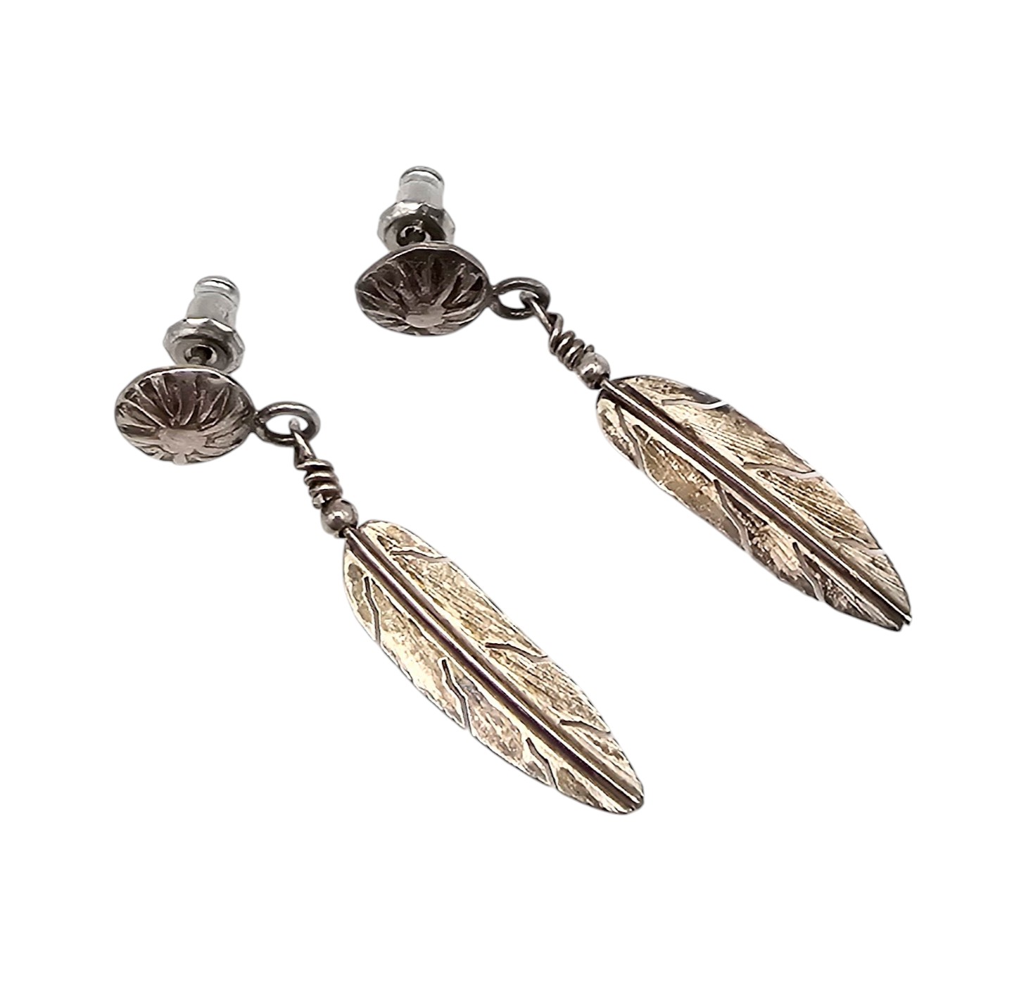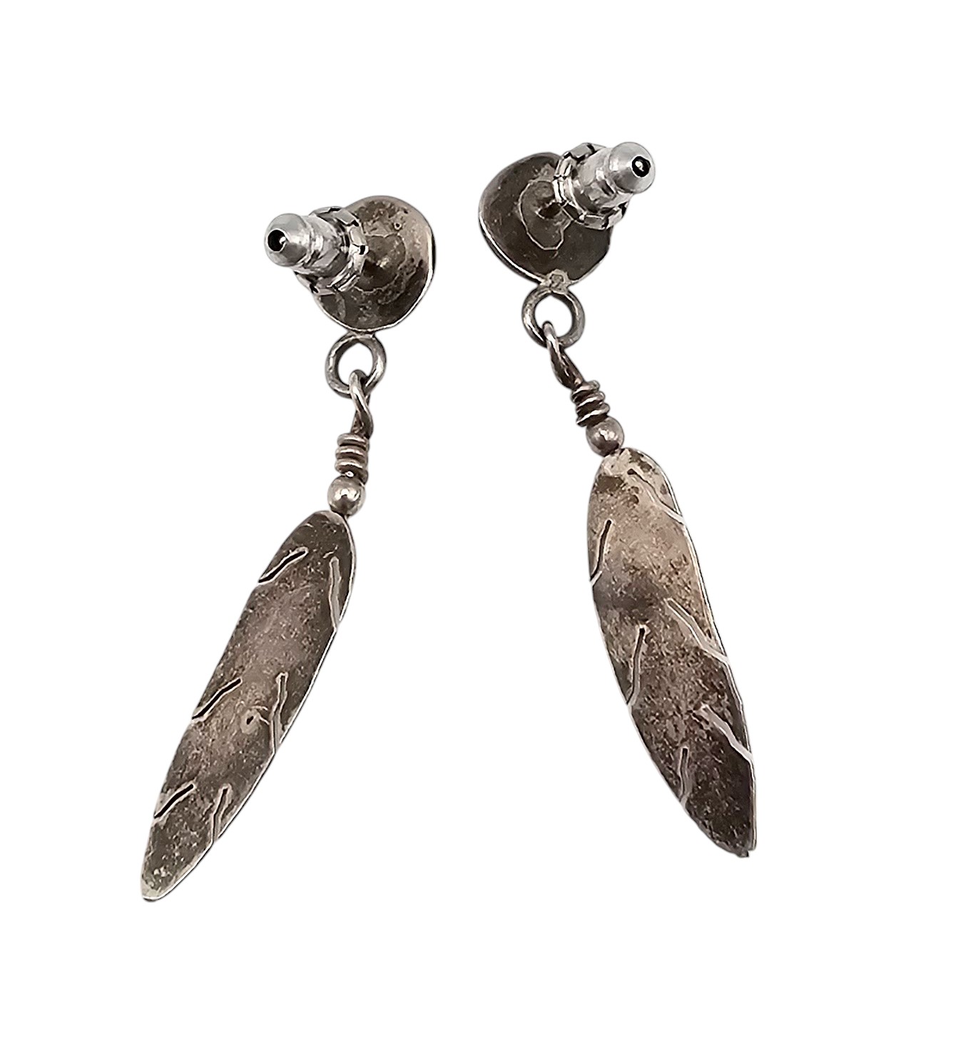 Southwestern Sterling Silver Feather Drop Dangle Earrings 1.9 G
