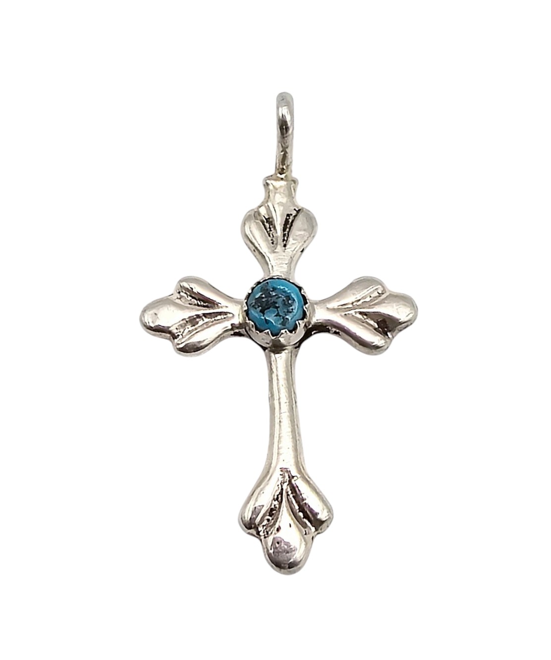 Signed IN Native Turquoise Sterling Silver Cross Pendant 2.1 G
