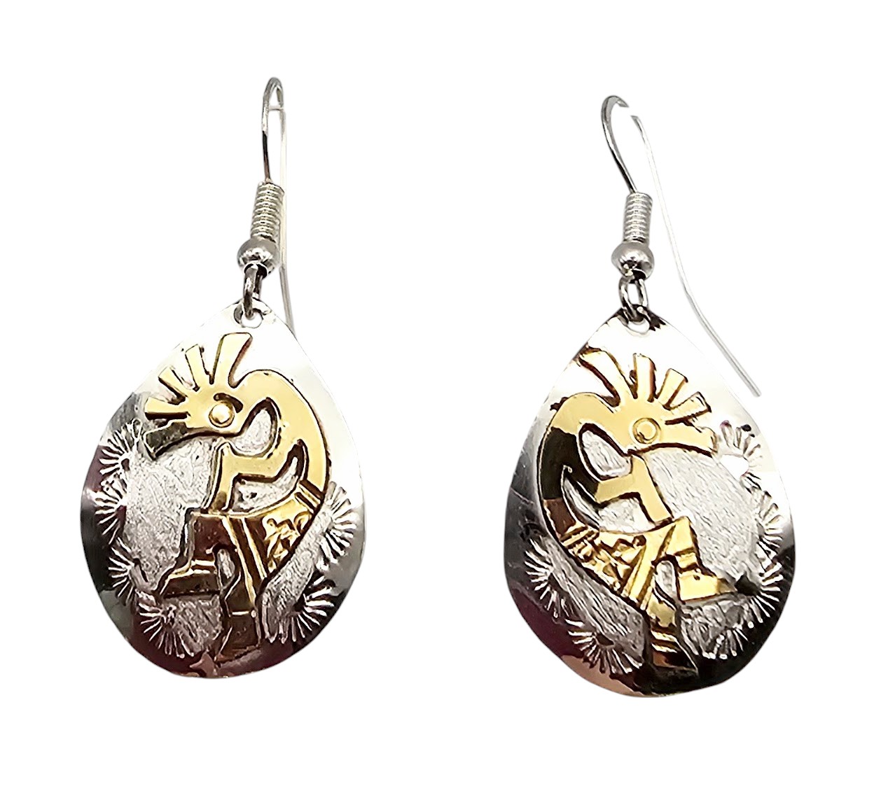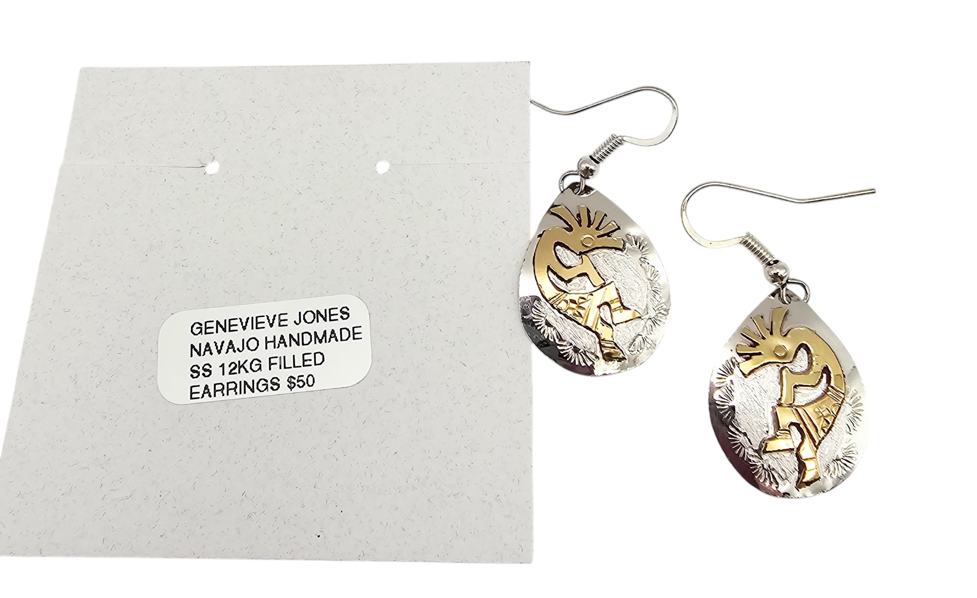 Genevieve Jones 12K Gold Filled Sterling Silver Kokopelli Dancer Drop Dangle Earrings 2.8 G New With Tags