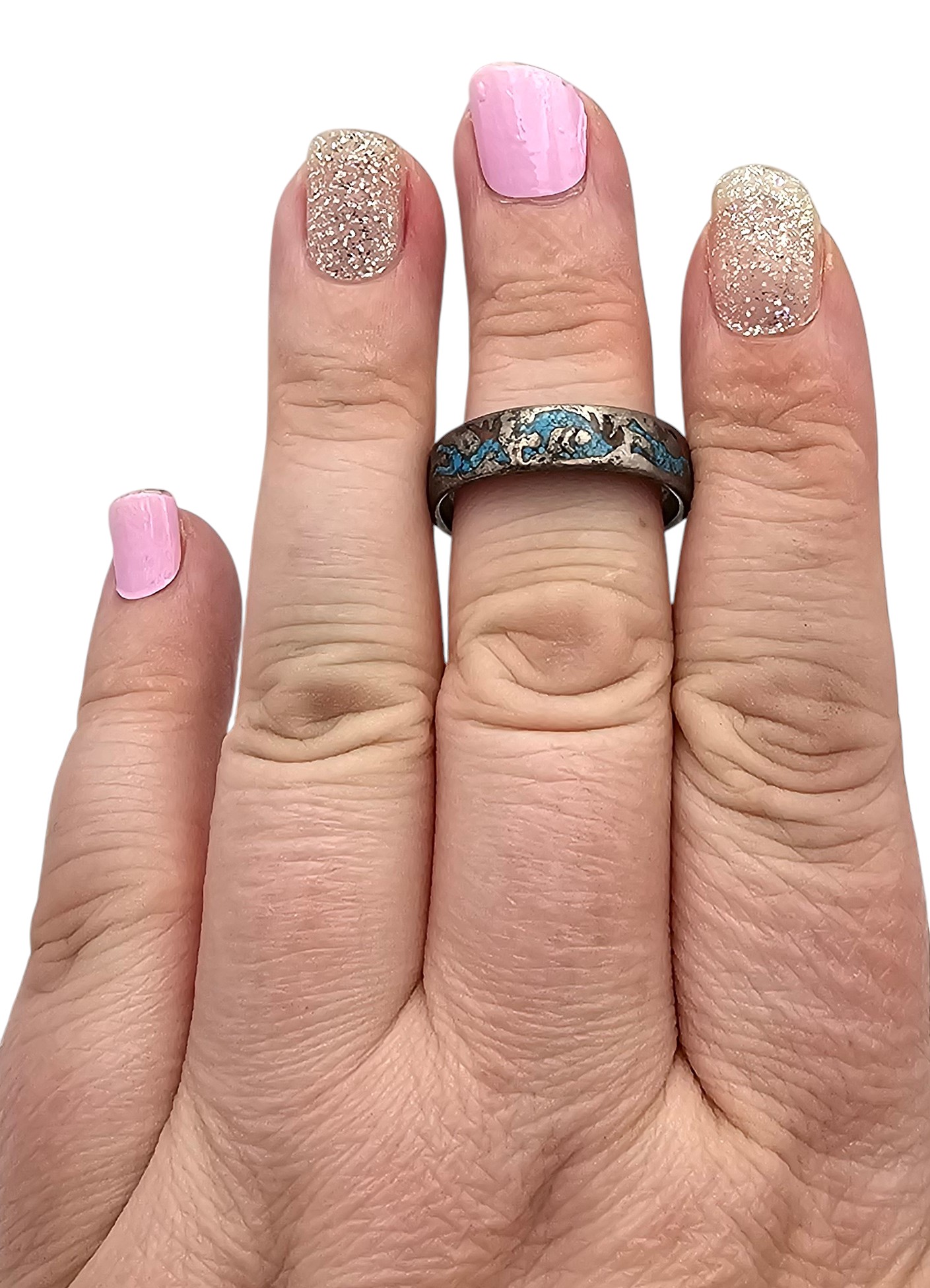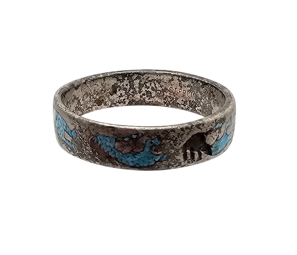 Vintage Crushed Turquoise Coral Sterling Silver Ring Size 10.5 4.2 G as is some stones missing