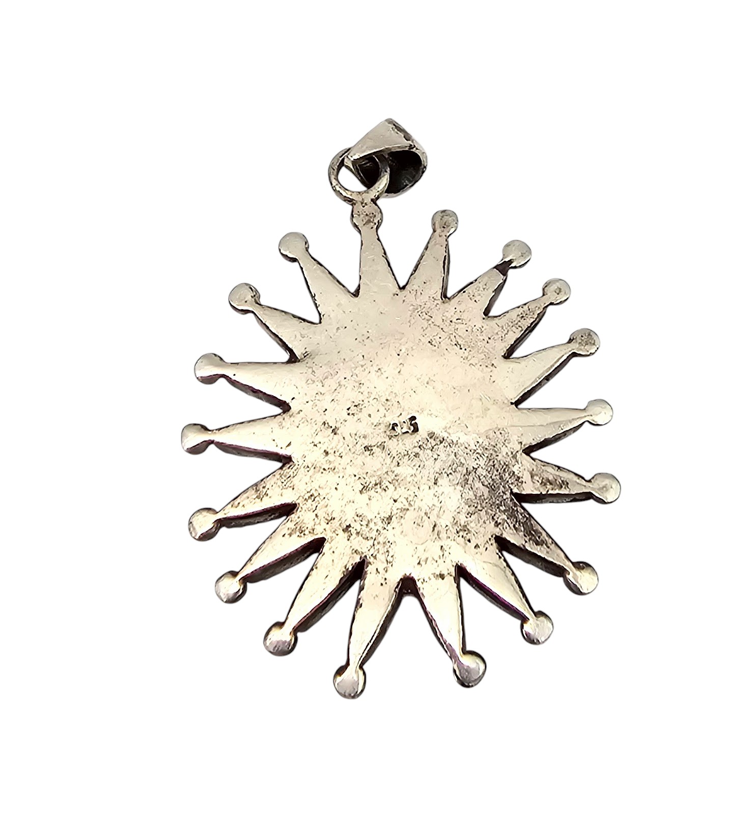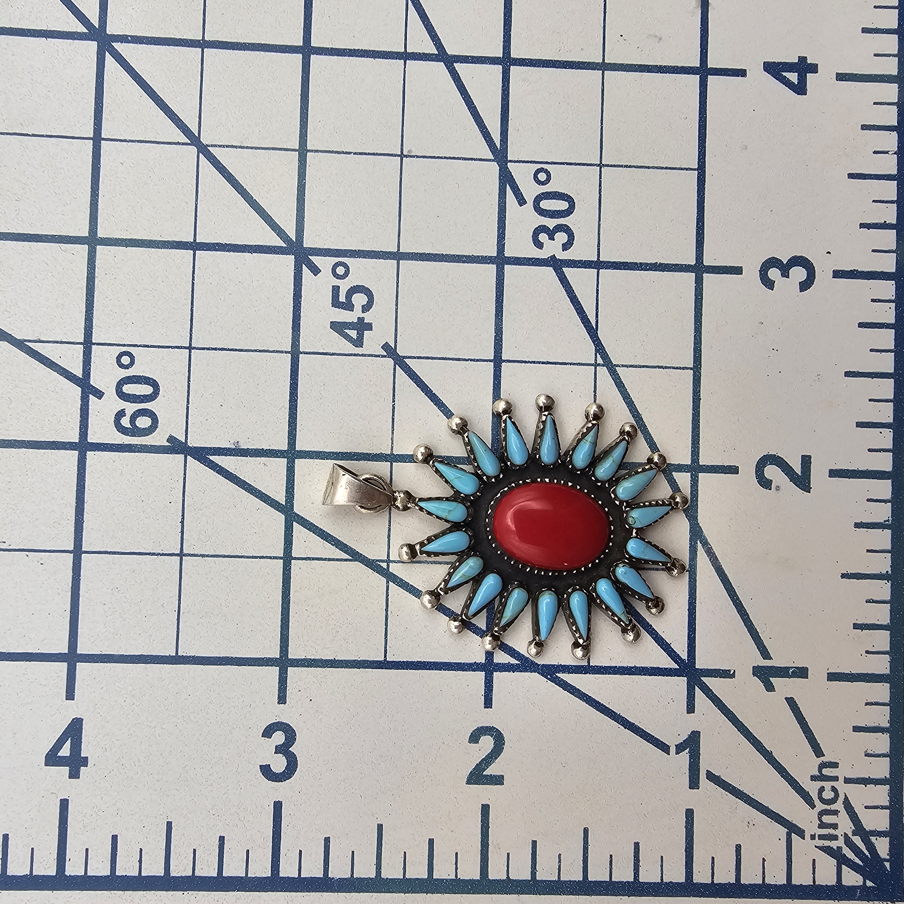 Southwestern Turquoise Coral Sterling Silver Sun or Flower Pendant 11.1 G