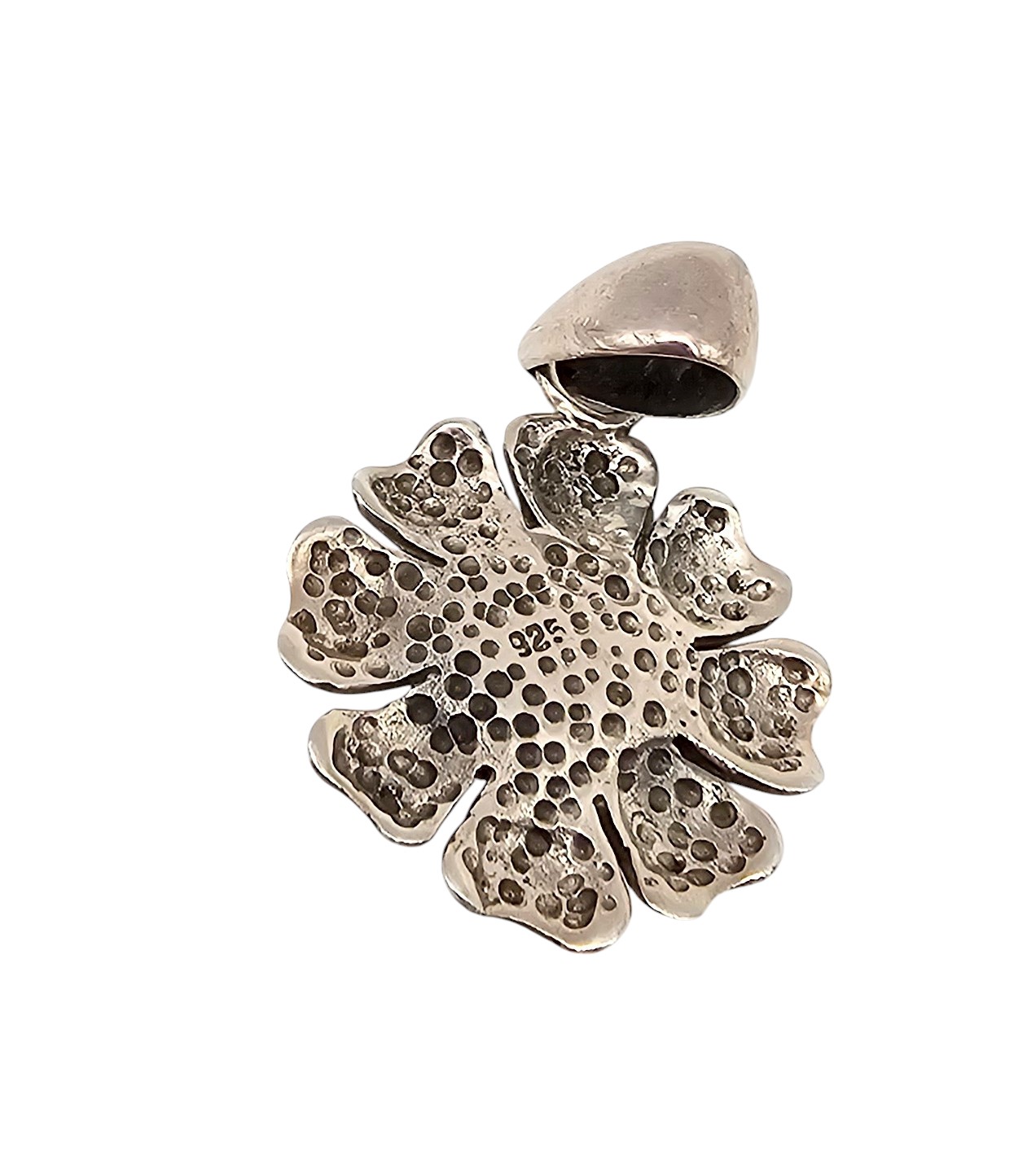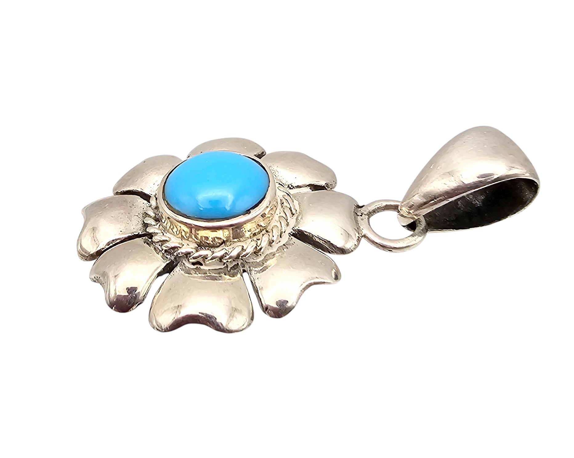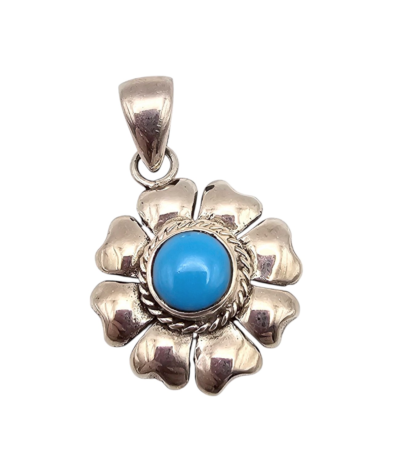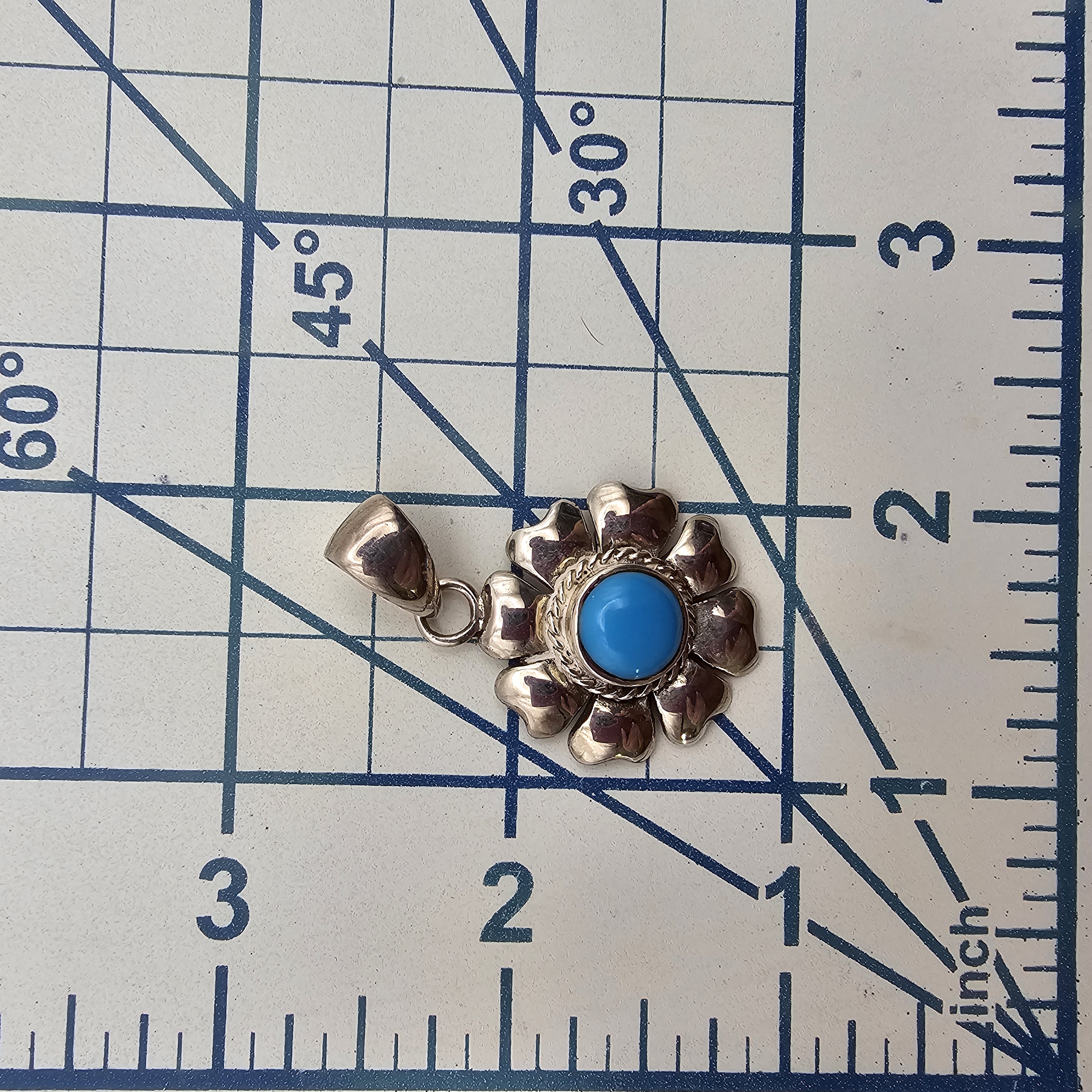 Southwestern Turquoise Sterling Silver Flower Pendant 7.5 G