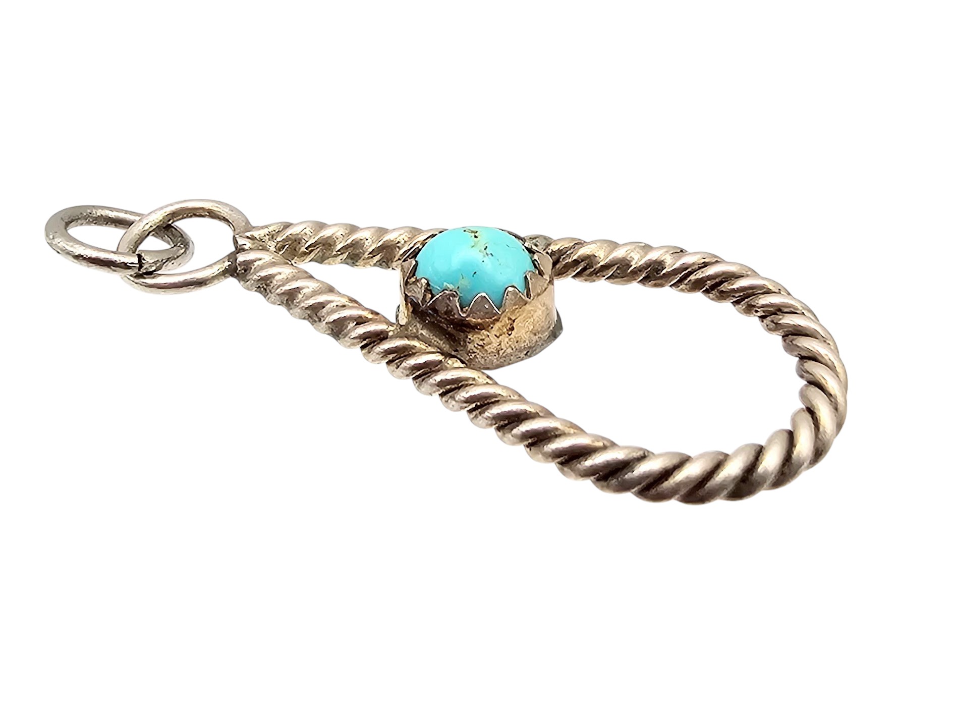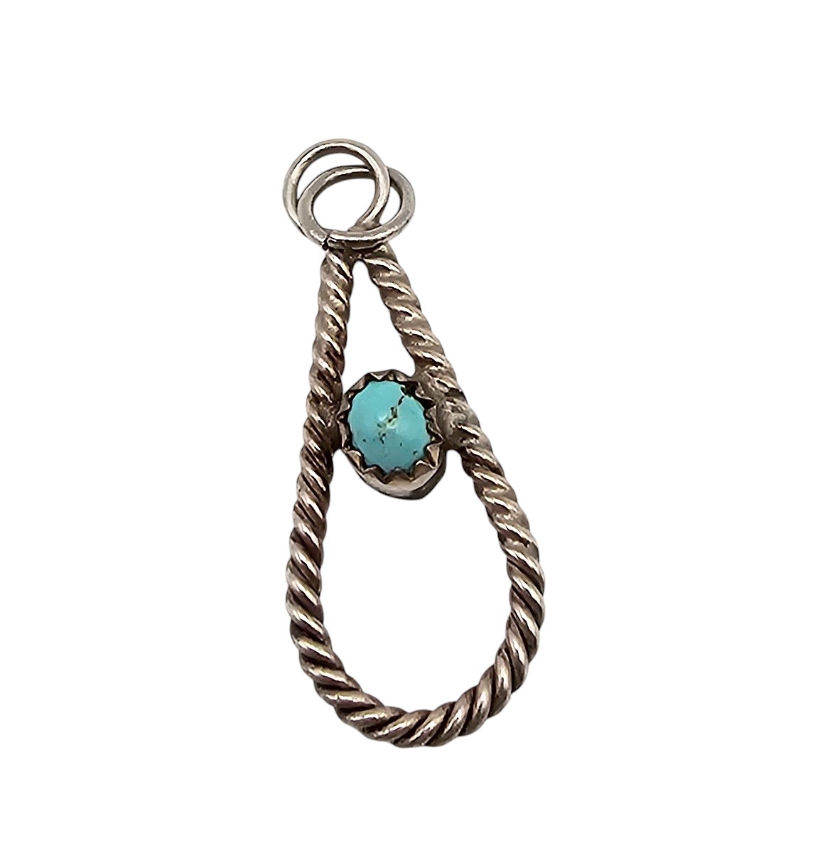 Vintage Southwestern Turquoise Sterling Silver Pendant 1.6 G
