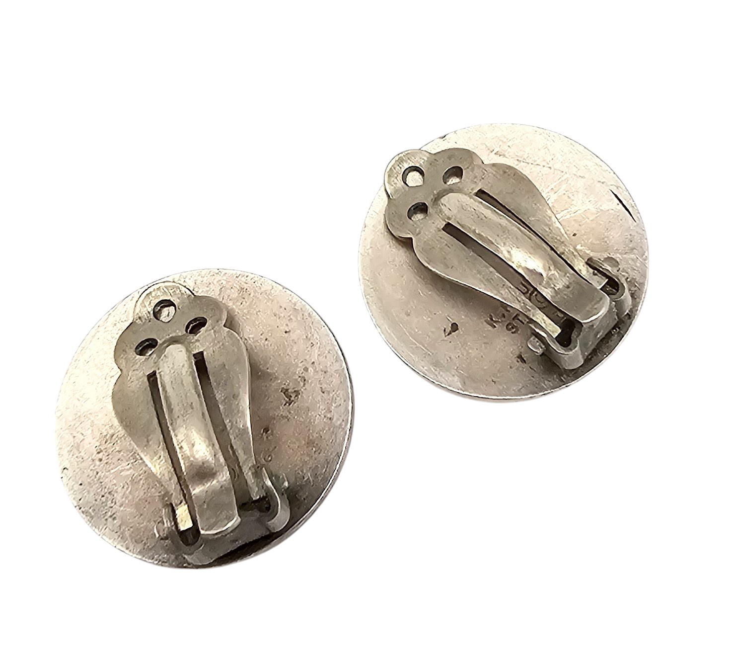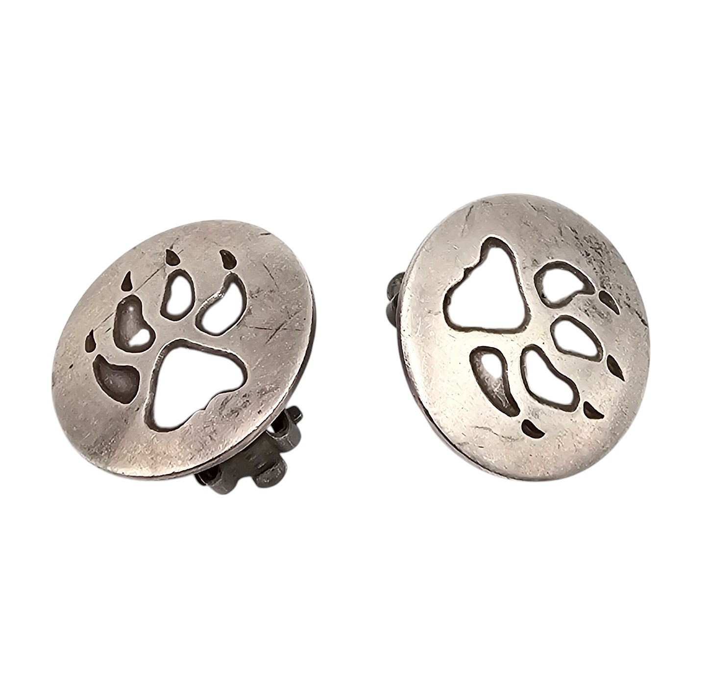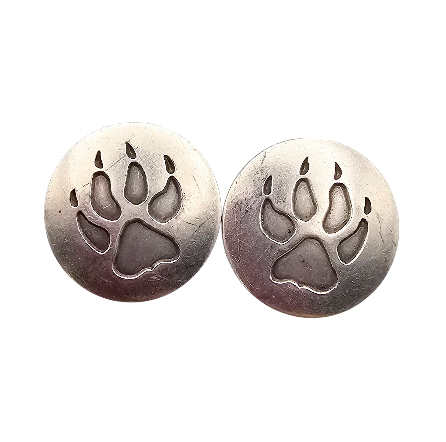 K. Faulkner Sterling Silver Bear Paw Disk Earrings 11.6 G