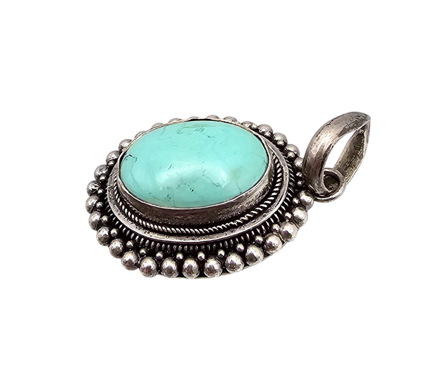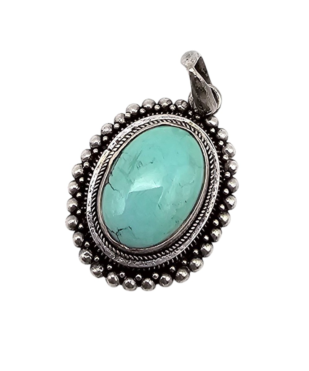Turquoise Southwestern Sterling Silver Pendant 7.1 G
