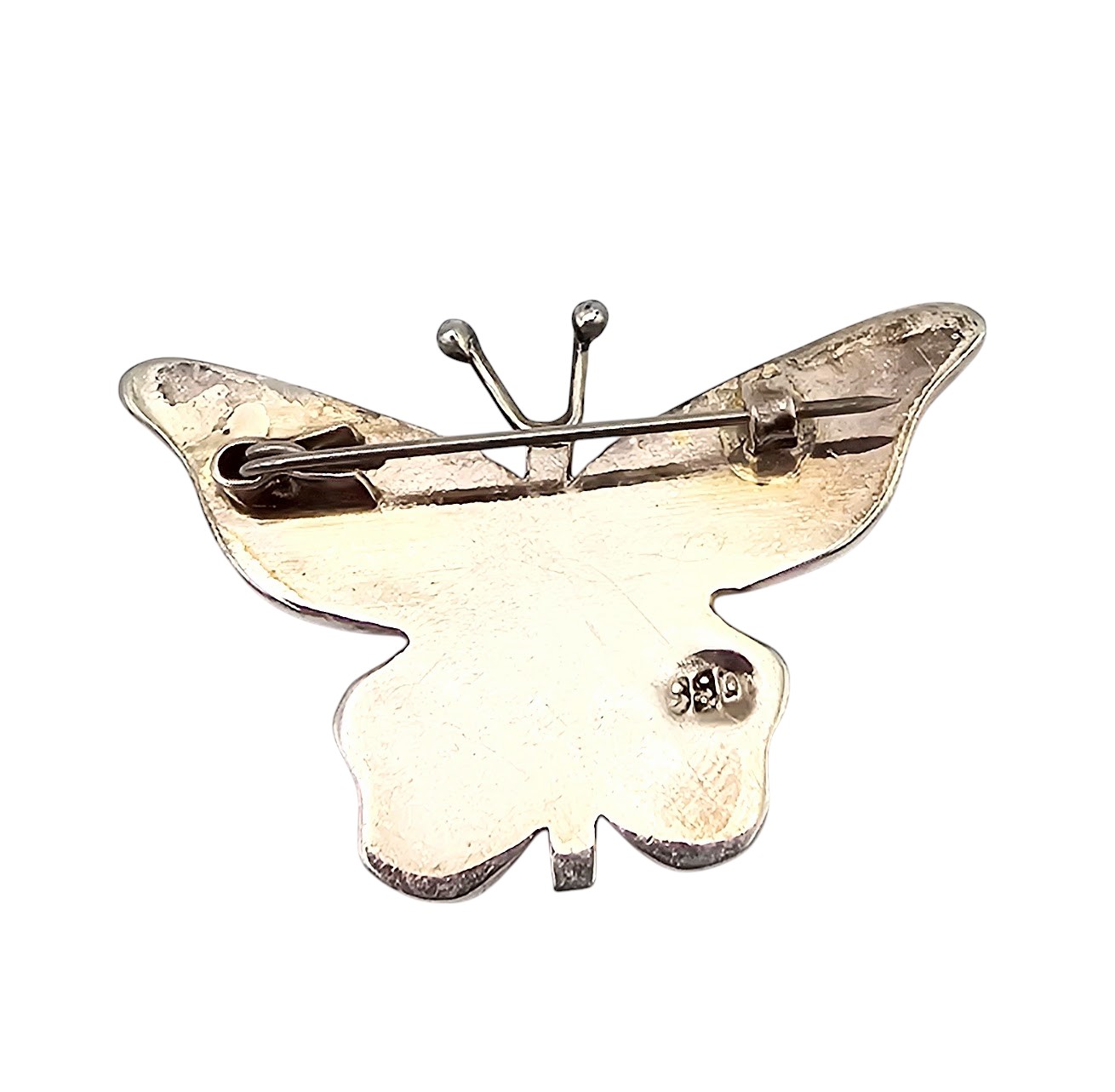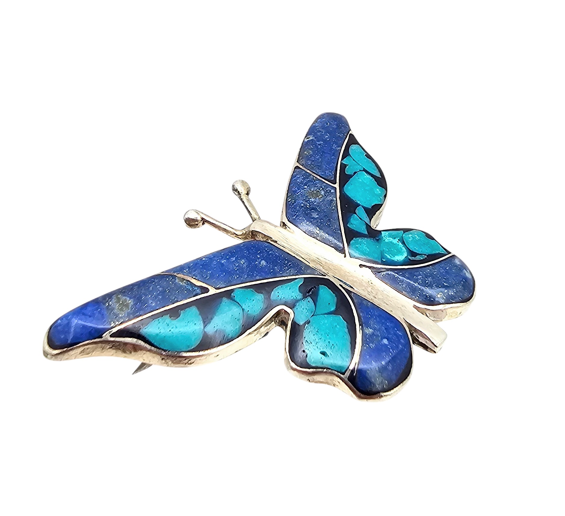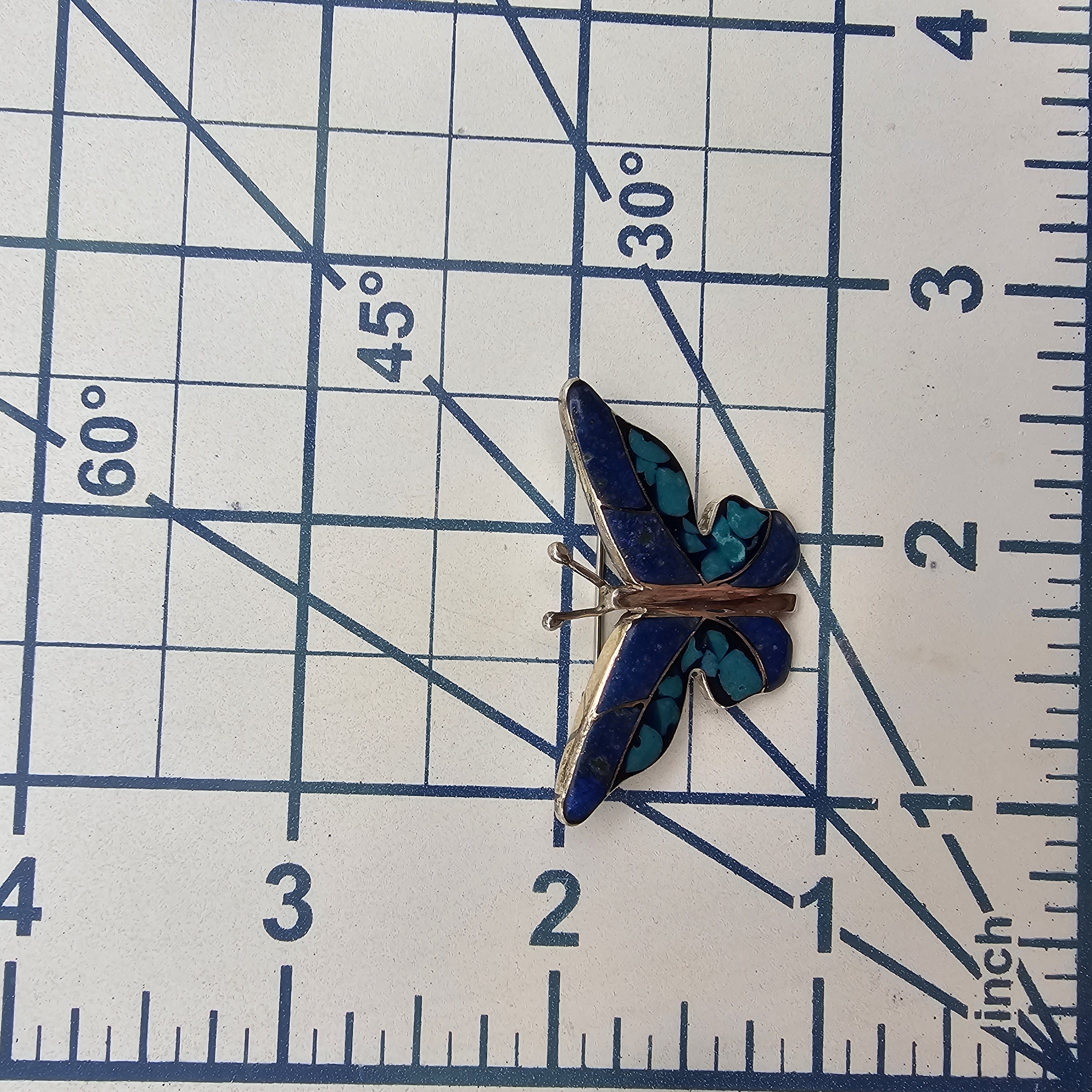 Southwestern Turquoise Lapis Sterling Silver Butterfly Brooch 5.4 G