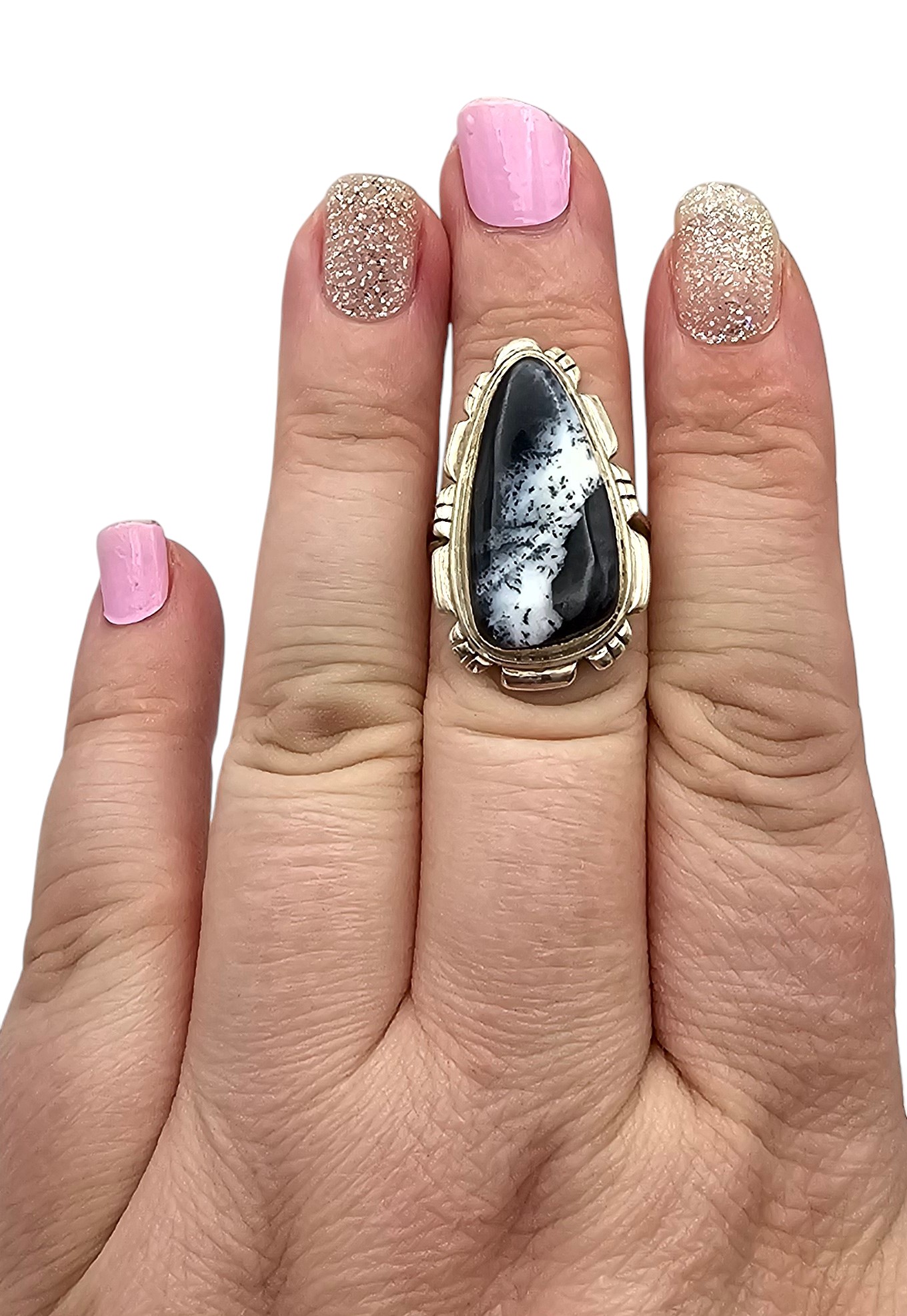 Southwestern Tourmaline Incased Quartz Sterling Silver Ring Size 7.25 7.2 G