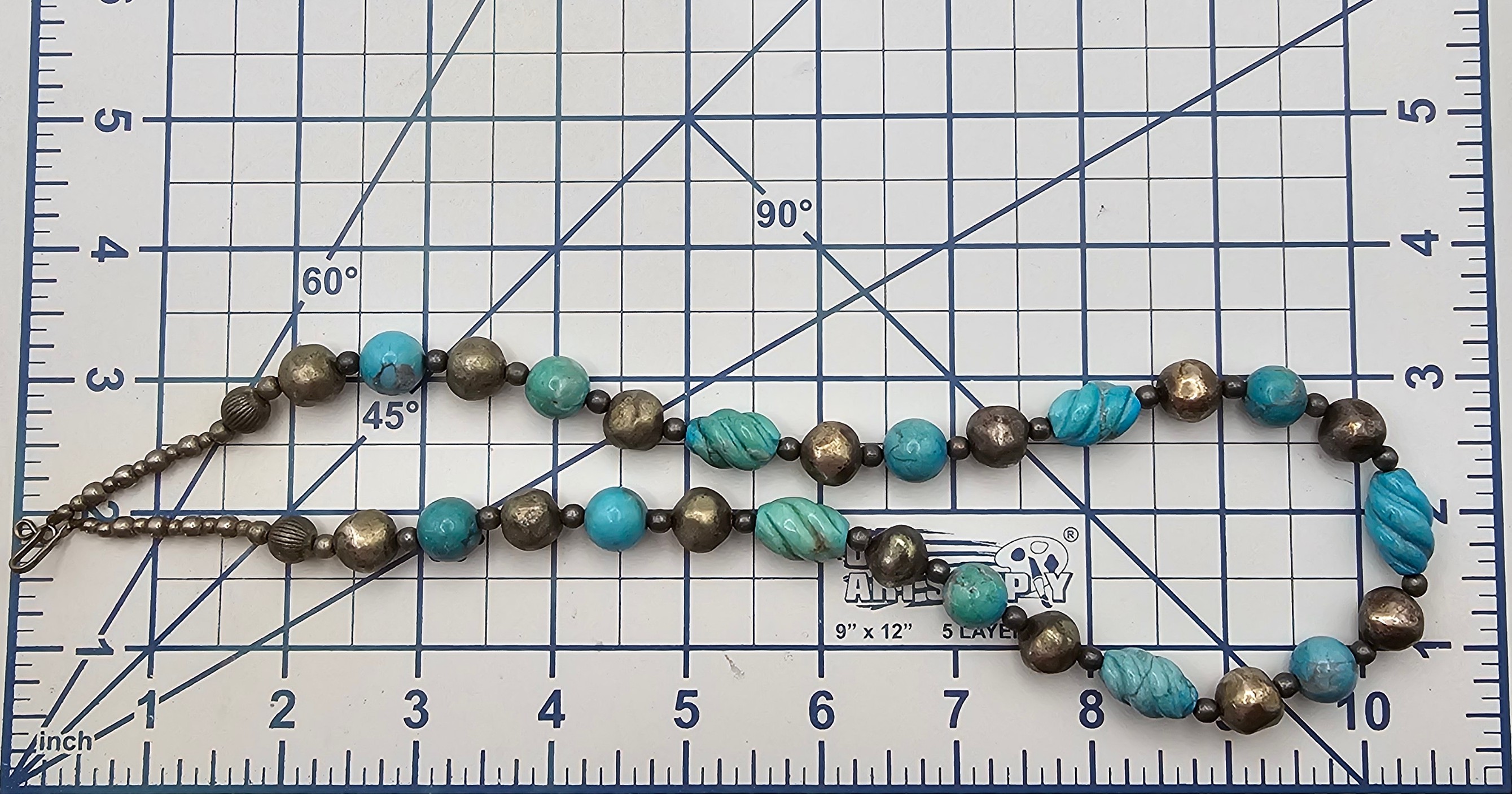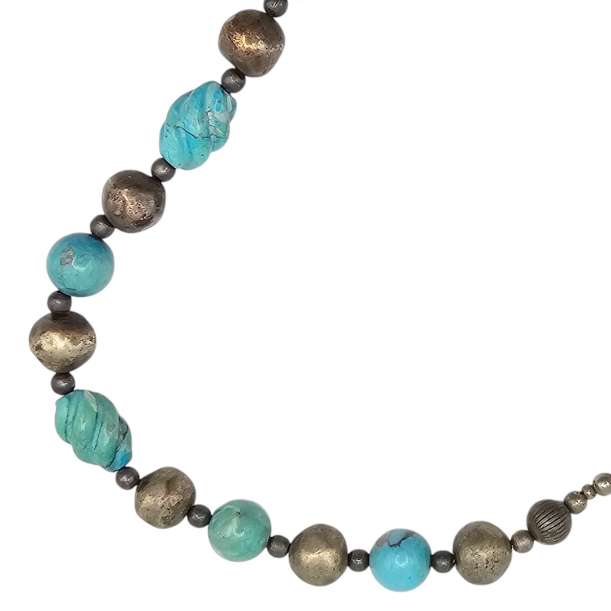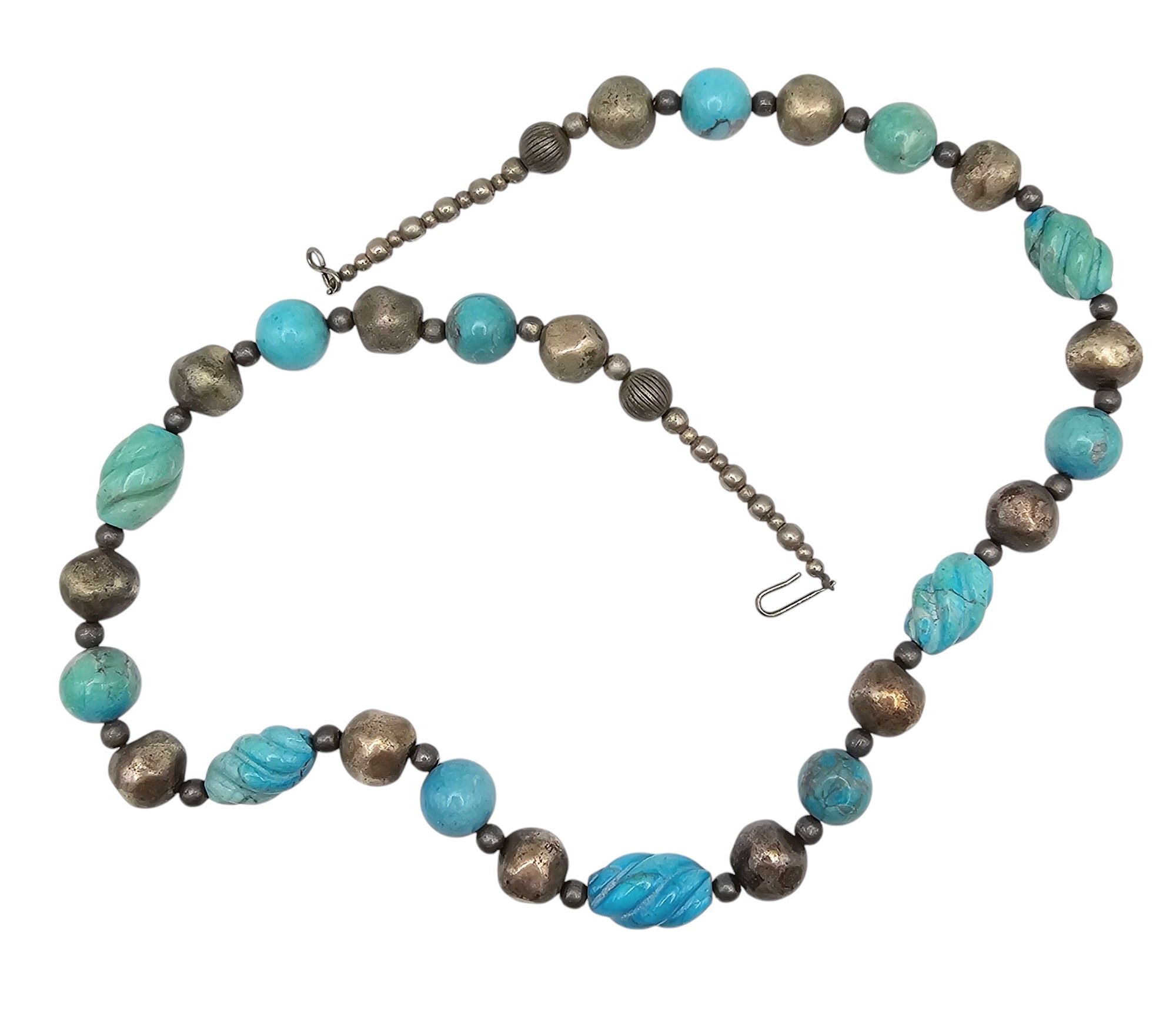 Southwestern Turquoise Sterling Silver Bead Necklace 63.6 G