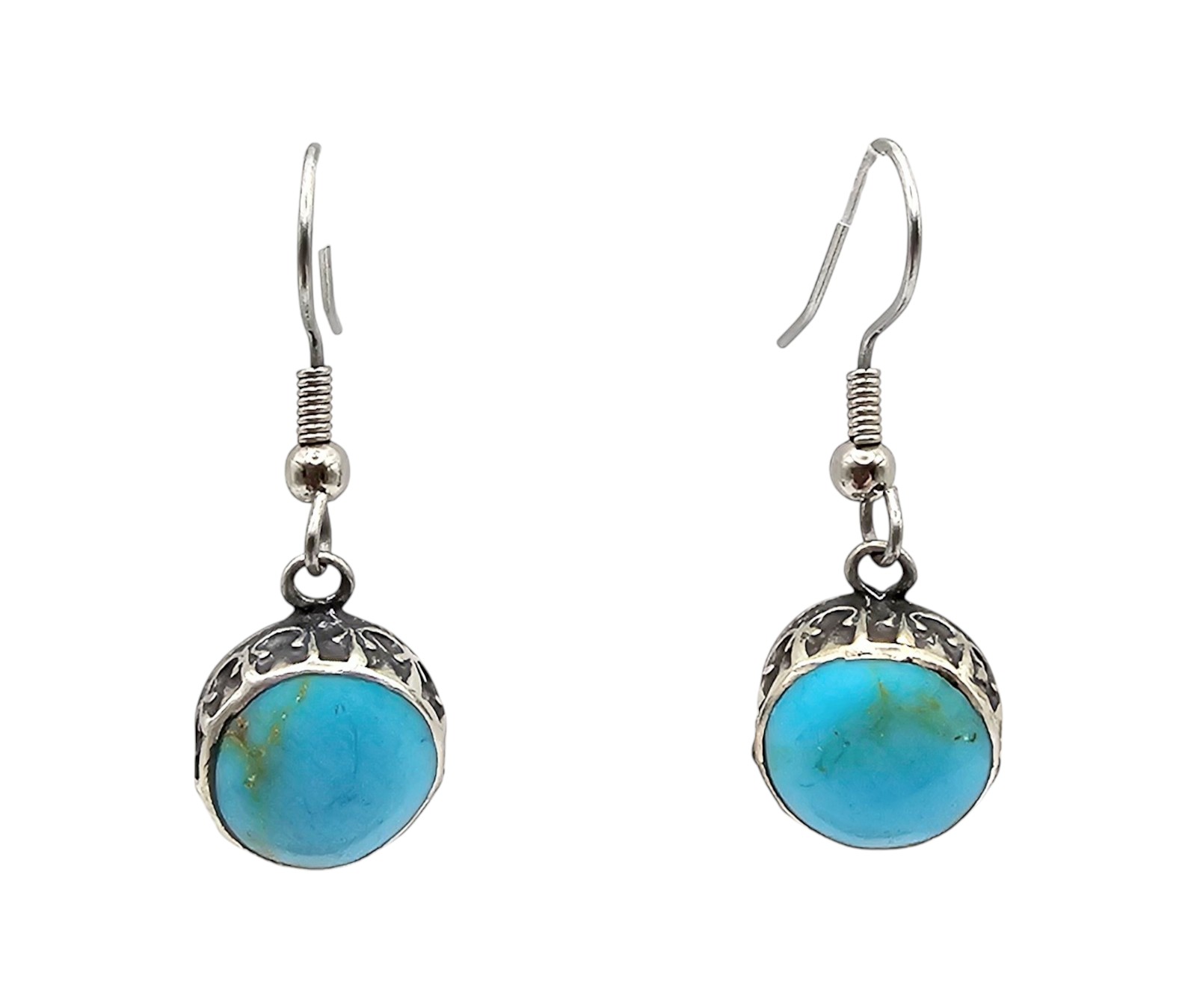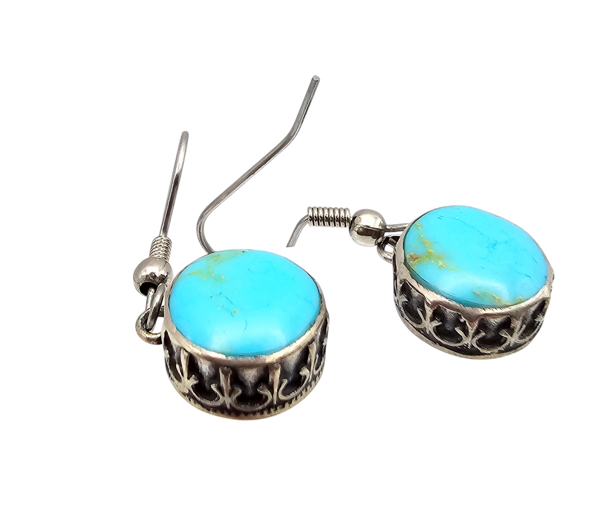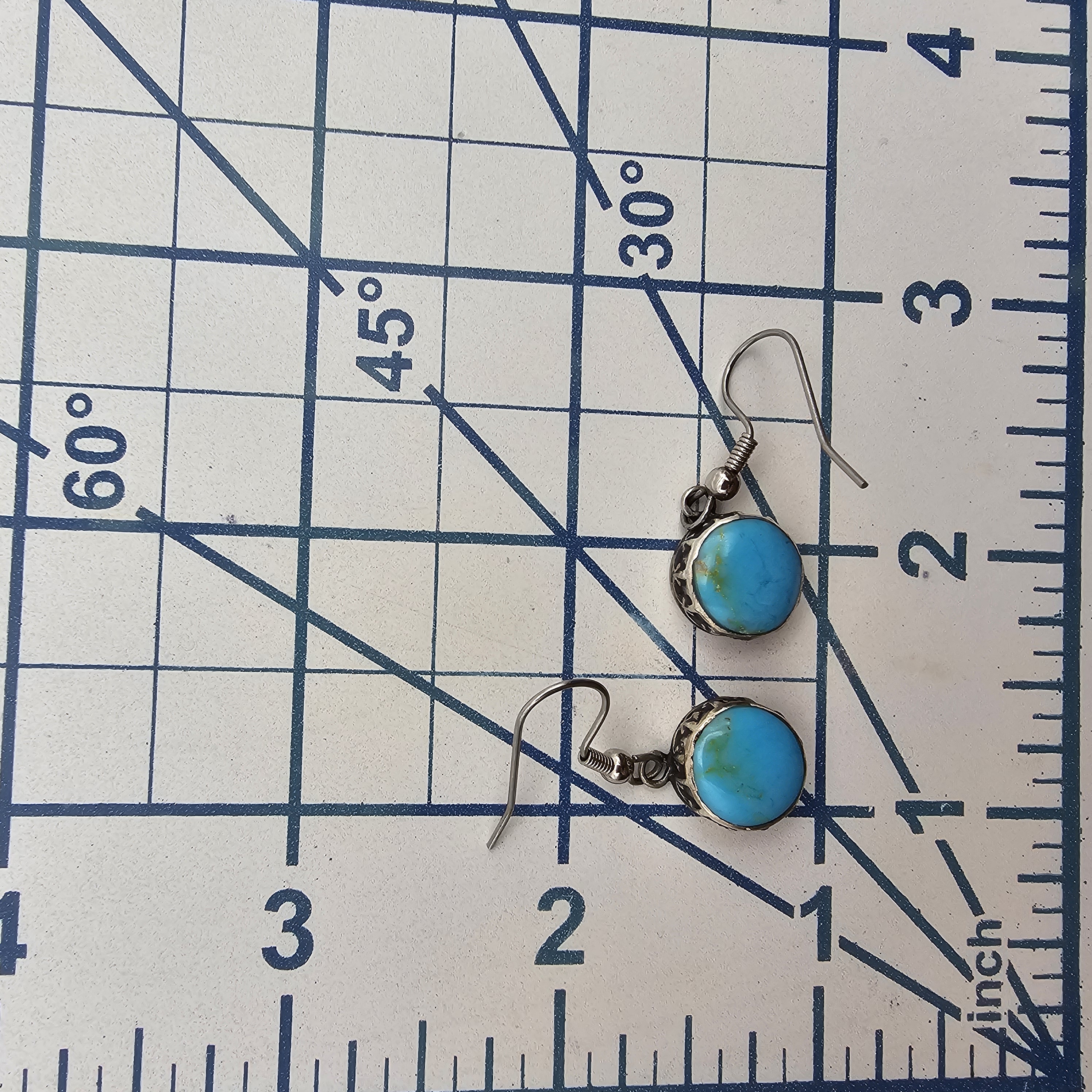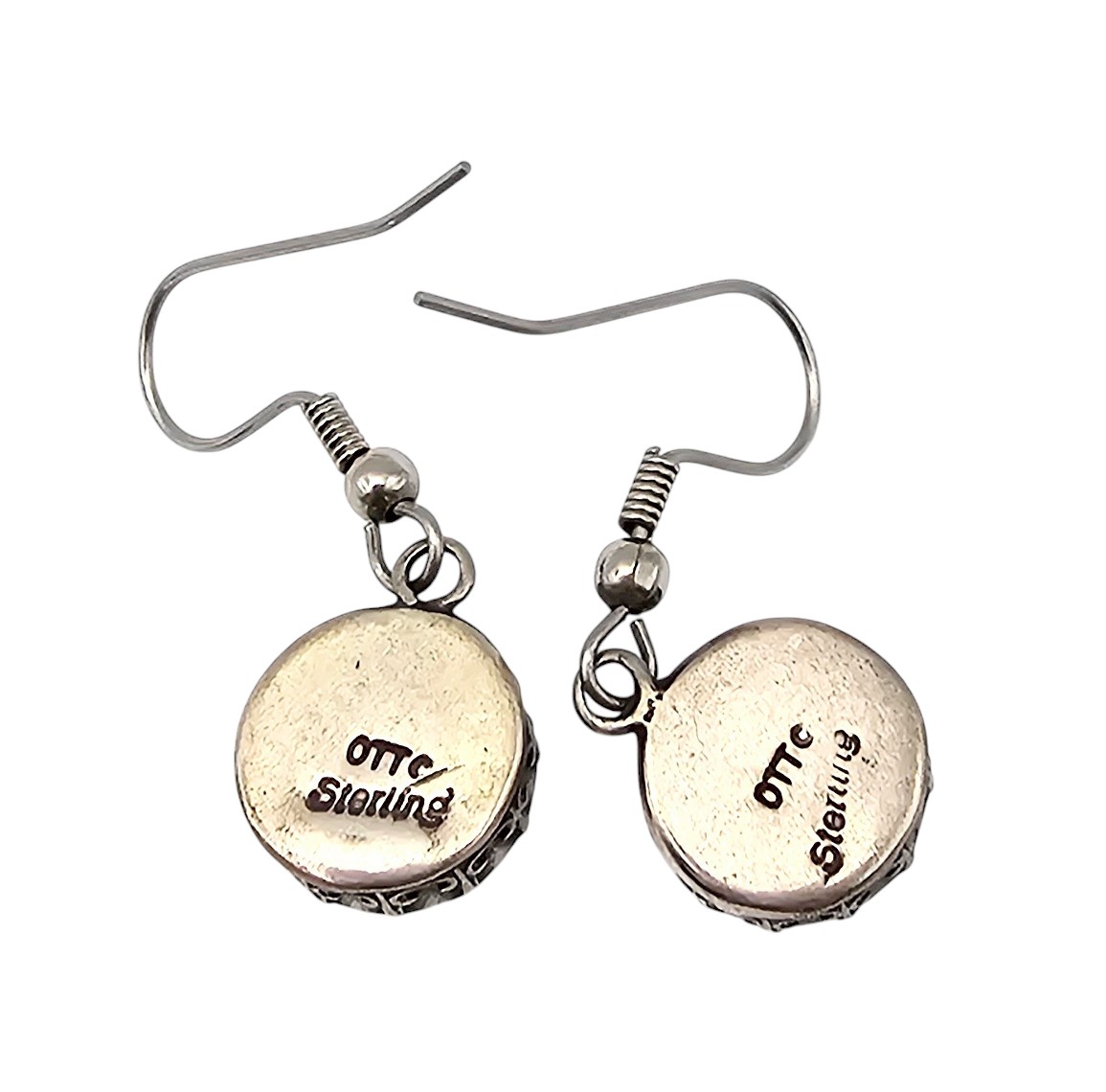 OTT Signed Southwestern Turquoise Sterling Silver Drop Dangle Earrings 5.1 G
