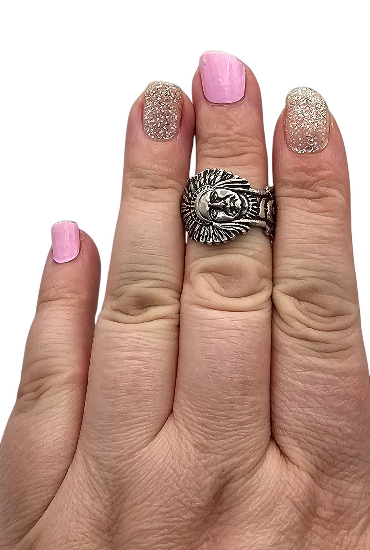Spoon Igues Sterling Silver Native Chief Ring Size 6.75