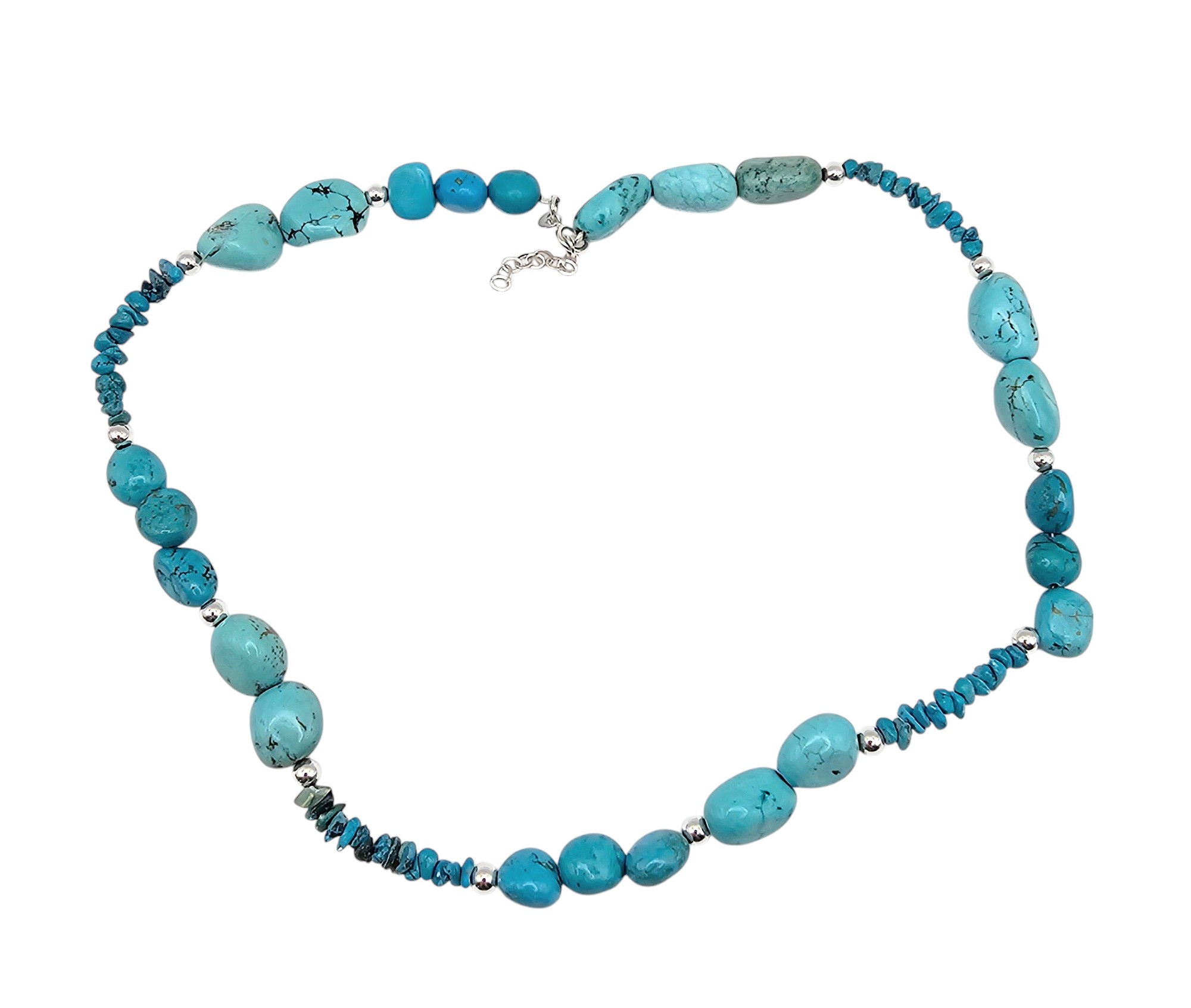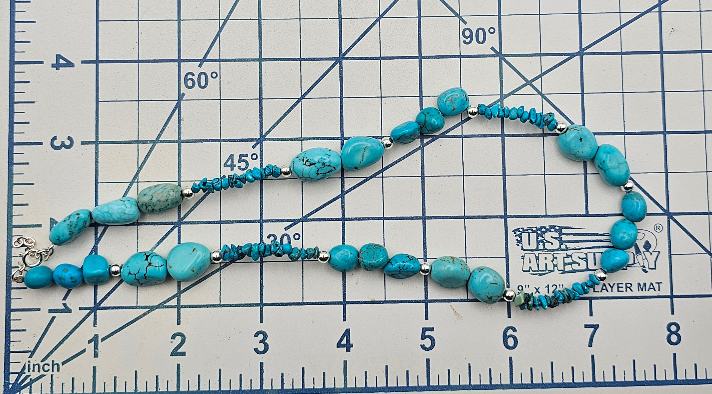 Southwestern SU Turquoise Sterling Silver Necklace 31.1 G