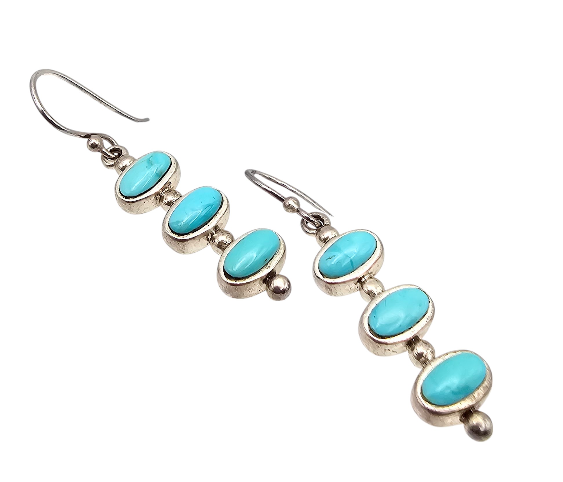 Signed P Southwestern Turquoise Sterling Silver Drop Dangle Earrings 4 G
