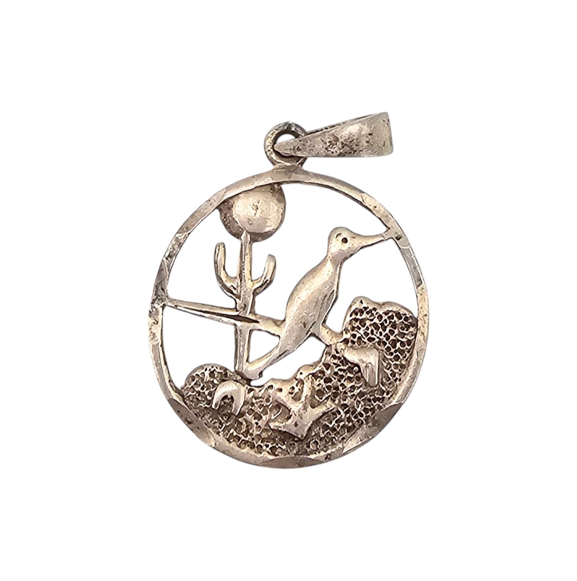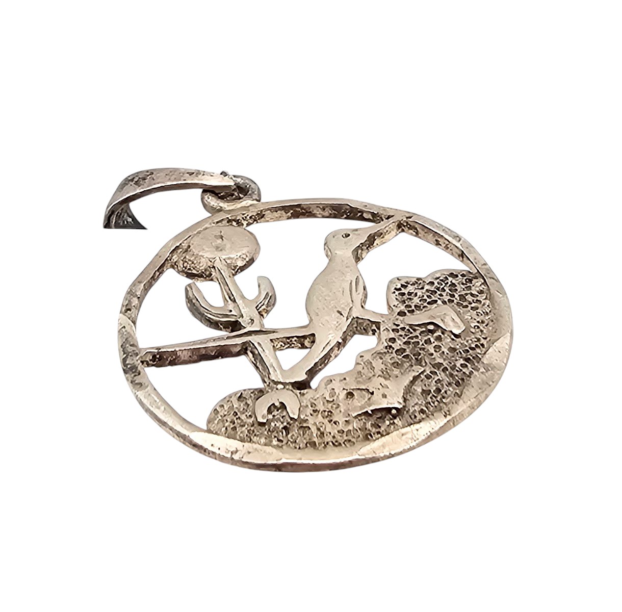 Southwestern Sterling Silver Roadrunner and Cactus Pendant 2.8 G