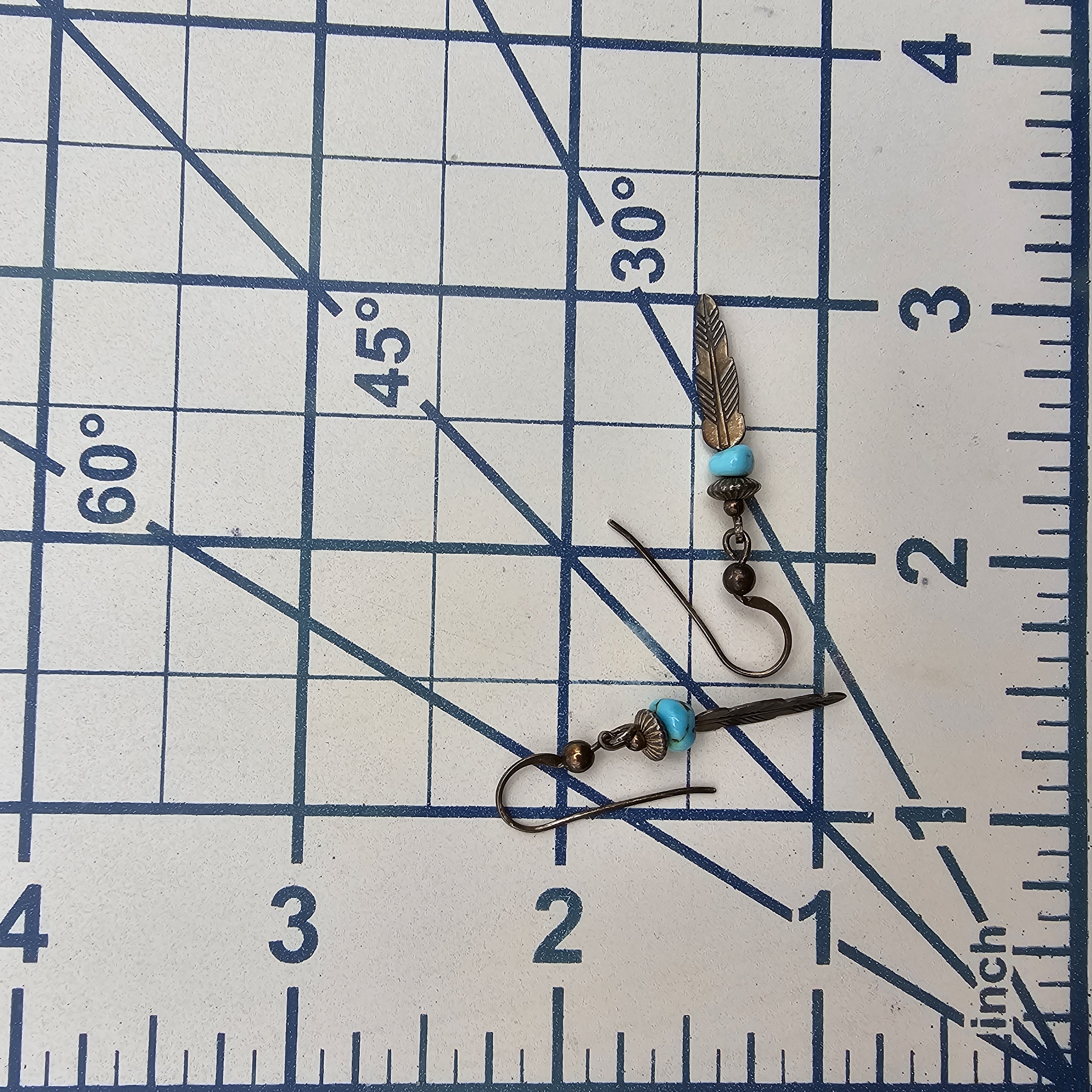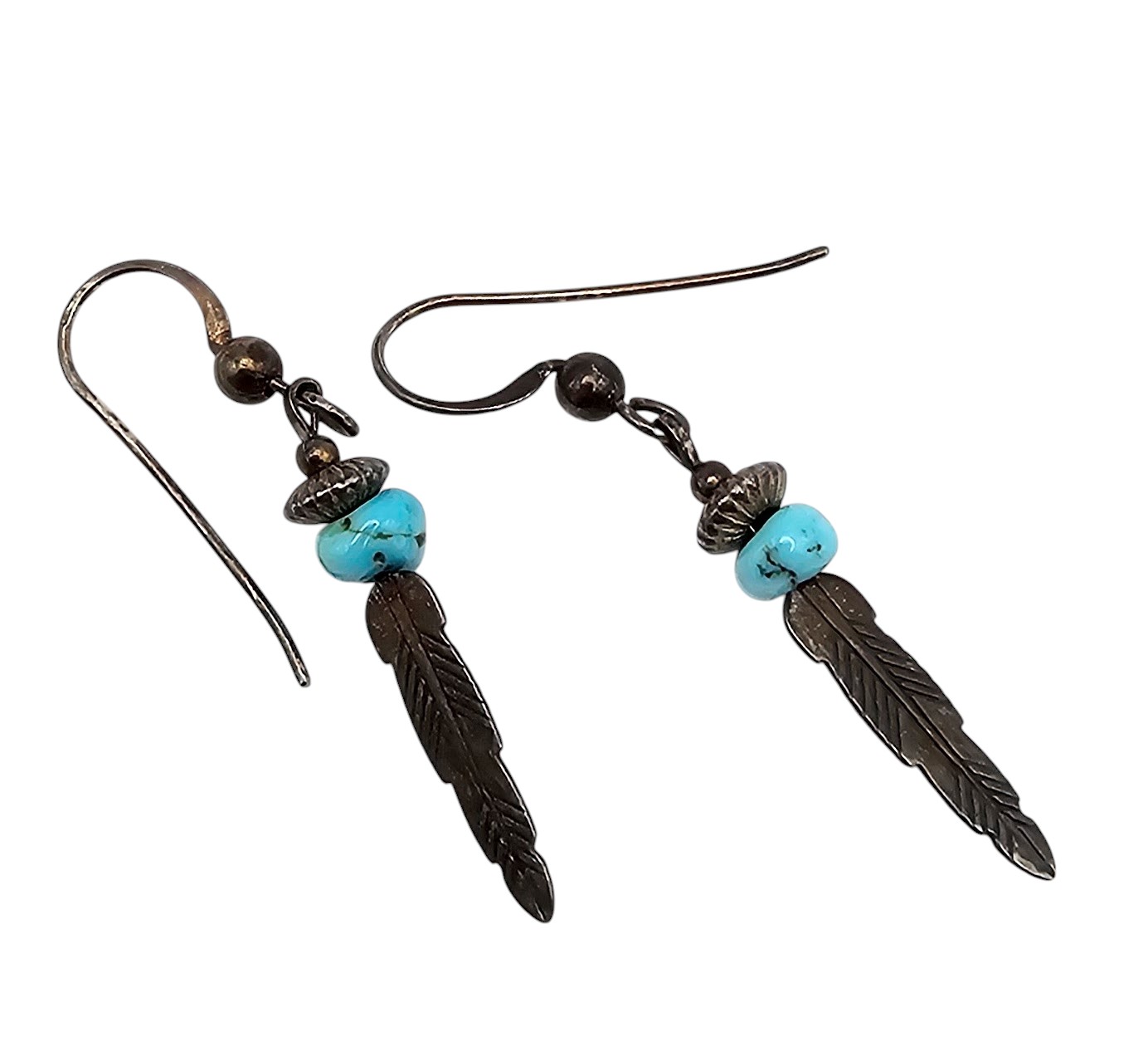 Native Turquoise Sterling Silver Feather Drop Dangle Earrings 1.3 G