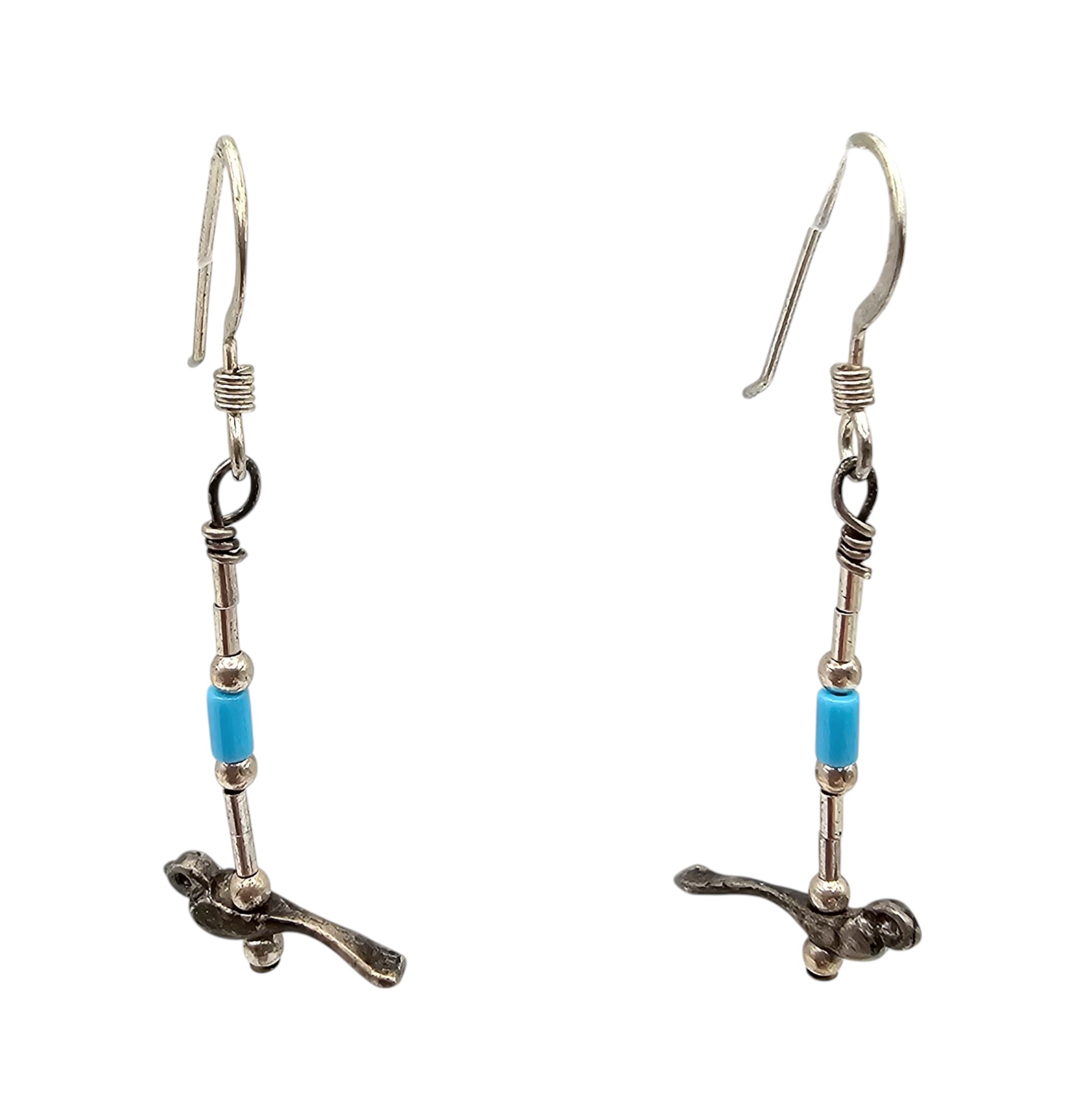 Native Turquoise Sterling Silver Fetish Bird Drop Dangle Earrings 1.3 G
