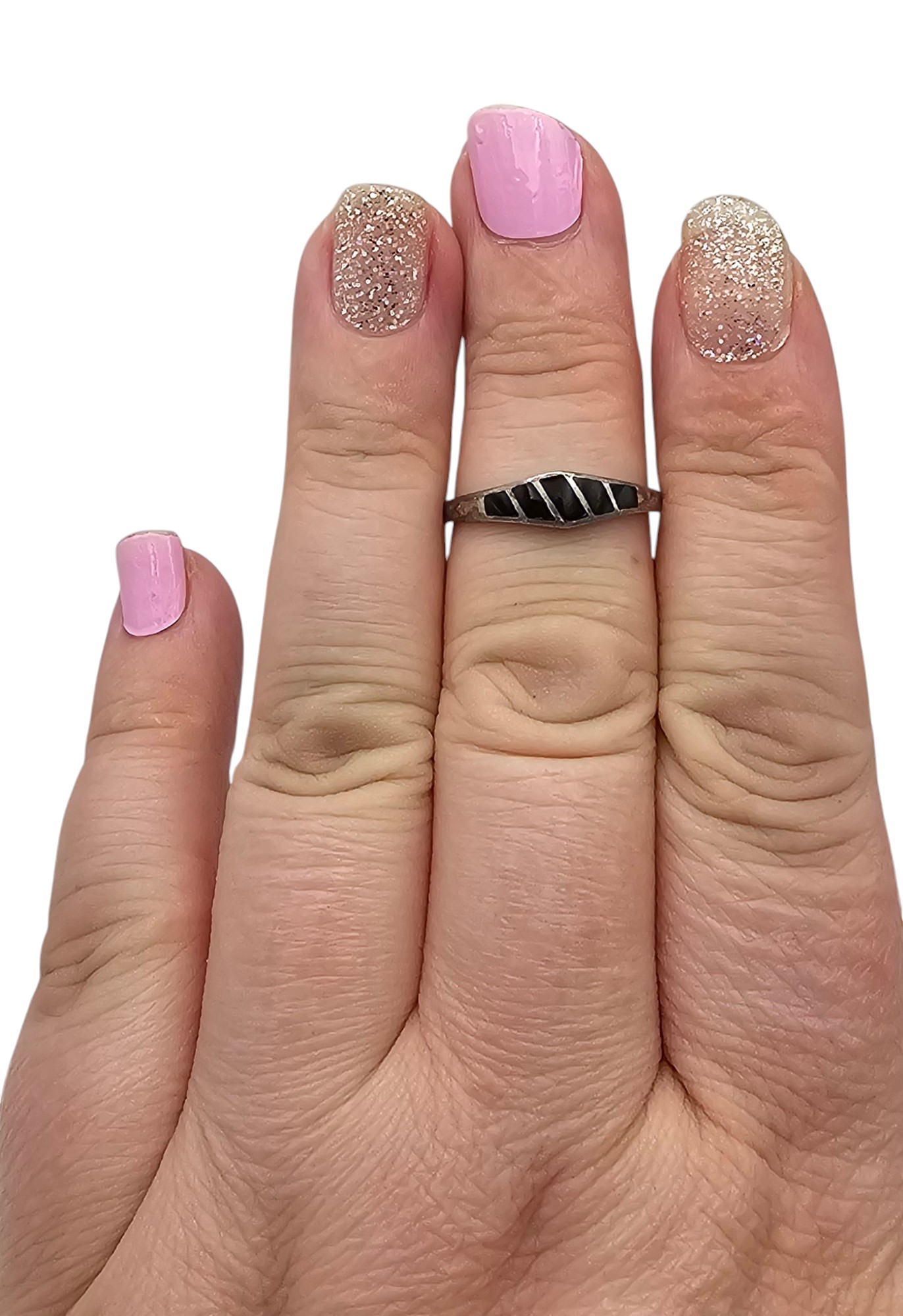 Native Onyx Sterling Silver Inlay Ring Size 7 1.4 G