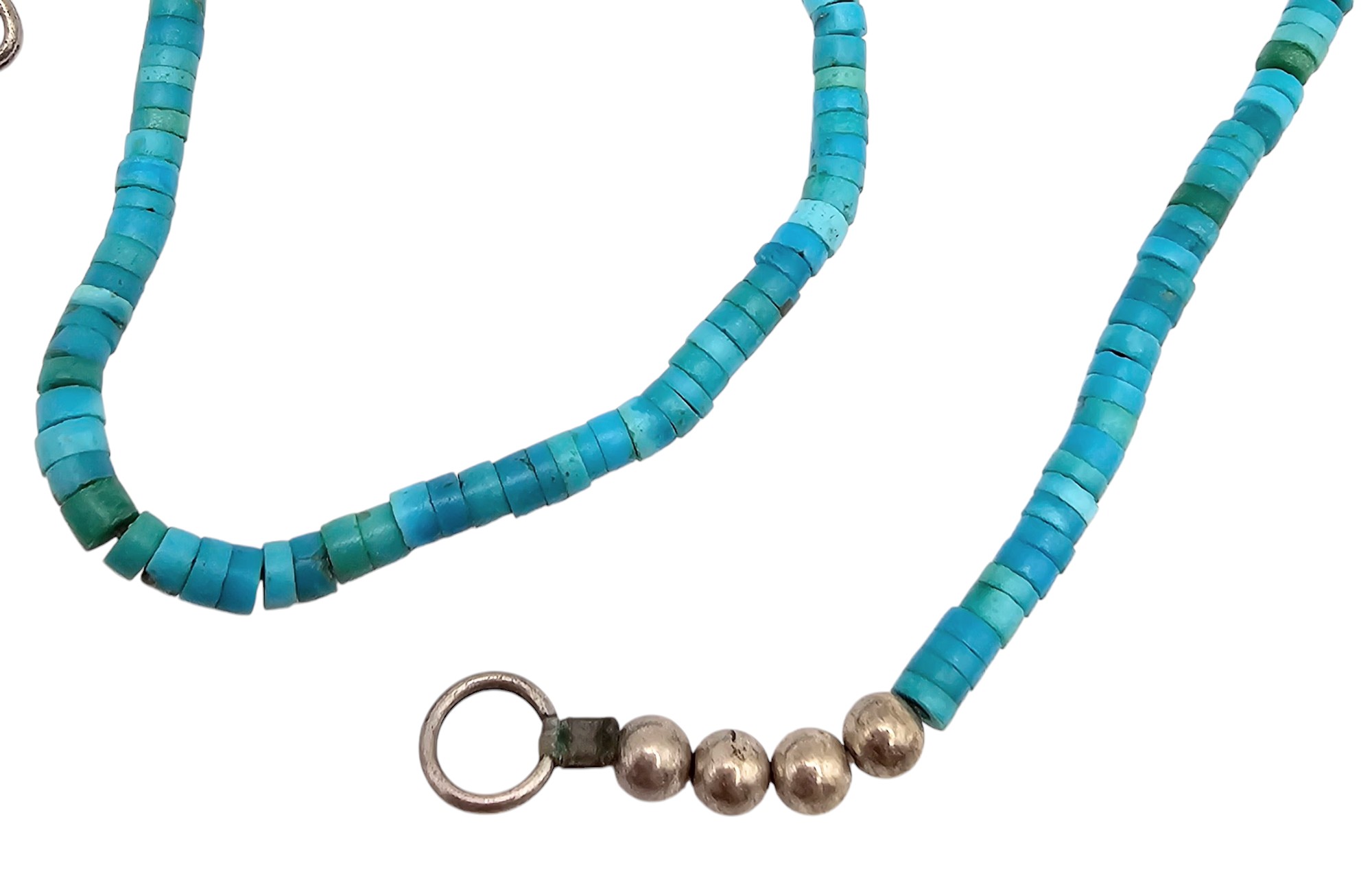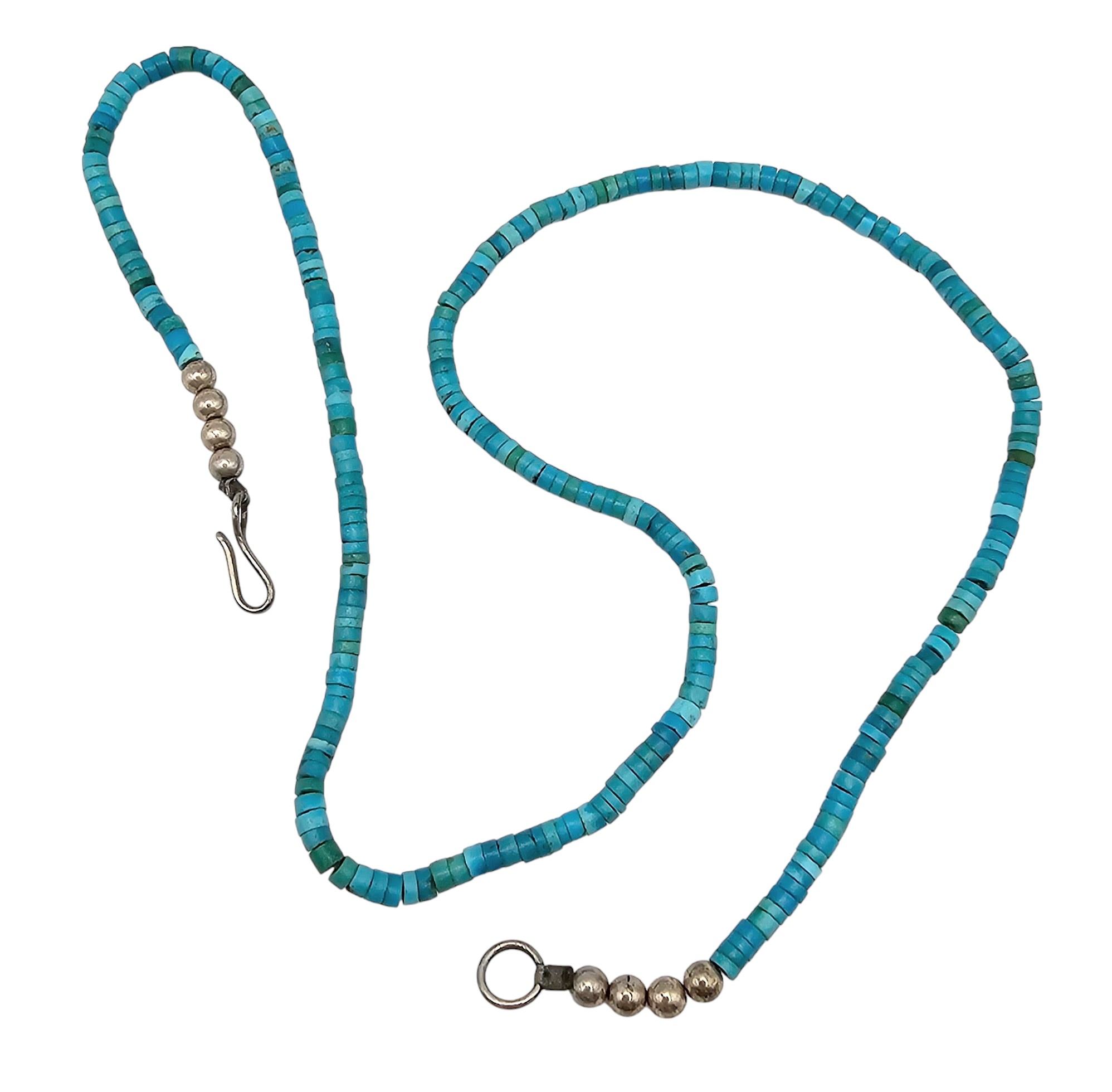 Southwestern Turquoise Disk Sterling Silver Necklace 7.3 G