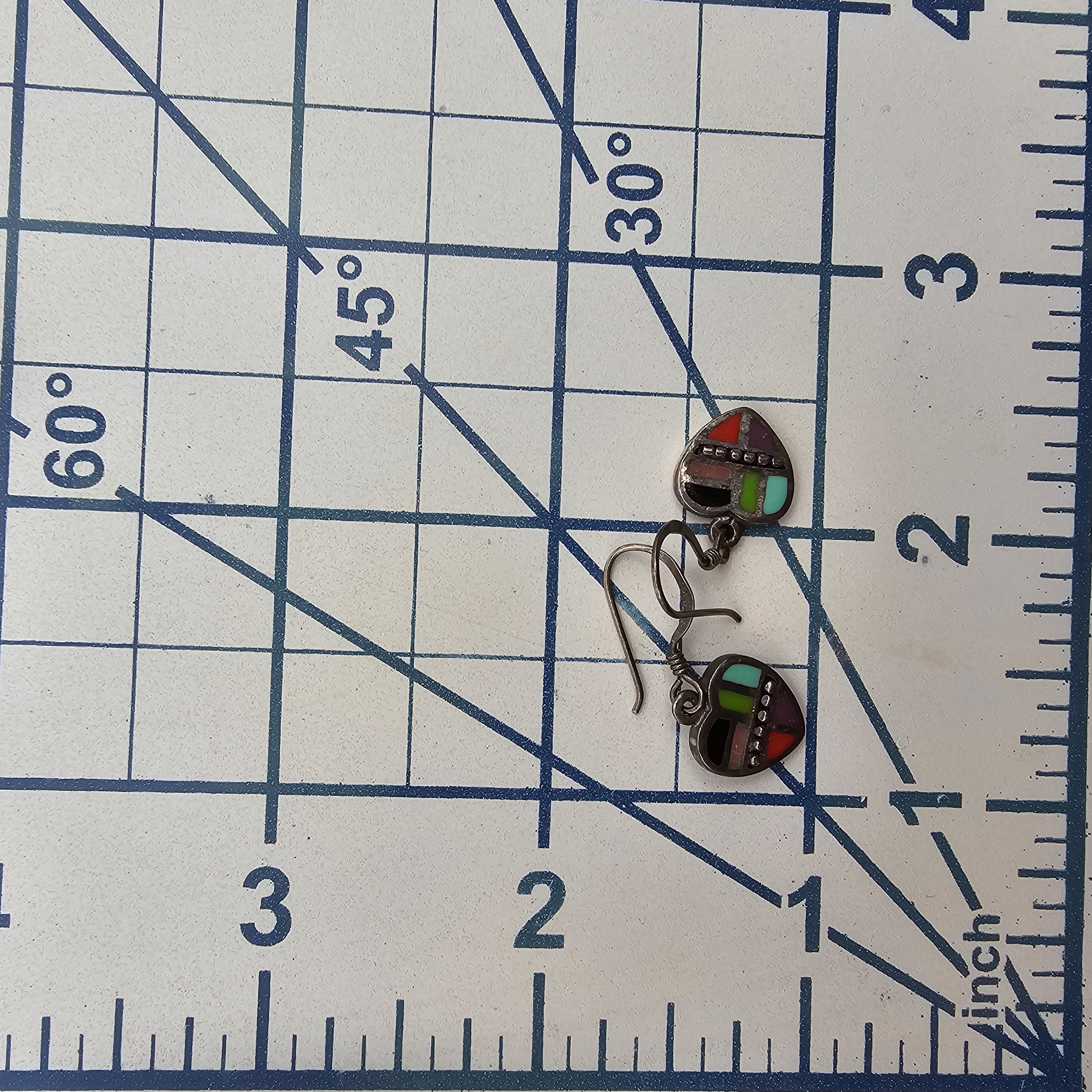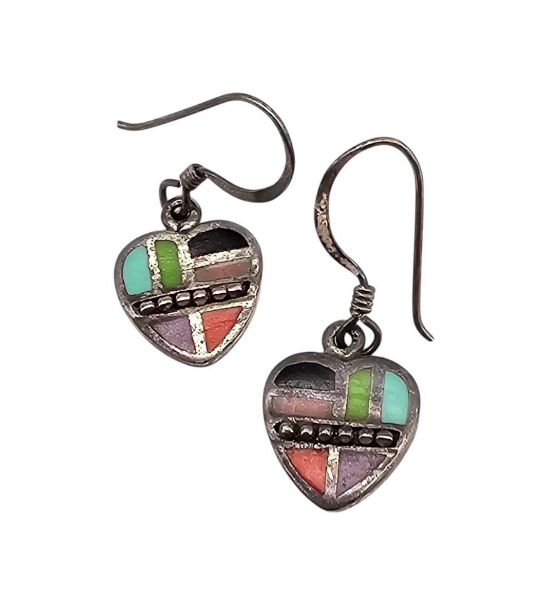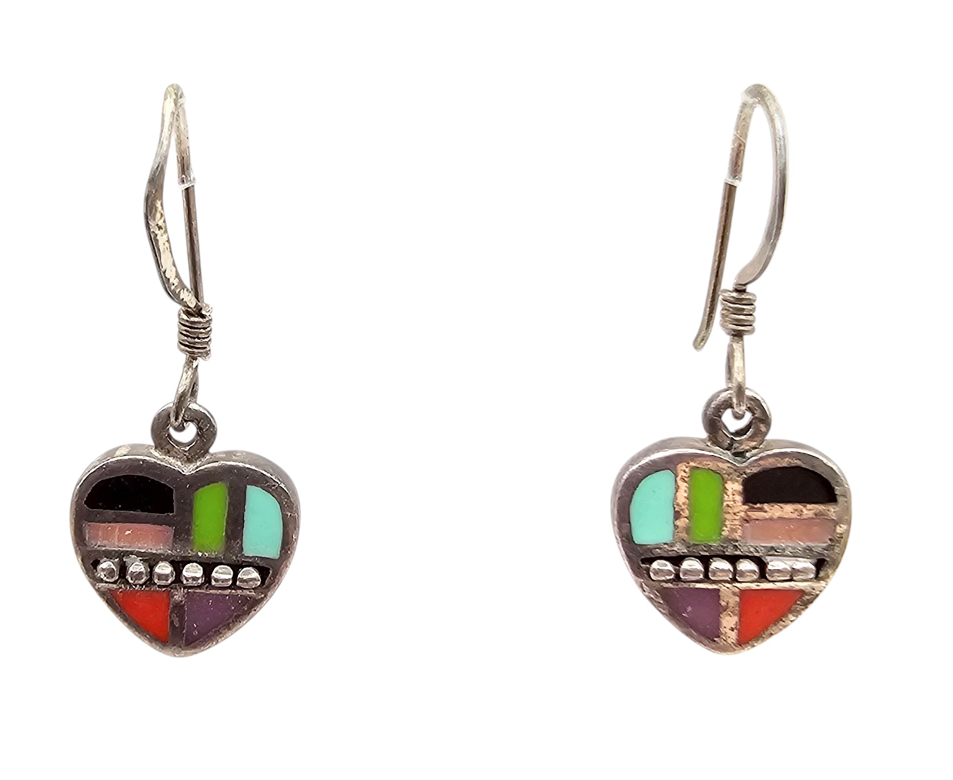 Southwestern Multi Stone Sterling Silver Heart Drop Dangle Earrings 3.4 G