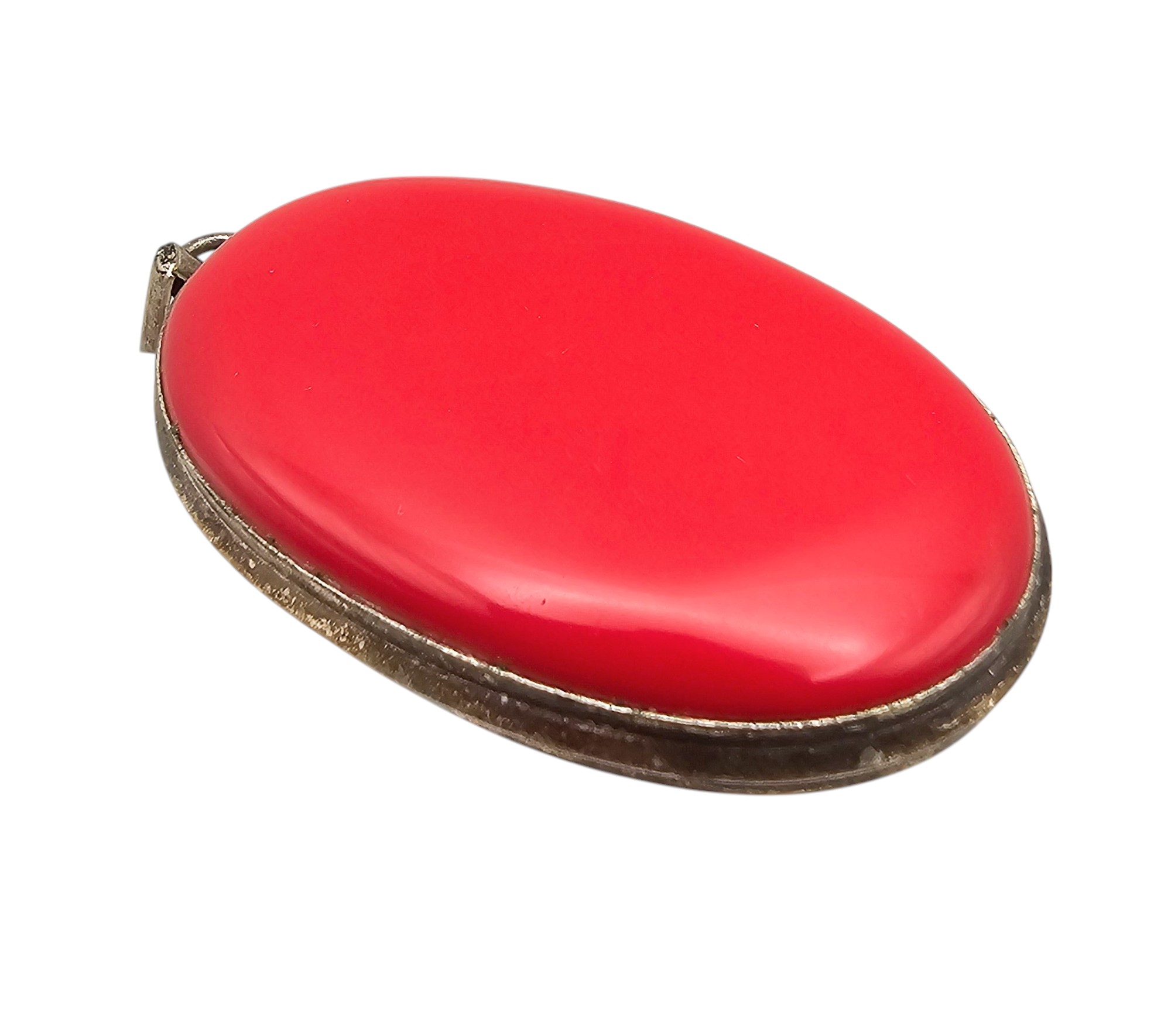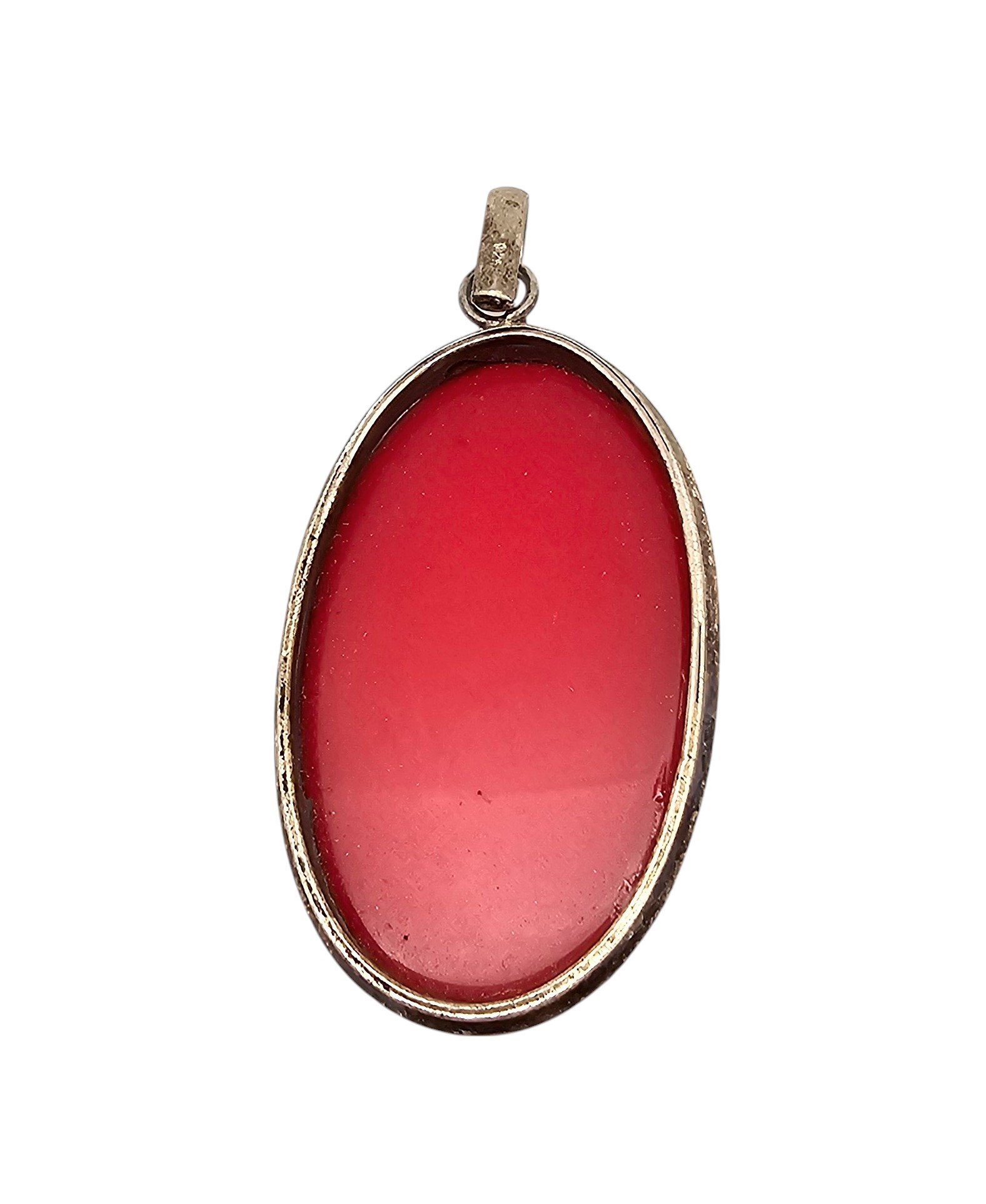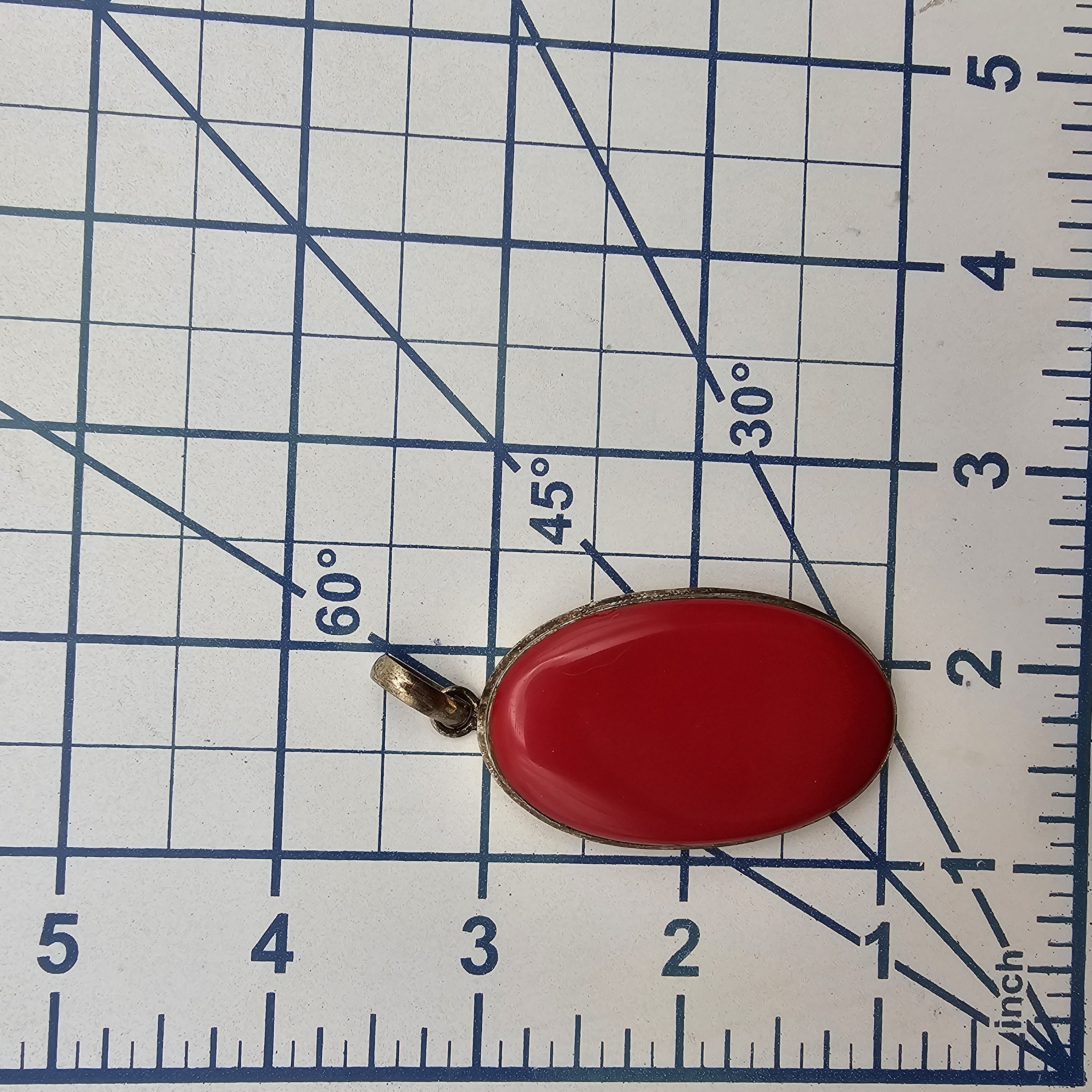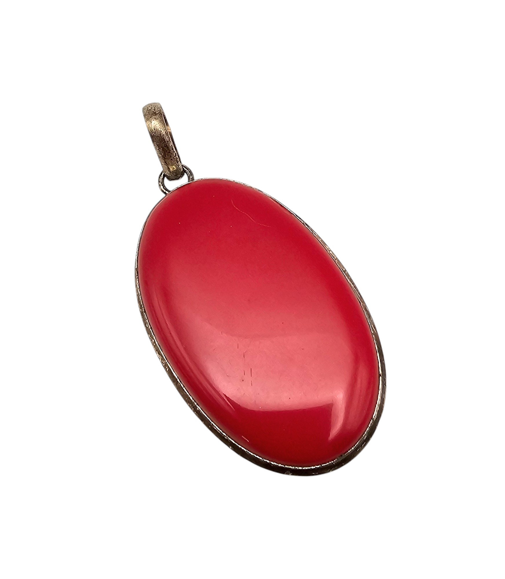 Southwestern Coral Sterling Silver Large Oval Pendant 20 G