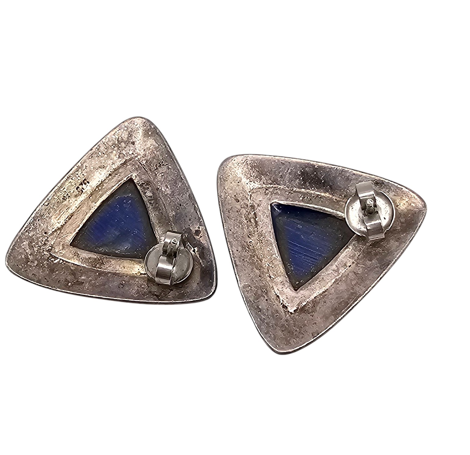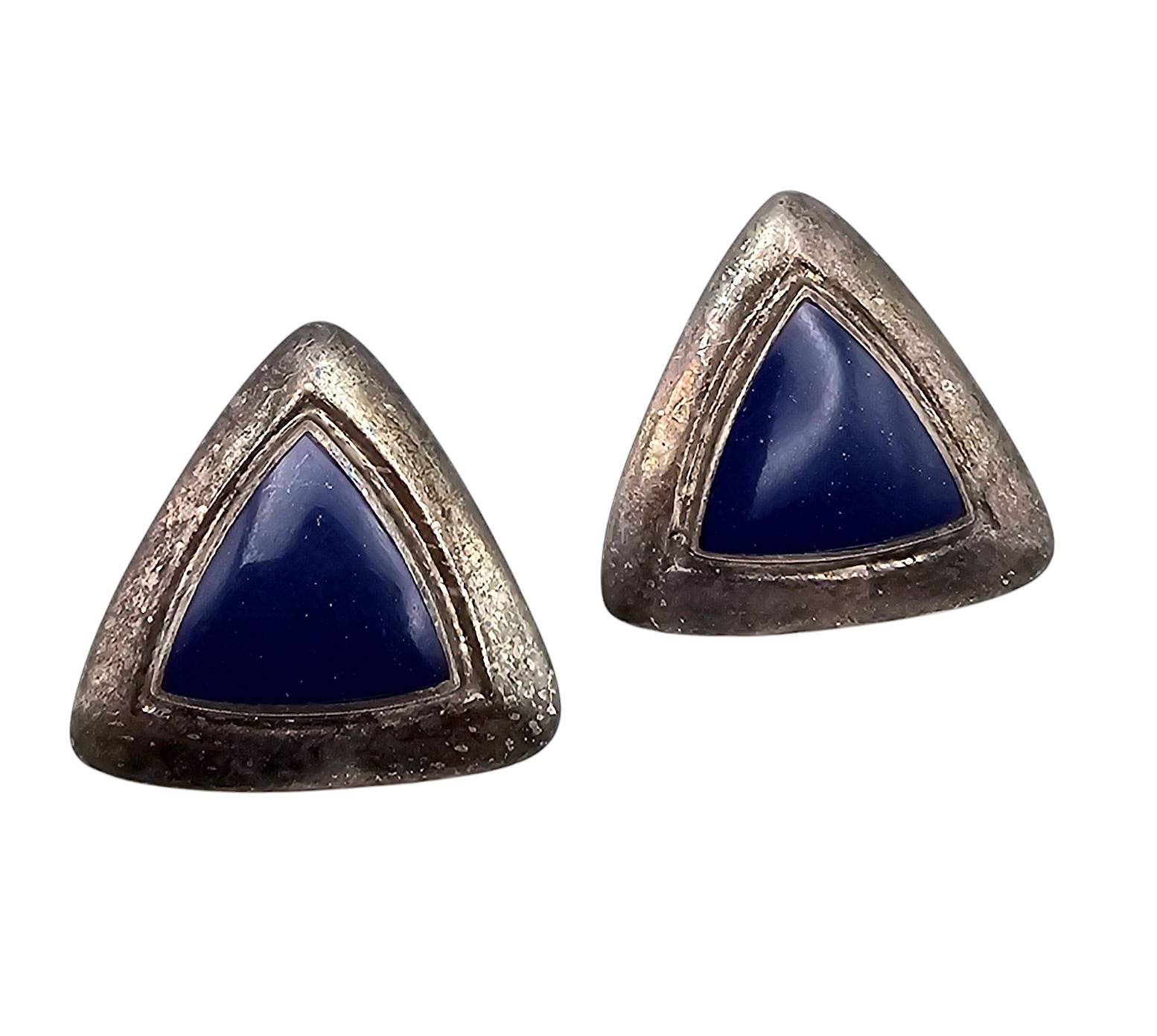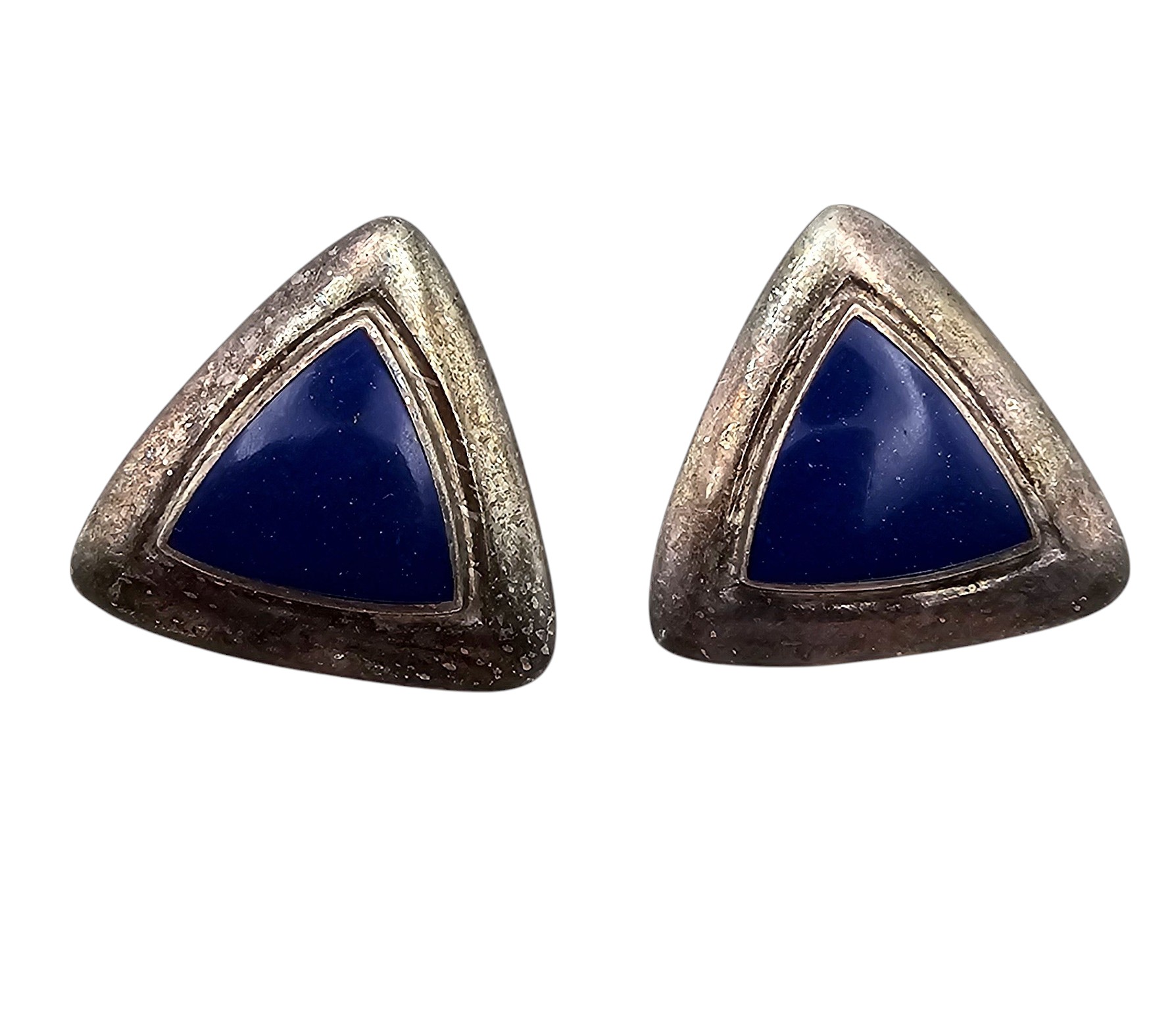 Southwestern Lapis Sterling Silver Triangle Earrings 8 G