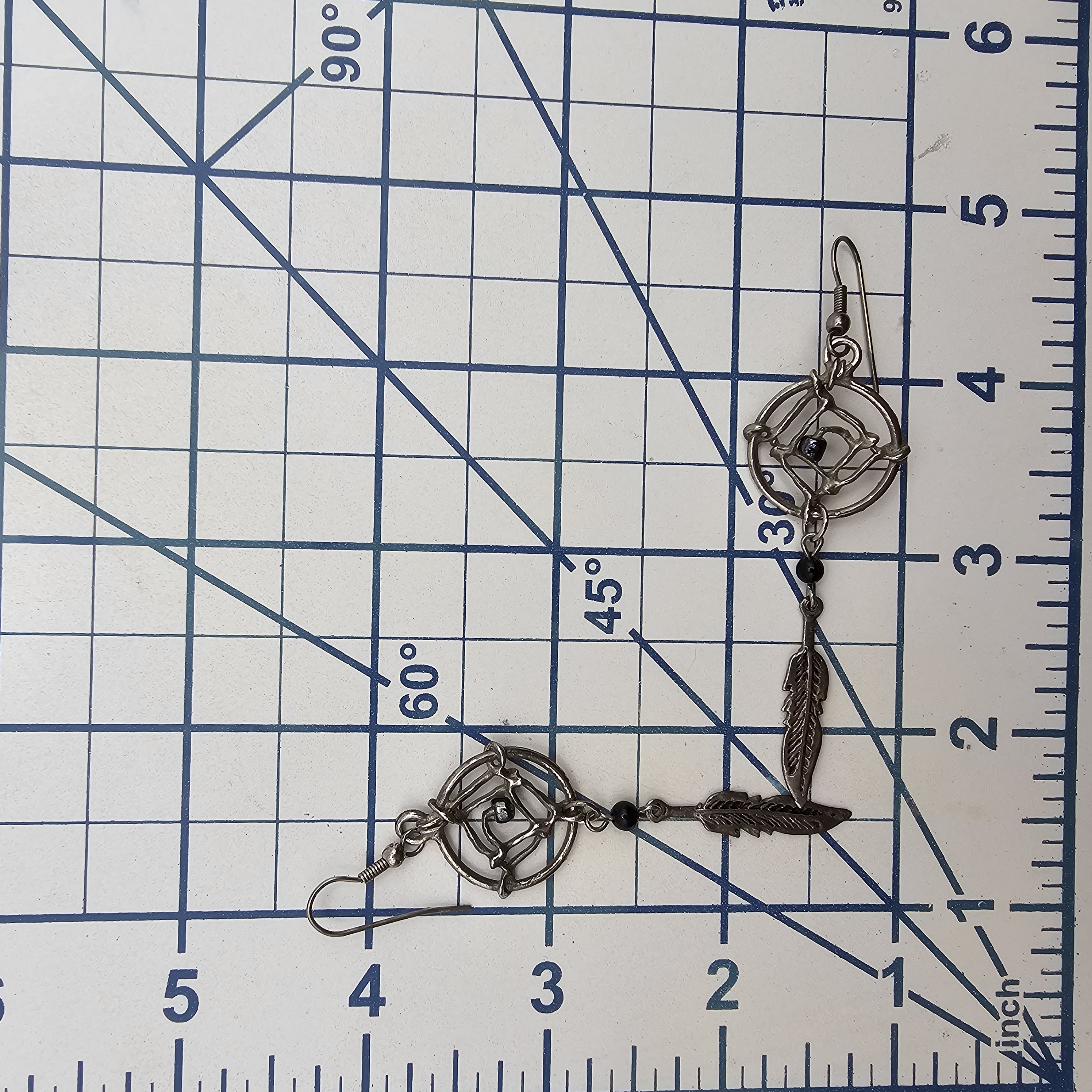 Onyx Sterling Silver Southwestern Feather Dream Catcher Drop Dangle Earrings 6.1 G