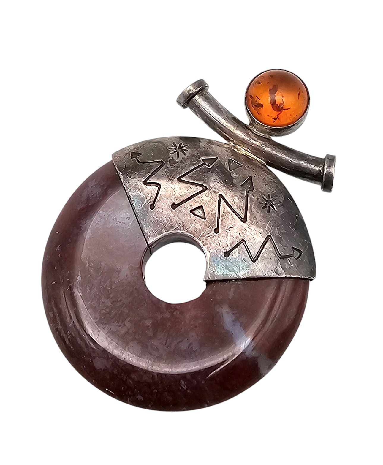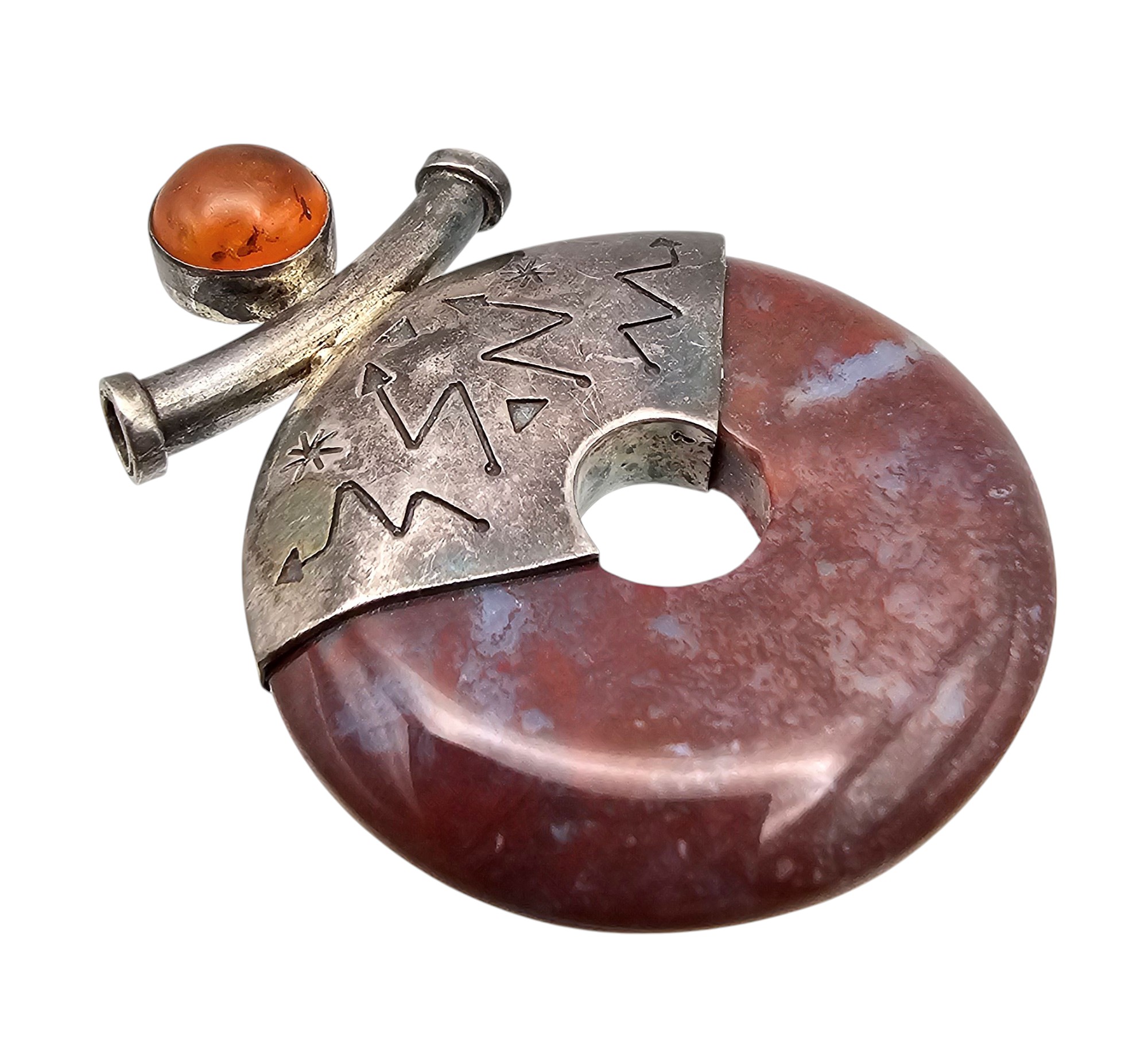Southwestern Amber Jasper Sterling Silver Pendant 17.7 G
