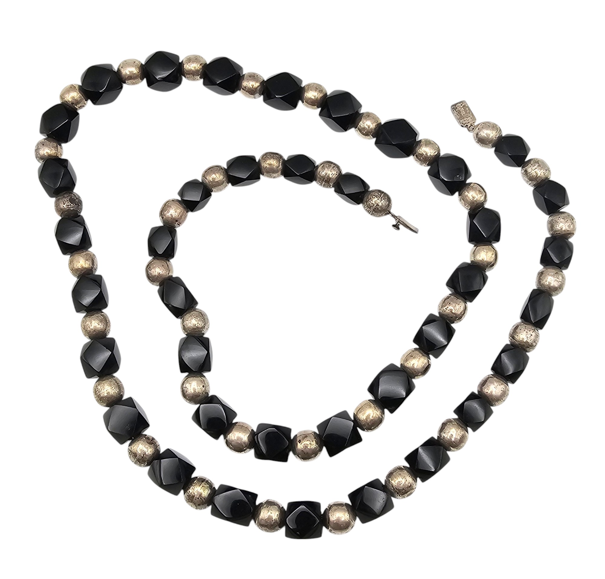 Southwestern Glass Bead Sterling Silver Necklace 147.8 G