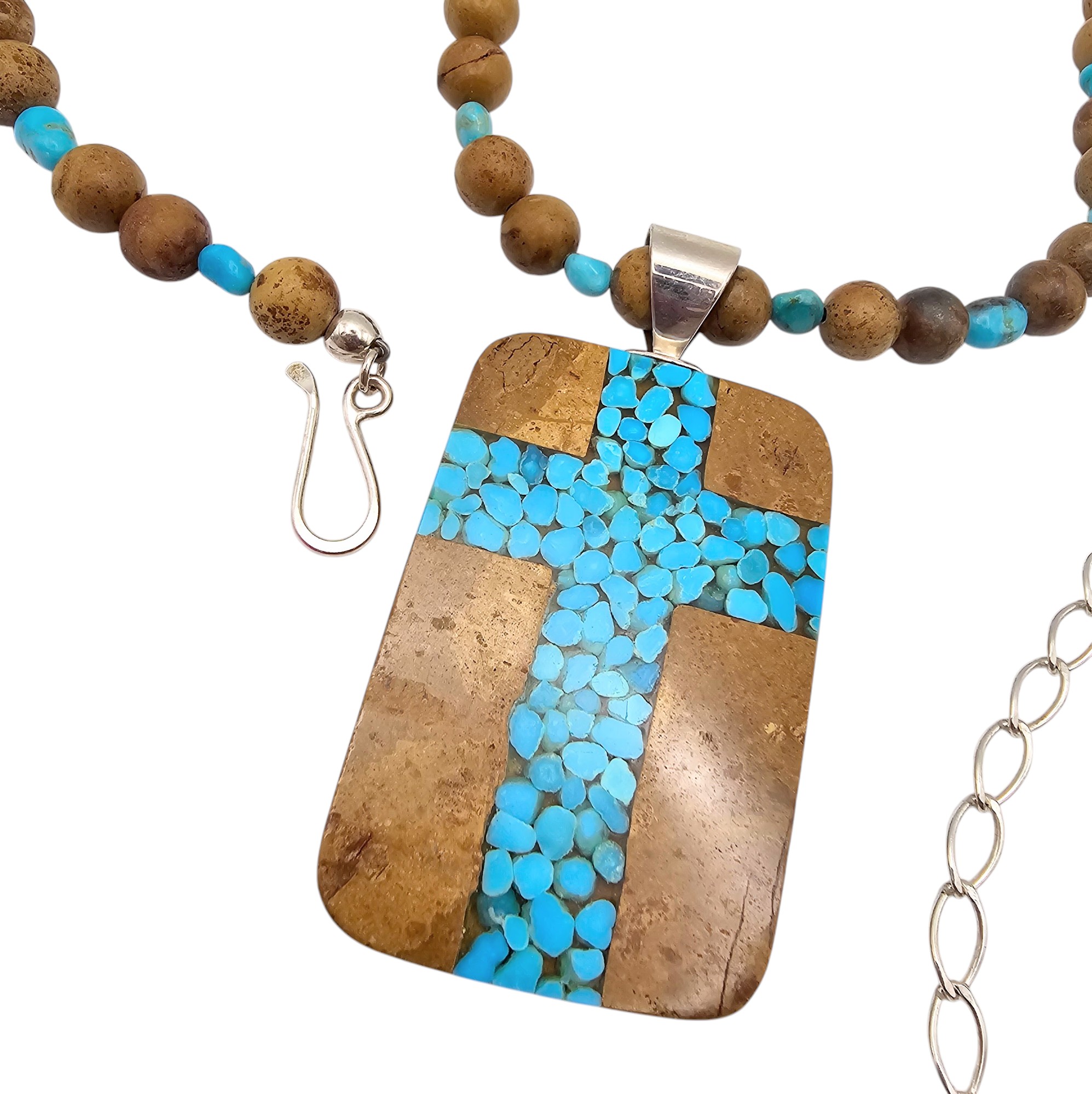 Jay King Mine Finds Jasper Turquoise Sterling Silver Cross Necklace 66.4 G