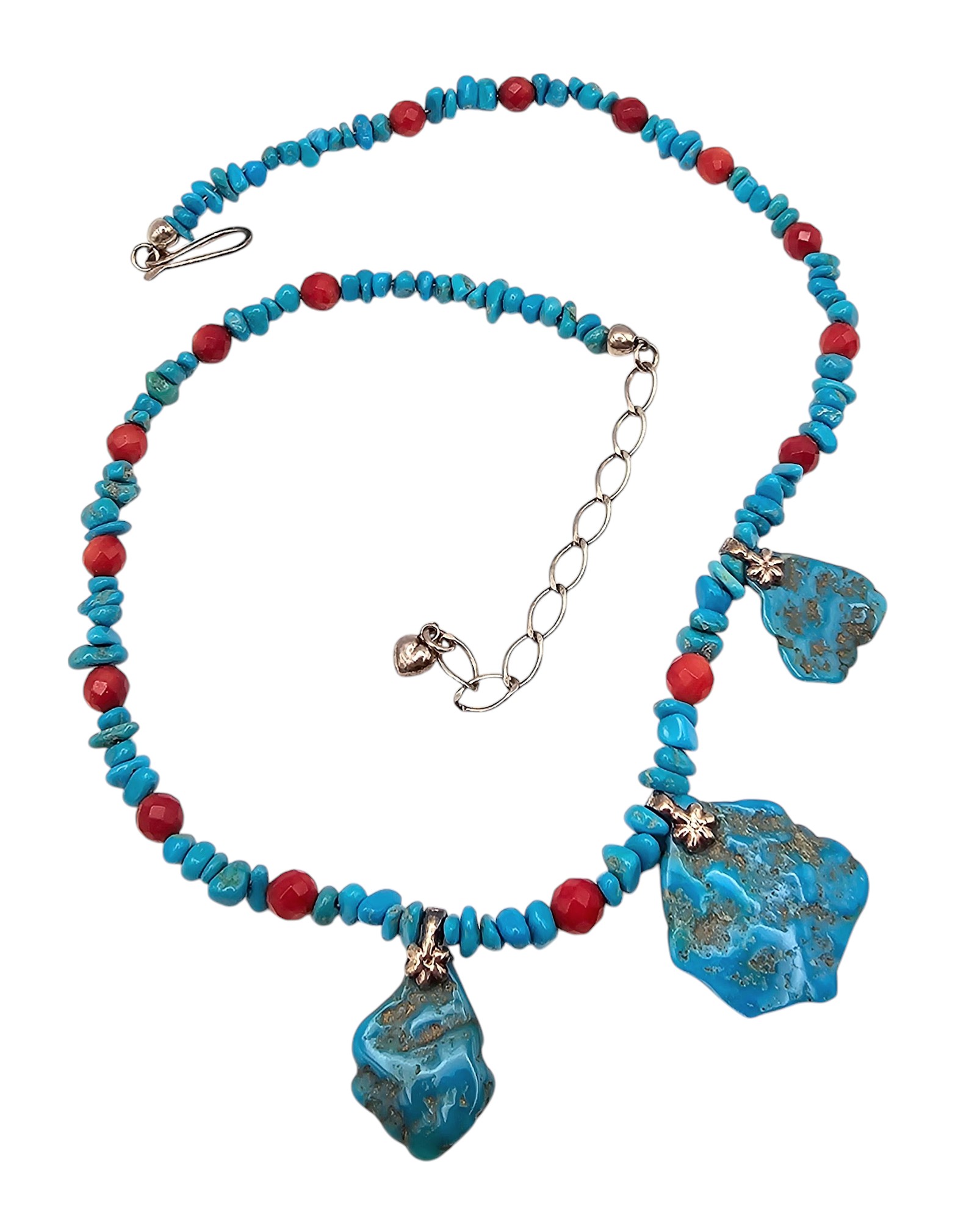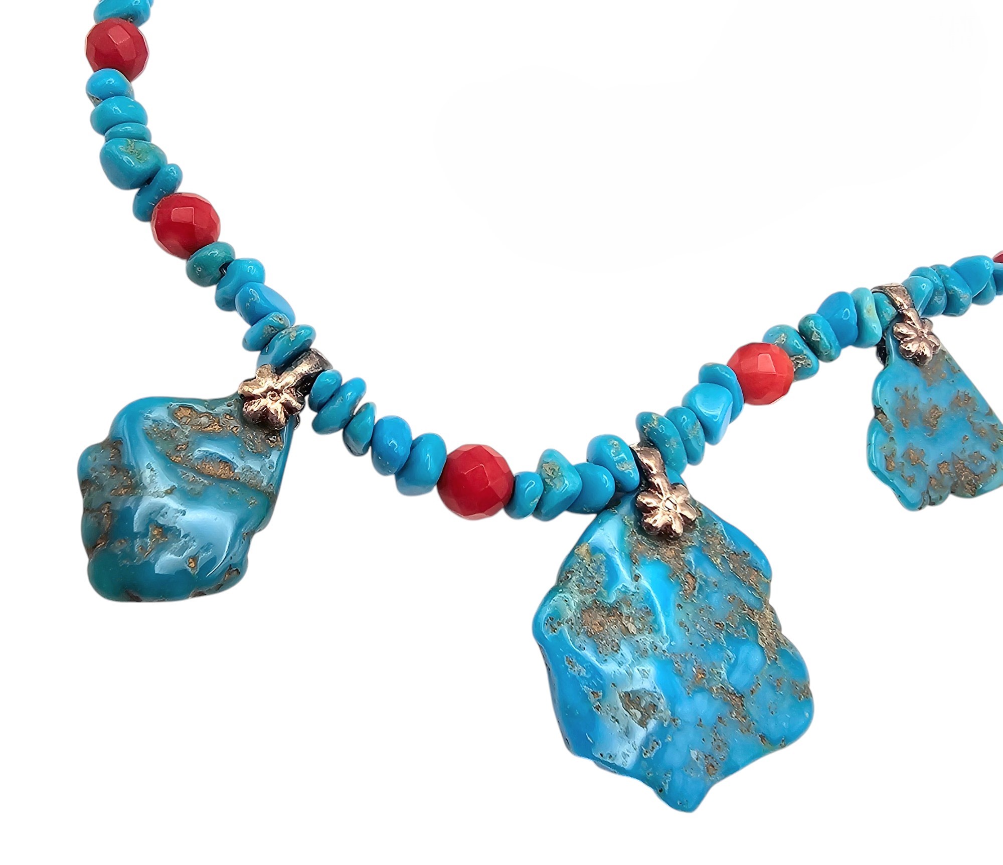 Jay King Mine Finds Turquoise Coral Sterling Silver Necklace 28 G