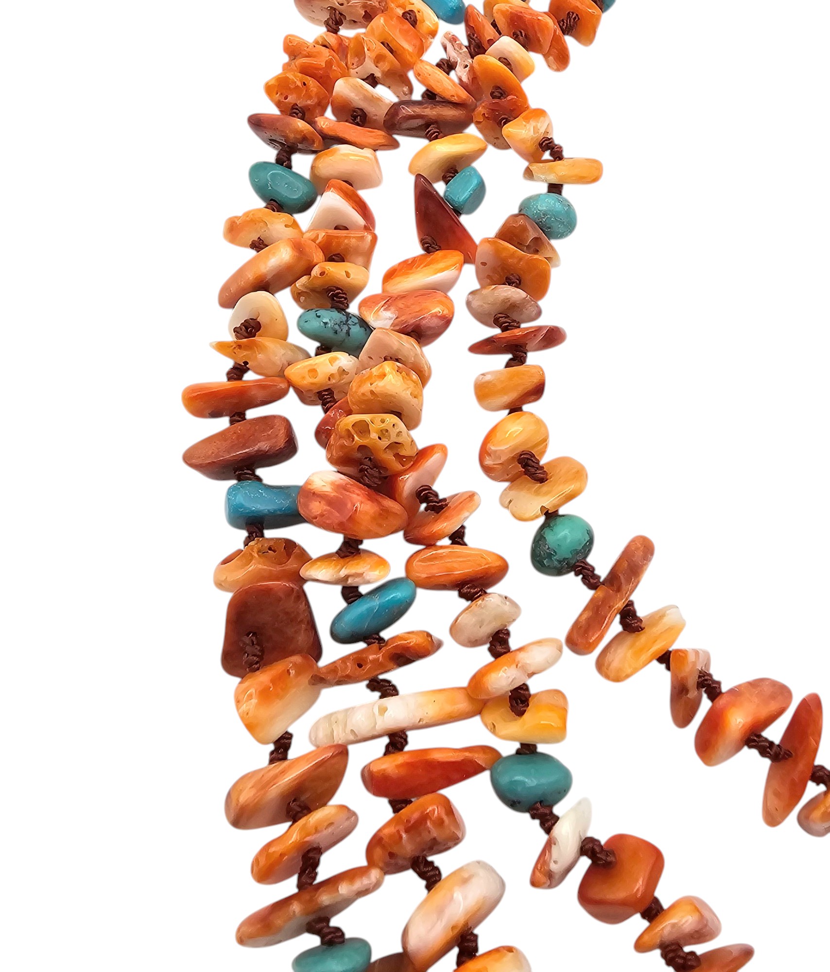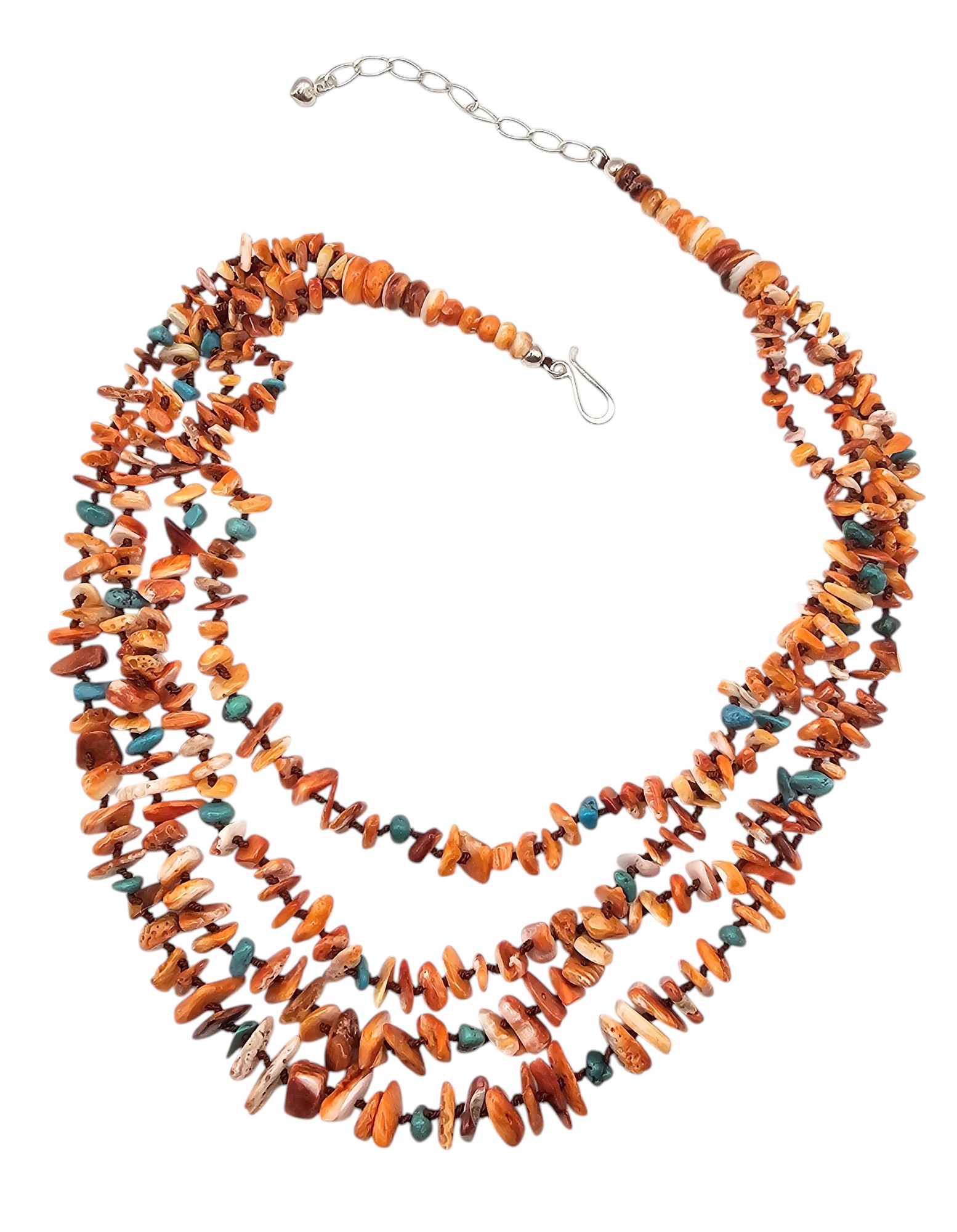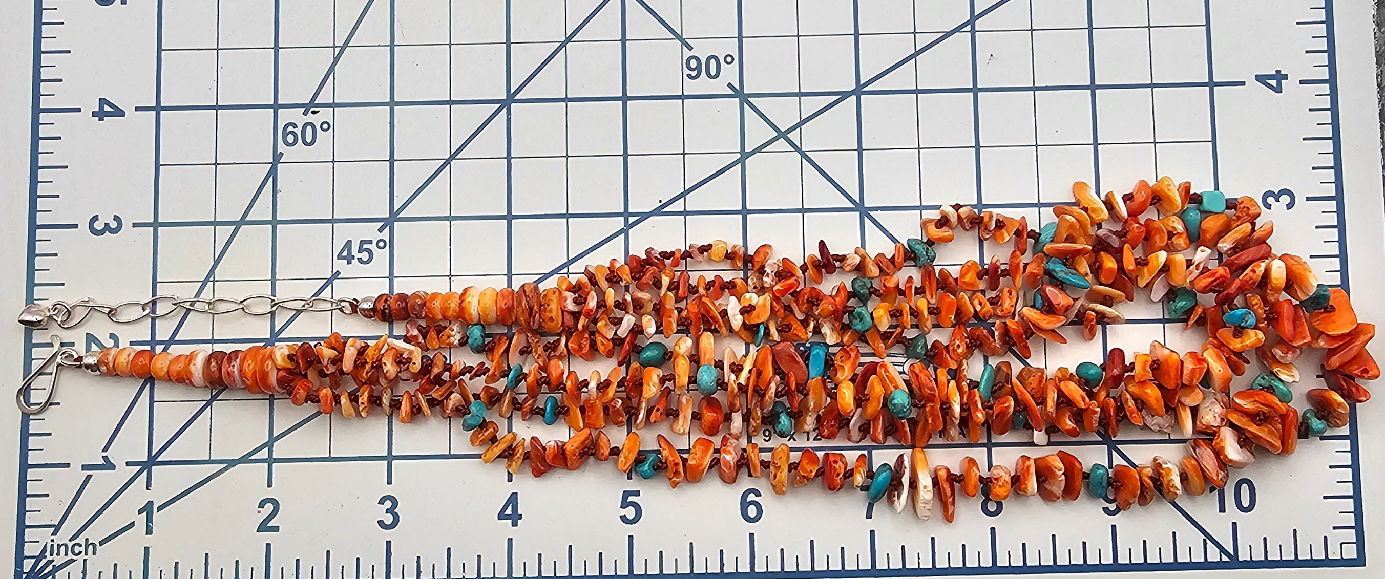 Jay King Mine Finds Spiny Oyster Coral Turquoise Sterling Silver 3 Strand Necklace 85.1 G