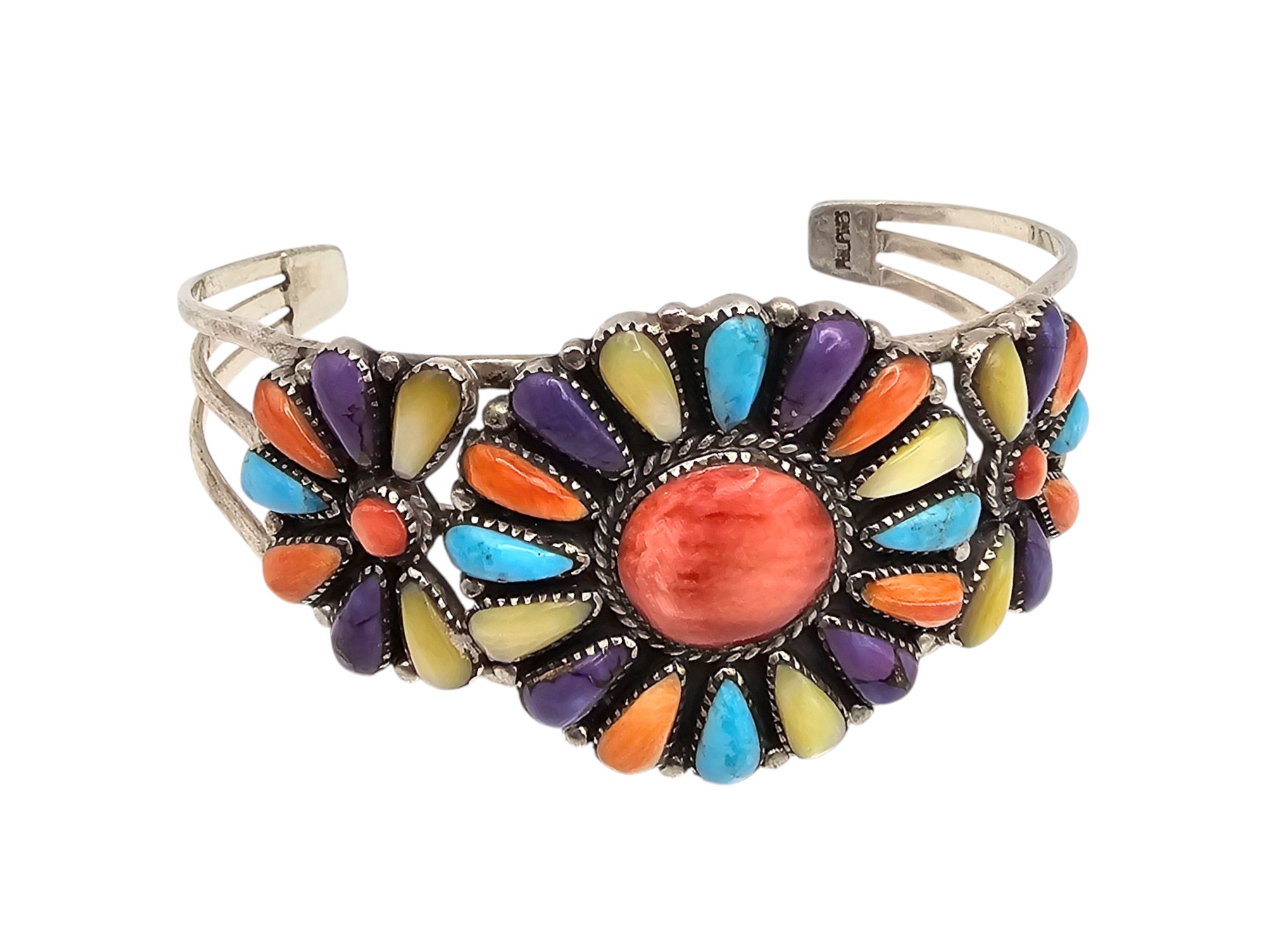 Carolyn Pollack Relios Southwestern Spiny Oyster Turquoise Mother Of Pearl Sterling Silver Floral Cuff Bracelet 26 G