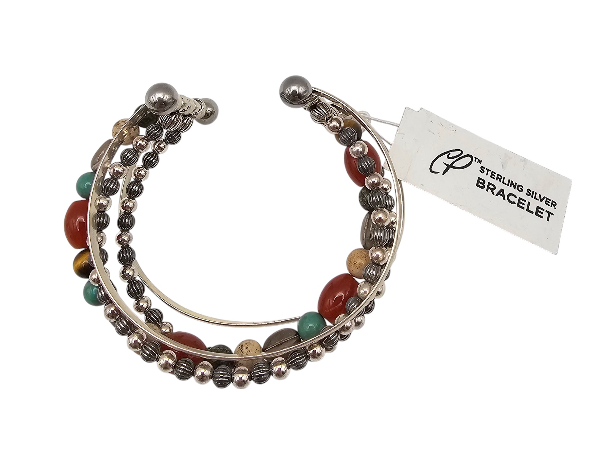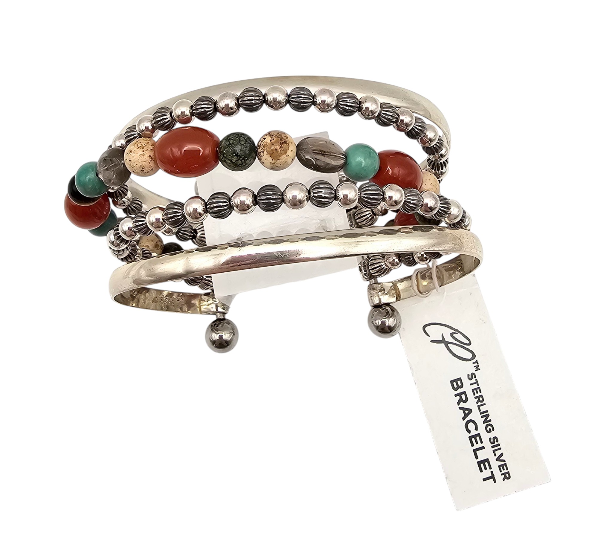 Carolyn Pollack Relios Southwestern Agate Turquoise Carnelian Amethyst Sterling Silver Stainless Steel Cuff Bracelet 41.6 G