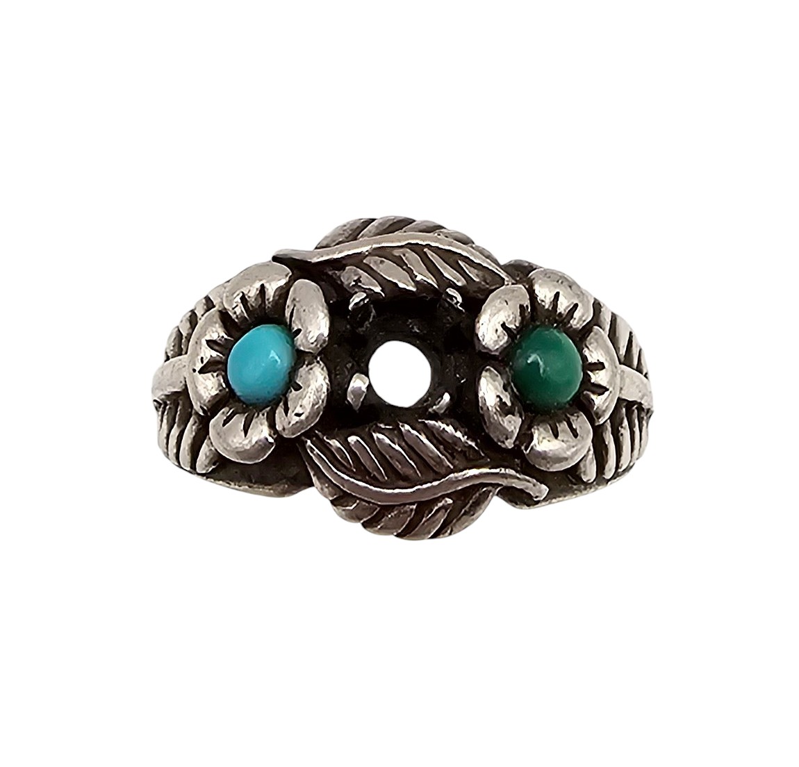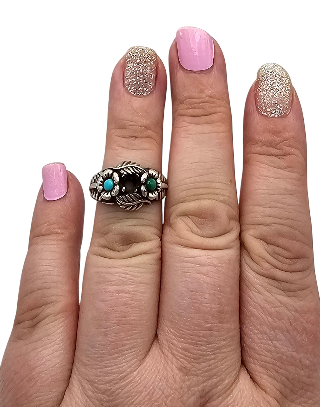 Carolyn Pollack Relios Southwestern Green Turquoise Sterling Silver Snake Eye Ring Size 7 5.5 G as is missing stone
