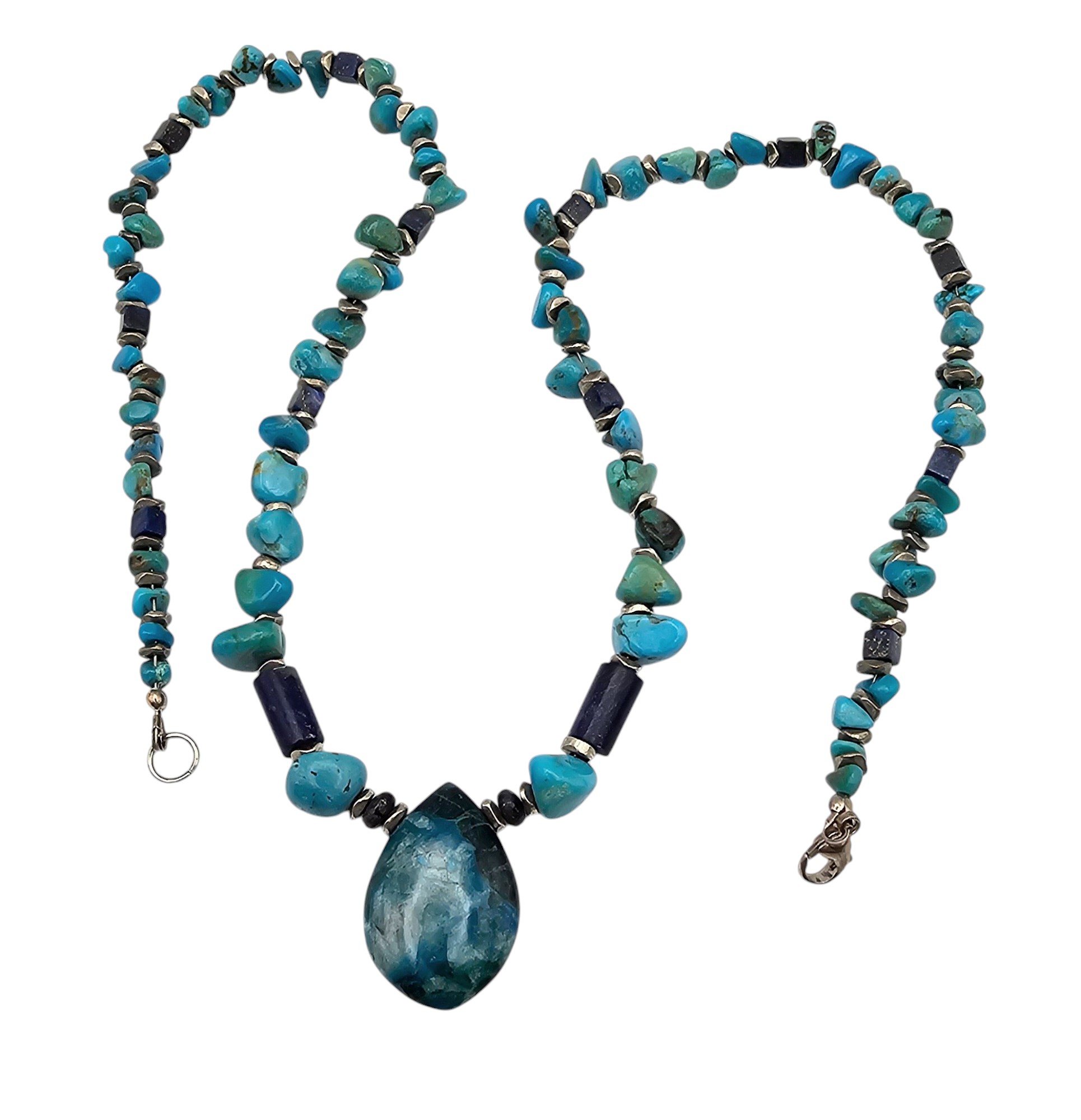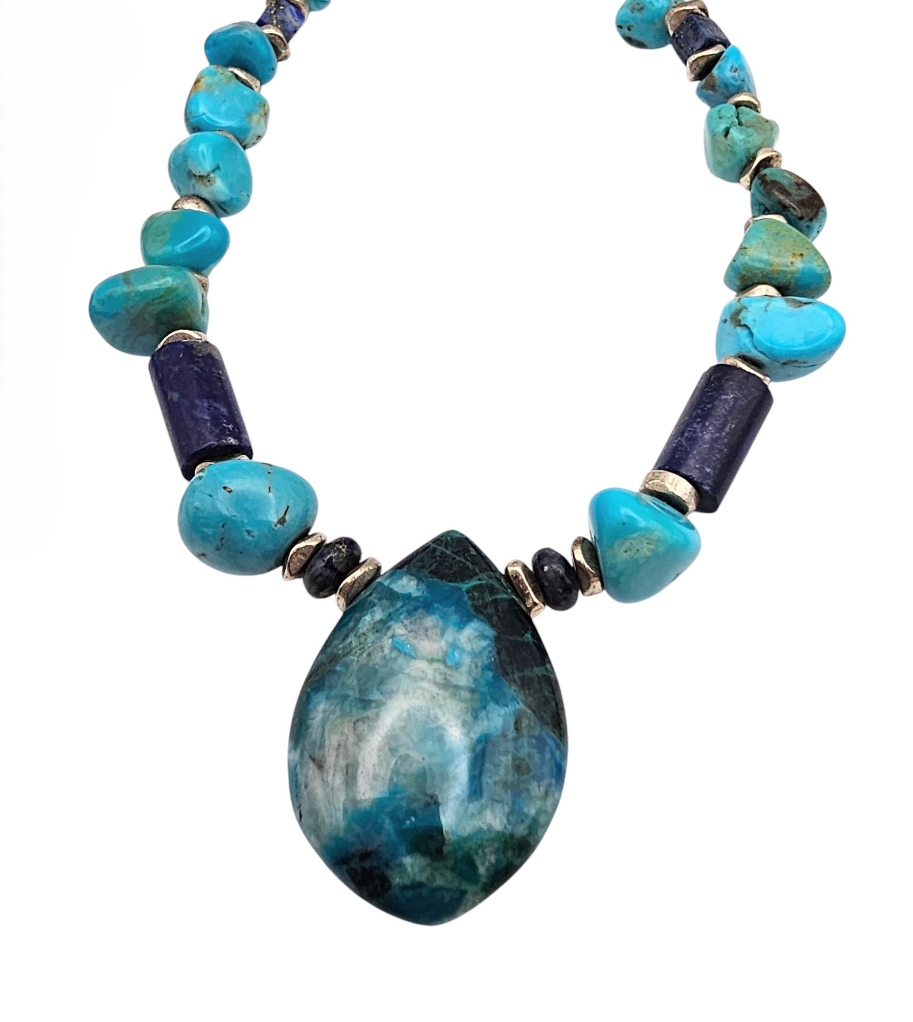 Southwestern Turquoise Lapis Sterling Silver Necklace 47.2 G