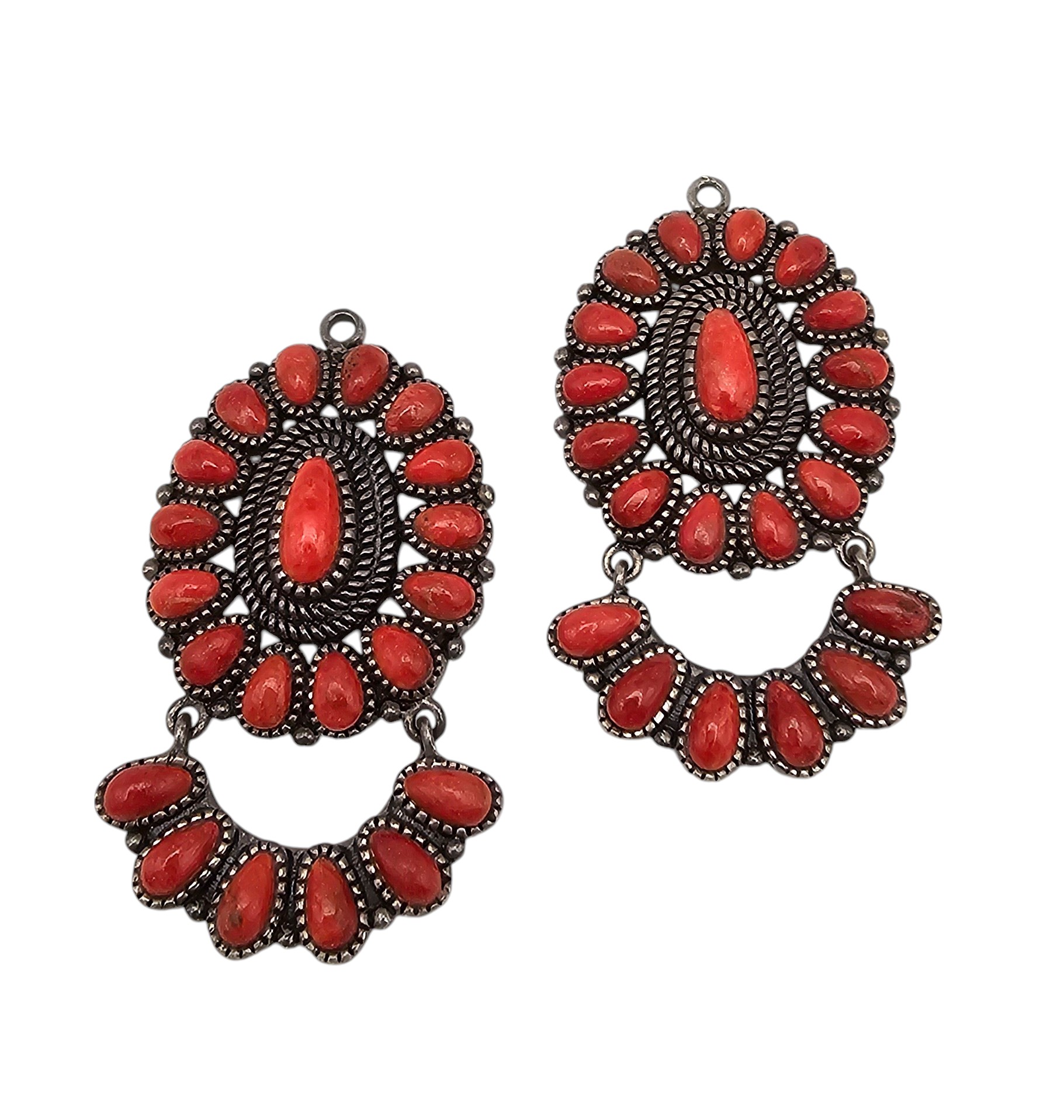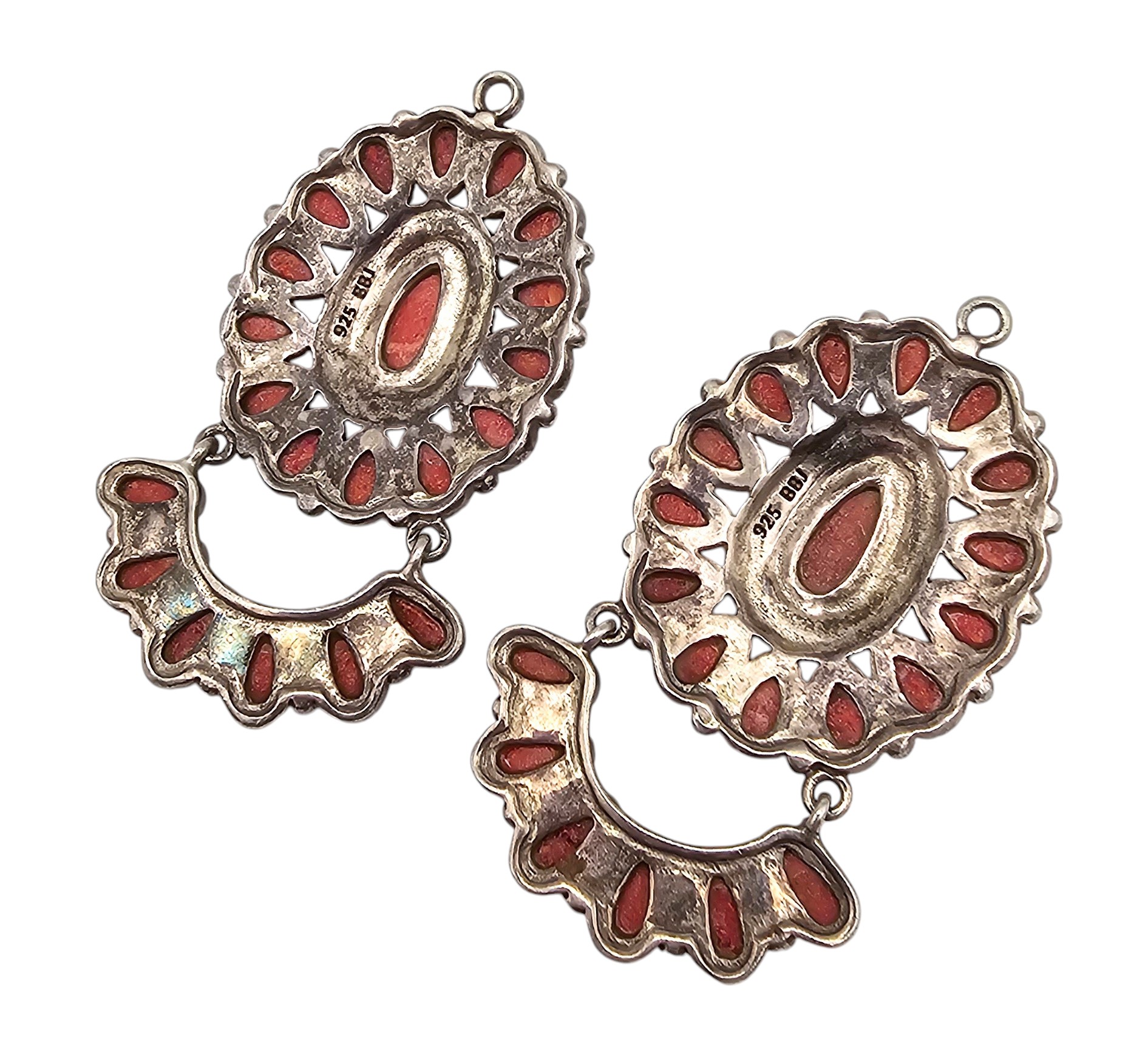 Southwestern BBJ Coral Sterling Silver Earring Pieces 22.6 G
